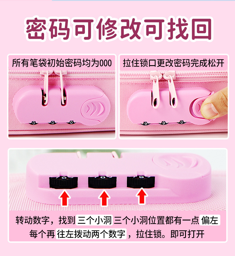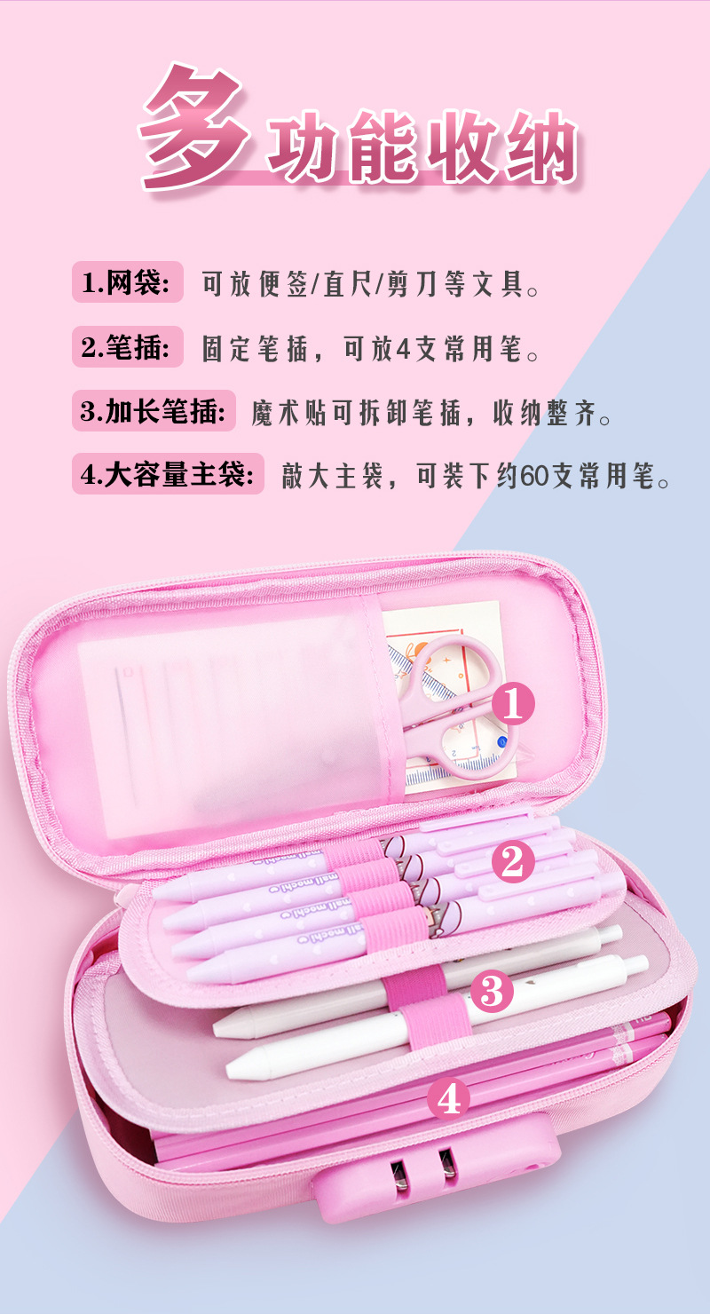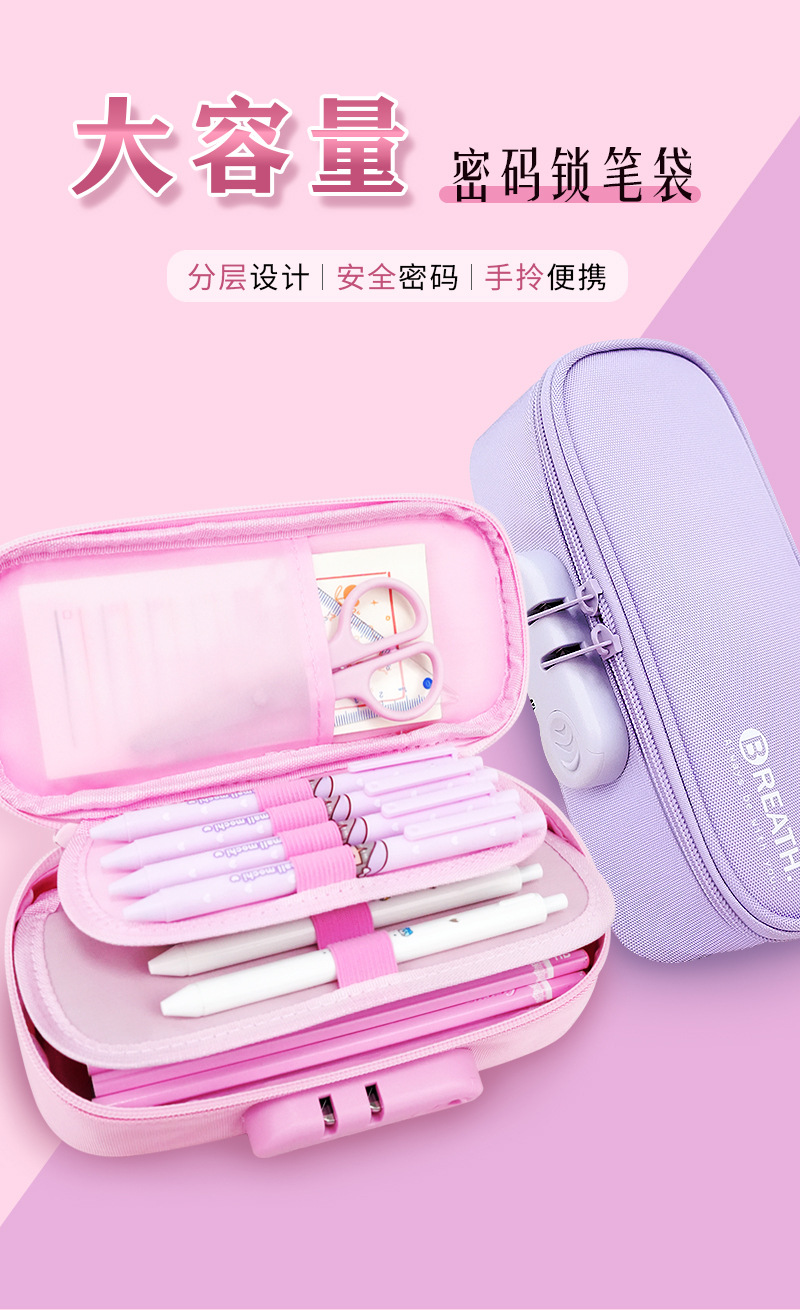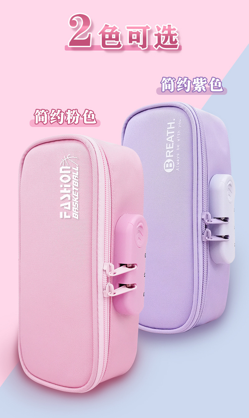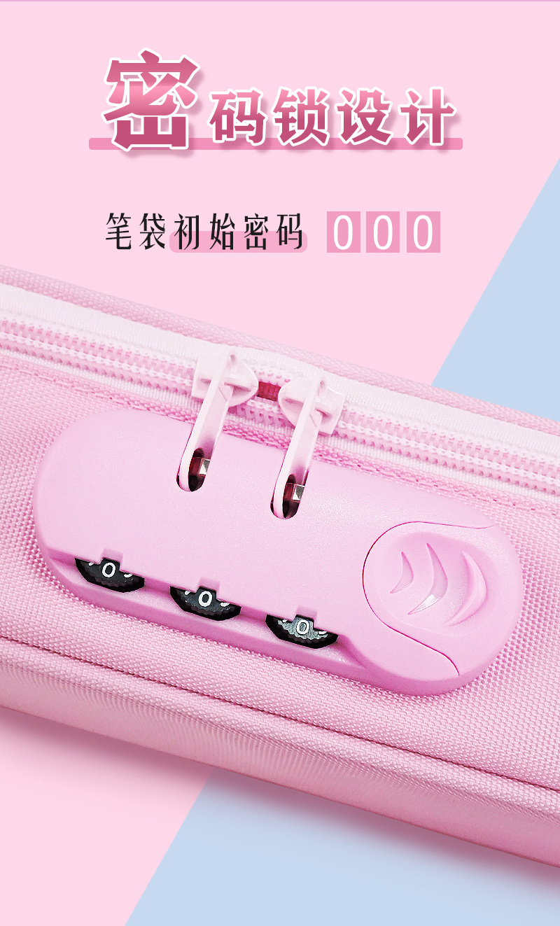 Estuche para lápices de gran capacidad, caja de papelería con bloqueo de contraseña especial transfronteriza, caja de lápices portátiles con logotipo, bolsa de papelería para niñas
