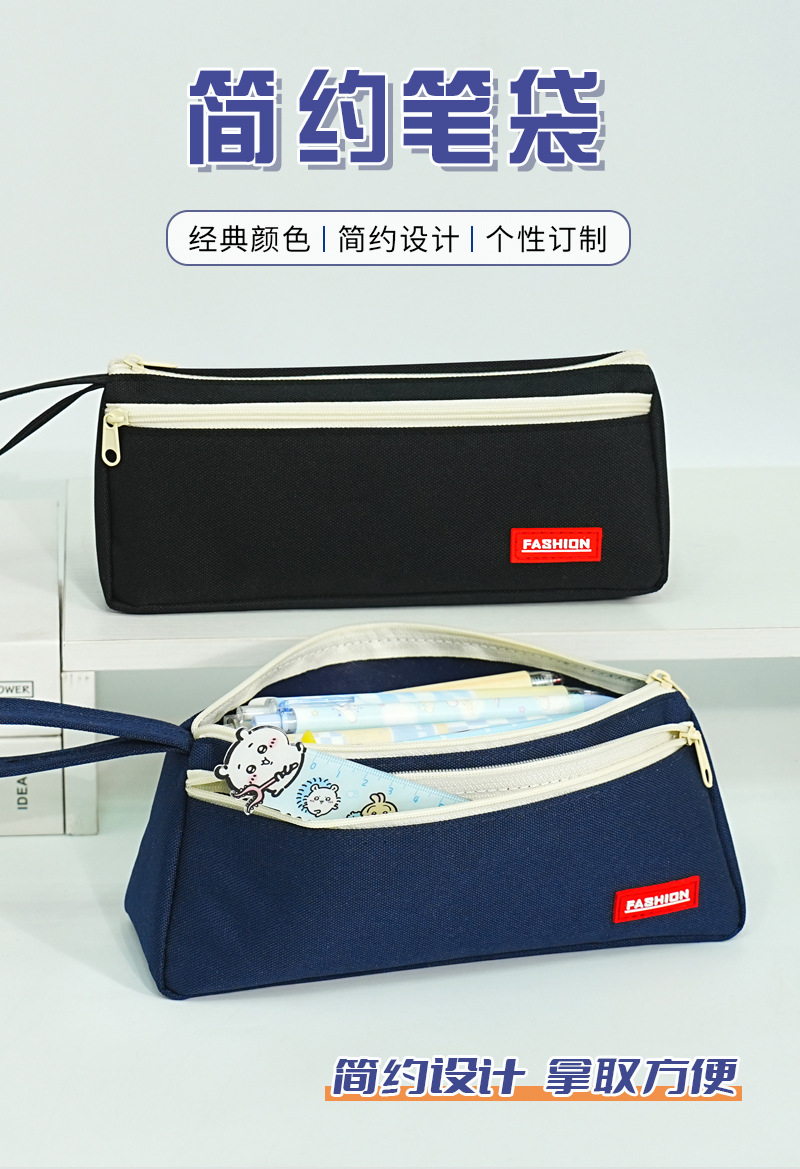 Bolsa de papelería simple de doble capa de gran capacidad puede imprimir logotipo caja de papelería de alto valor de la cara de los estudiantes primarios bolsas de lápiz transfronterizas