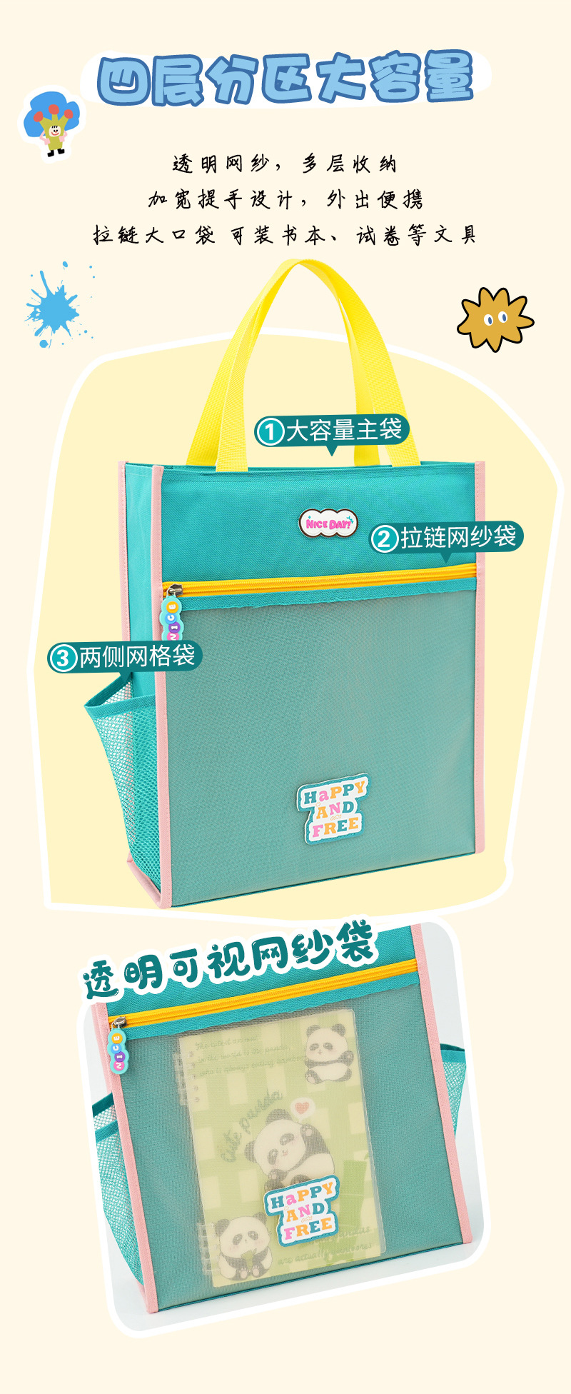 Bolso de papel de prueba de gran capacidad especial para estudiantes de alto valor