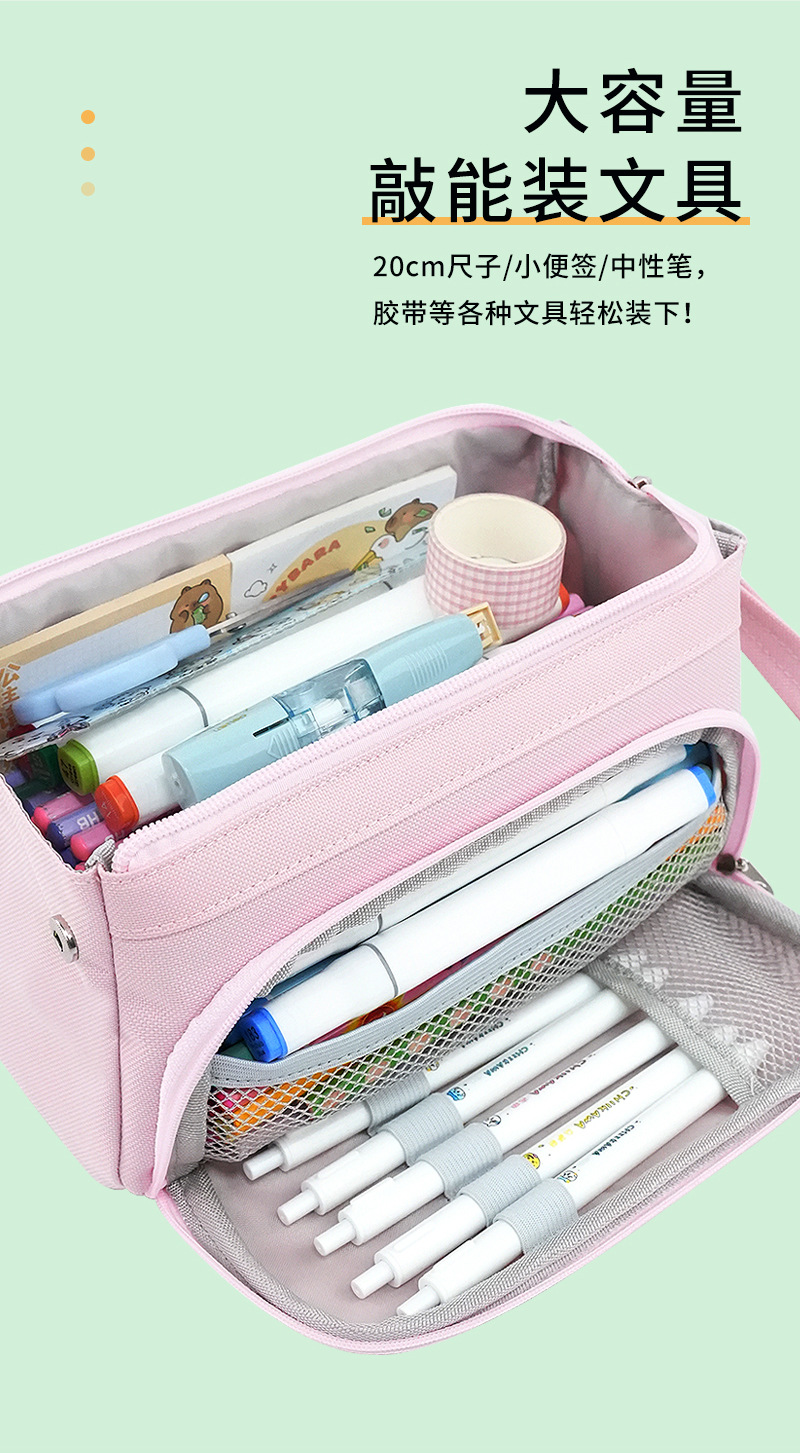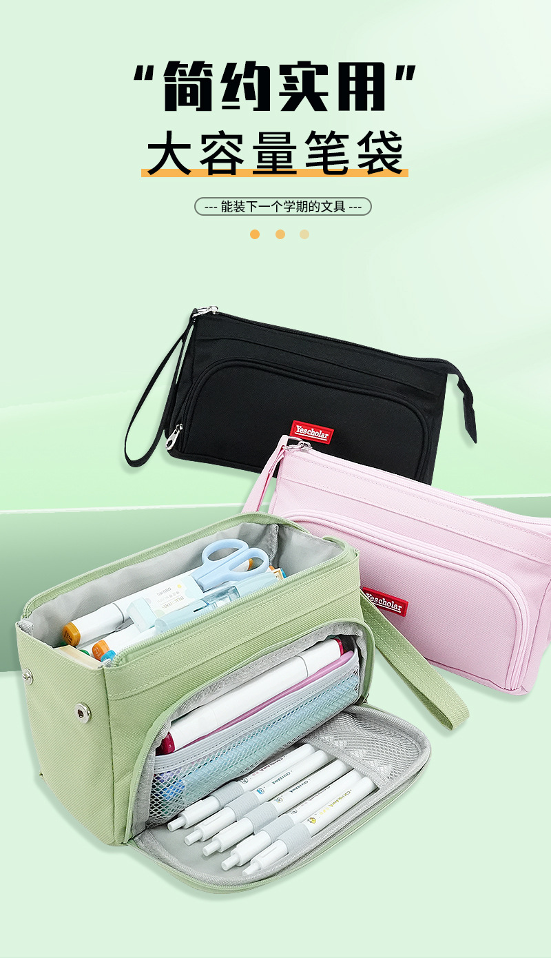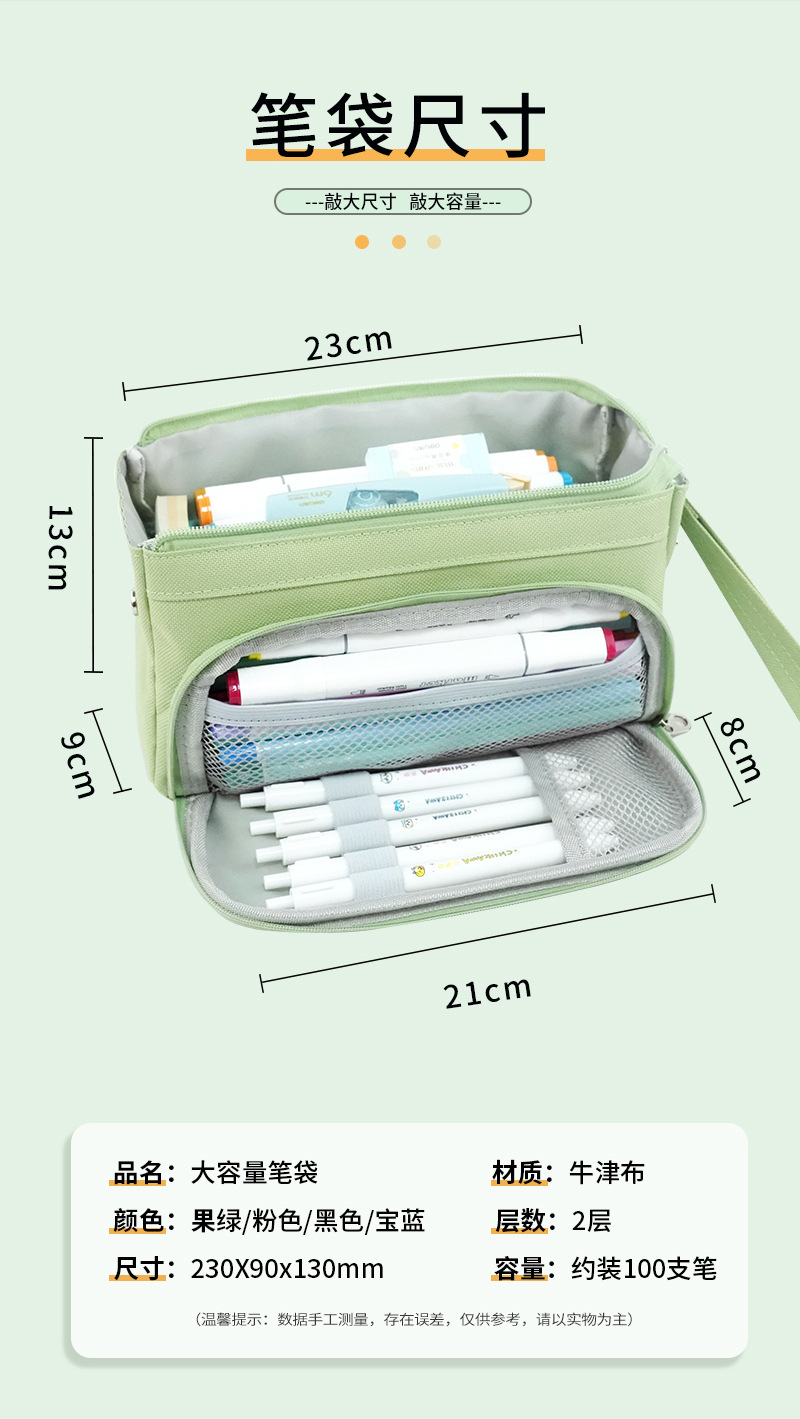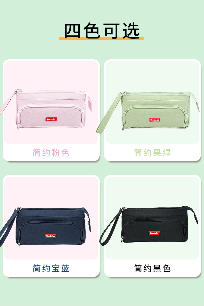 Estuche para lápices transfronterizo, caja de papelería portátil simple de gran capacidad, bolsa de papelería de color caramelo, bolsa de lápices para estudiantes resistentes a la suciedad Oxford