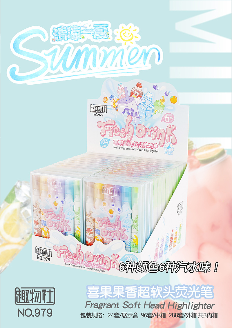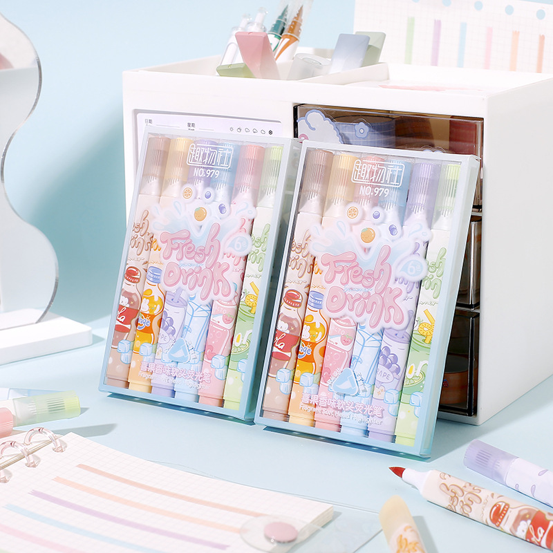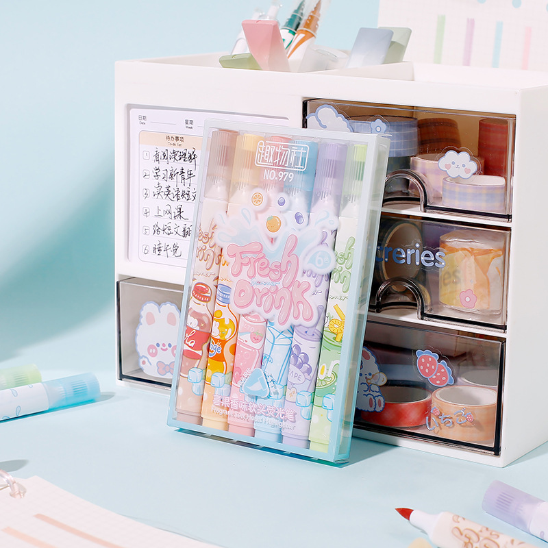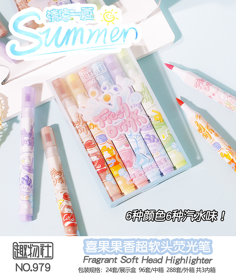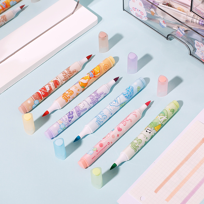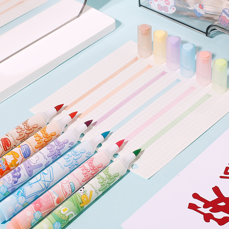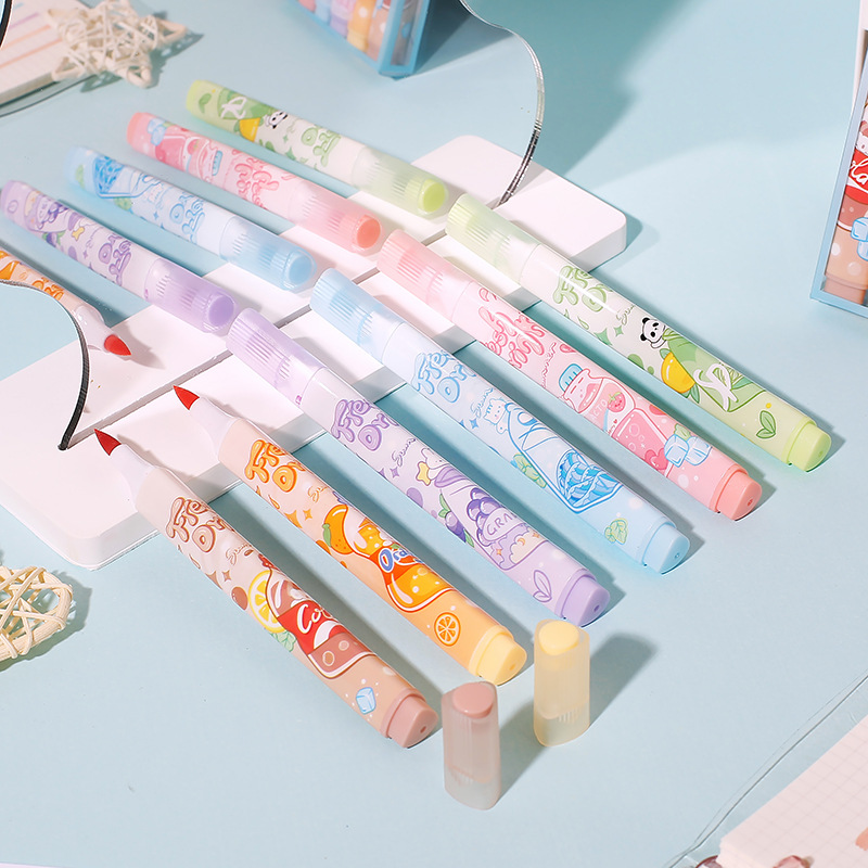 Resaltador de cabeza suave afrutado para tomar notas, sello, juego de bolígrafos de colores, bolígrafos de mano especiales para estudiantes, bolígrafos clave