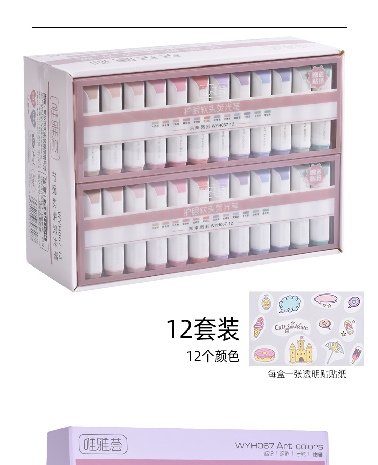 Resaltador simple de cabeza suave de protección ocular de 6 colores para estudiantes, pegatinas gratis, trazo de bricolaje, bolígrafo clave, rotulador, herramienta de pintura al por mayor