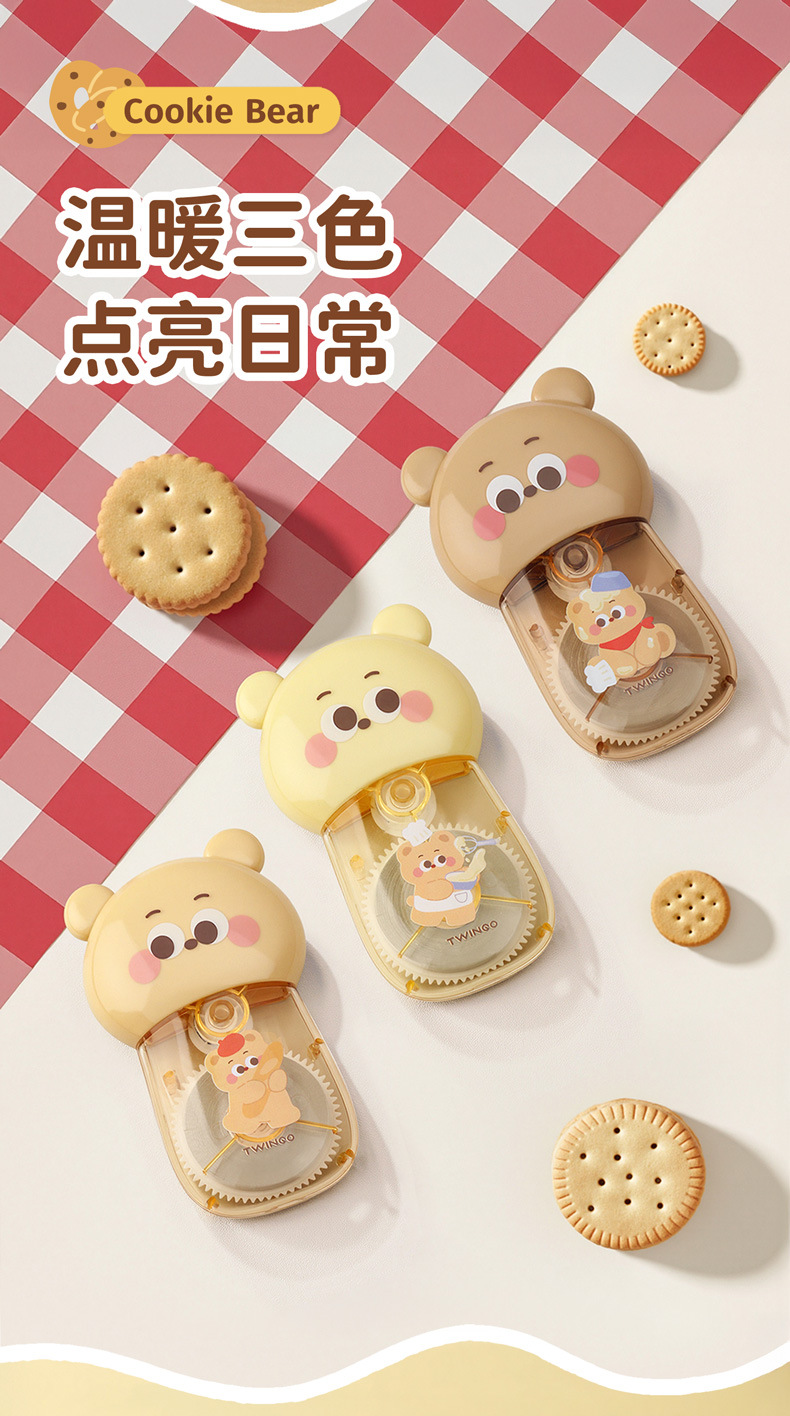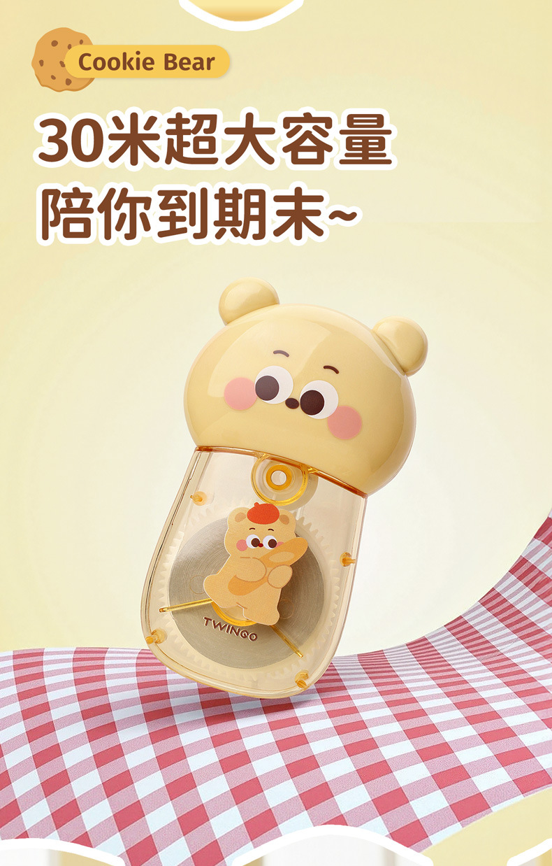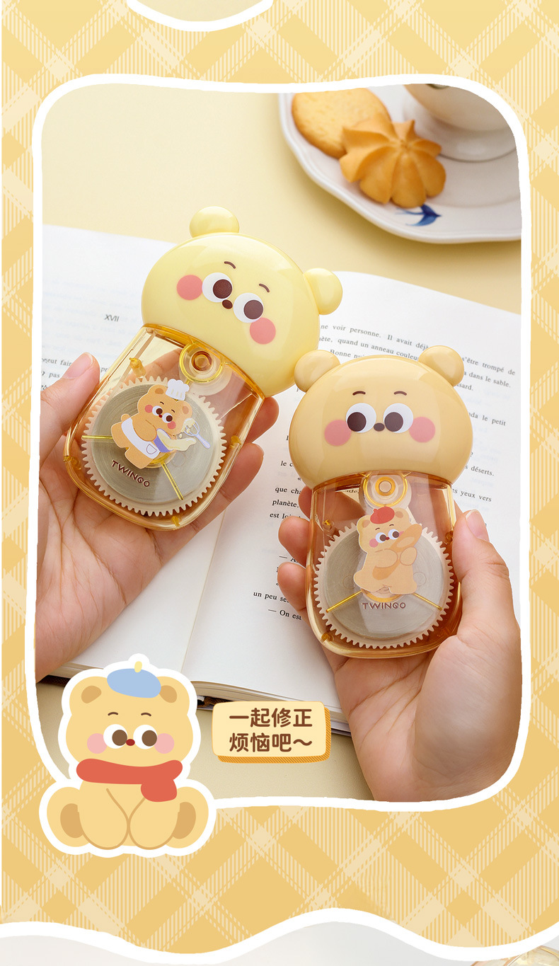 Estudiante creativo Cookie Bear 30 metros corrección de gran capacidad corrección de dibujos animados lindos corrección corrección fácil de transportar