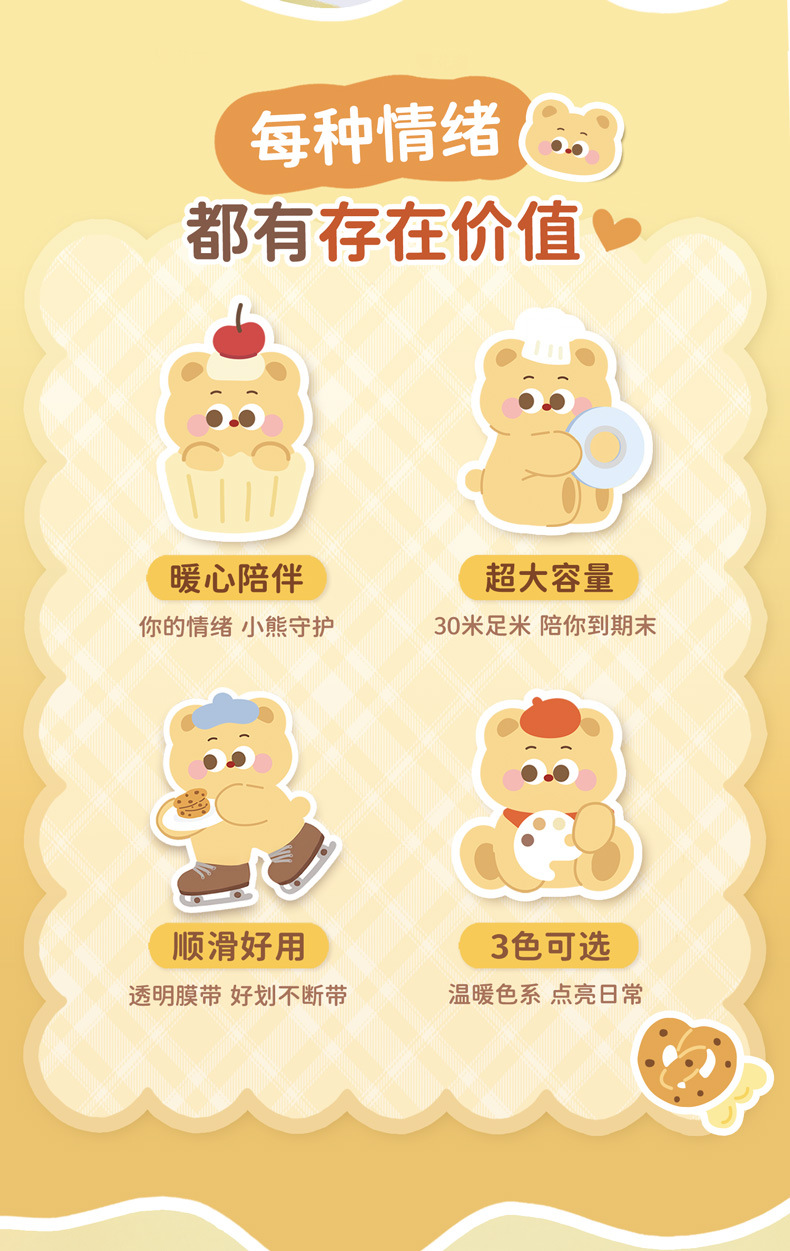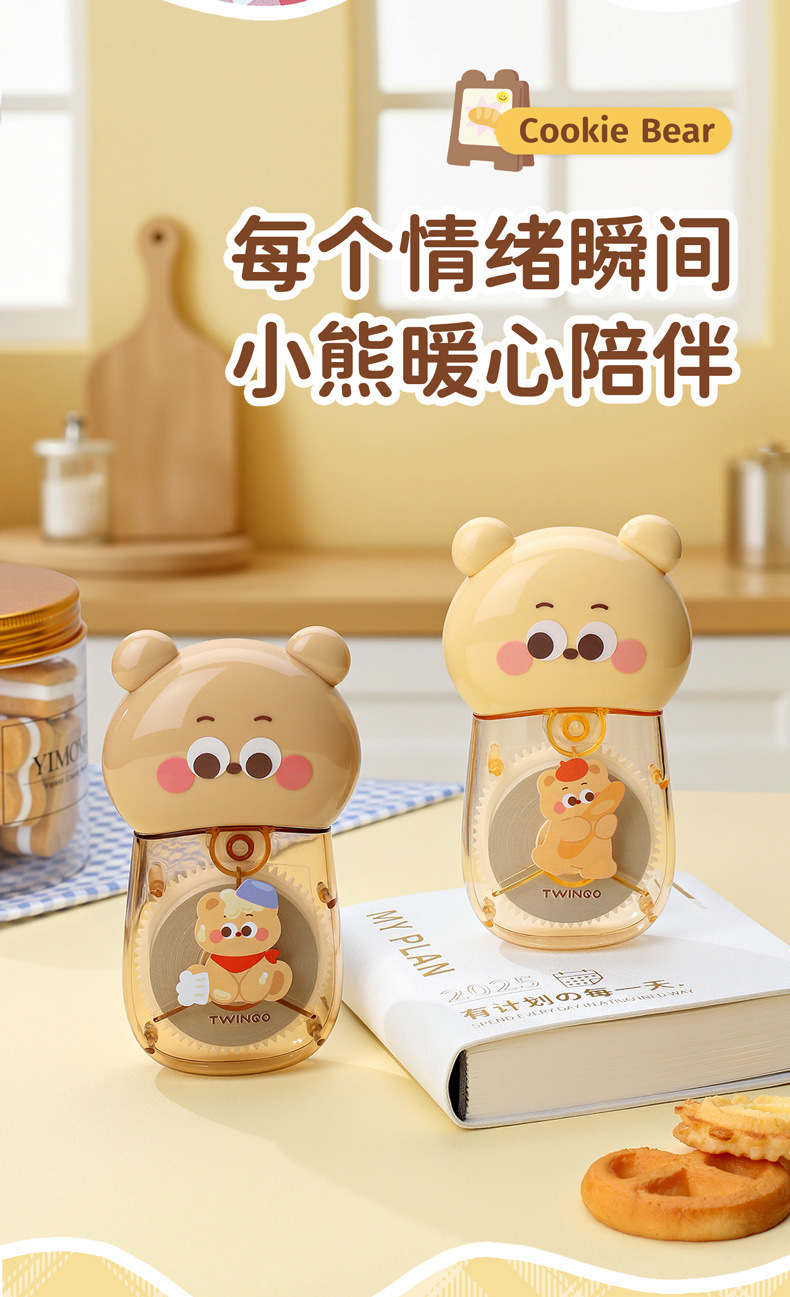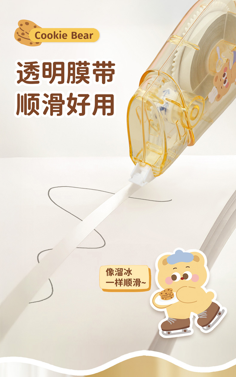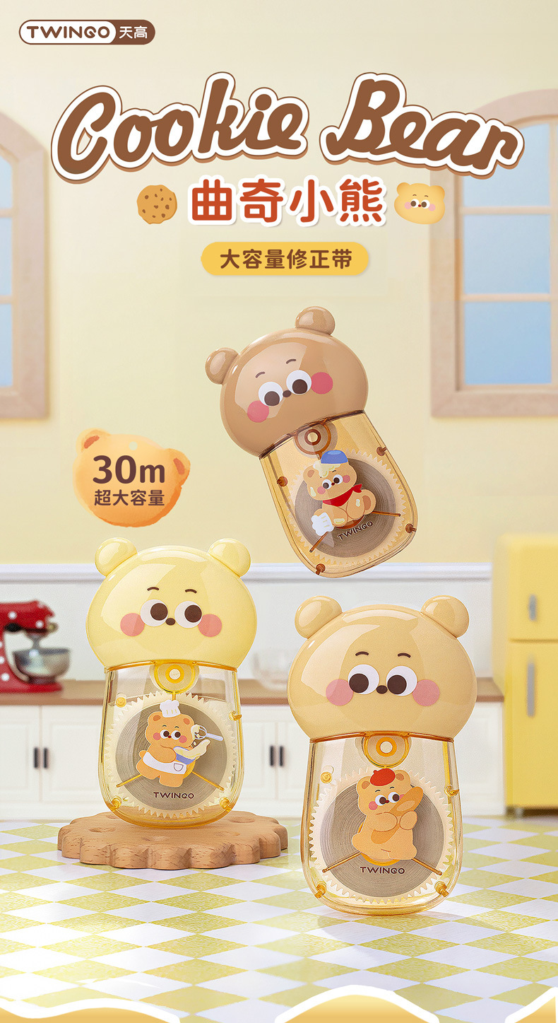 Estudiante creativo Cookie Bear 30 metros corrección de gran capacidad corrección de dibujos animados lindos corrección corrección fácil de transportar