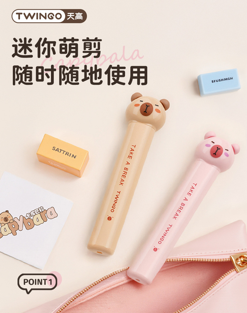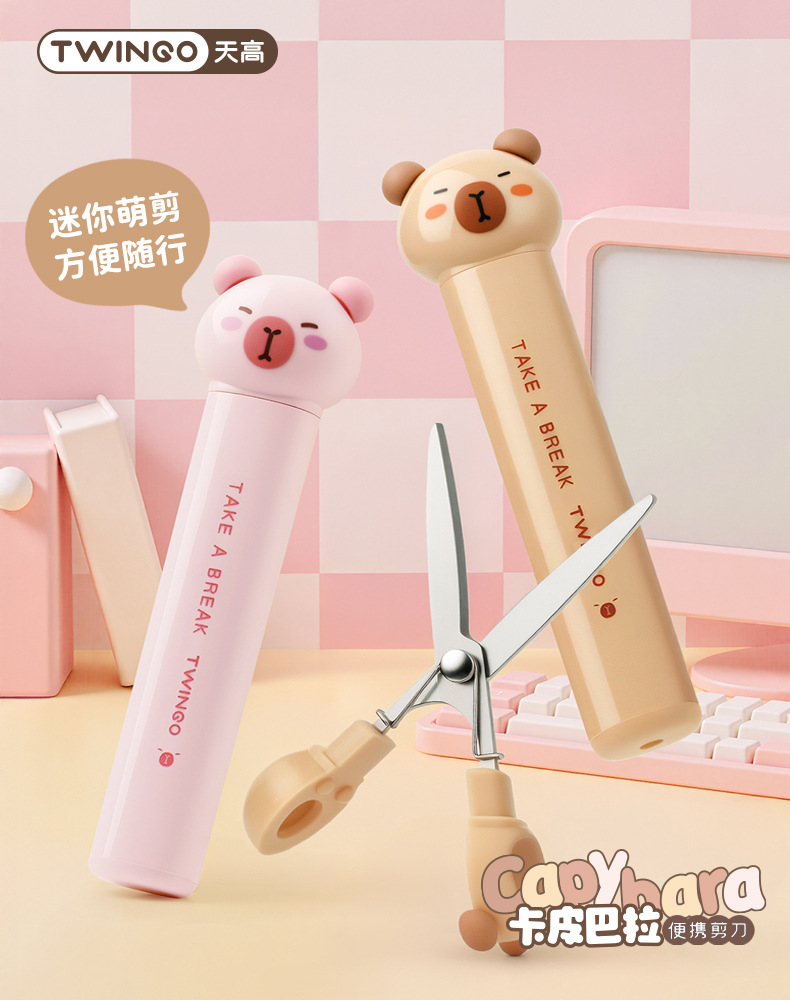 Tijeras de dibujos animados Capibara tijeras portátiles mini plegables tijeras de pluma de alto valor infantil