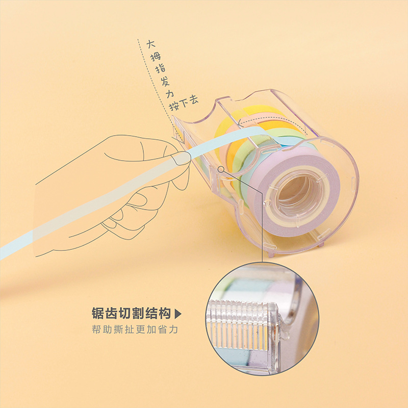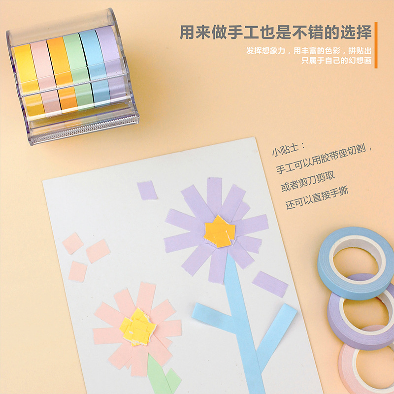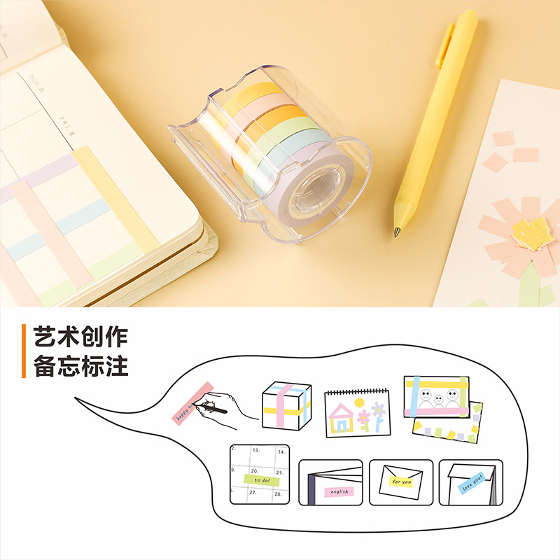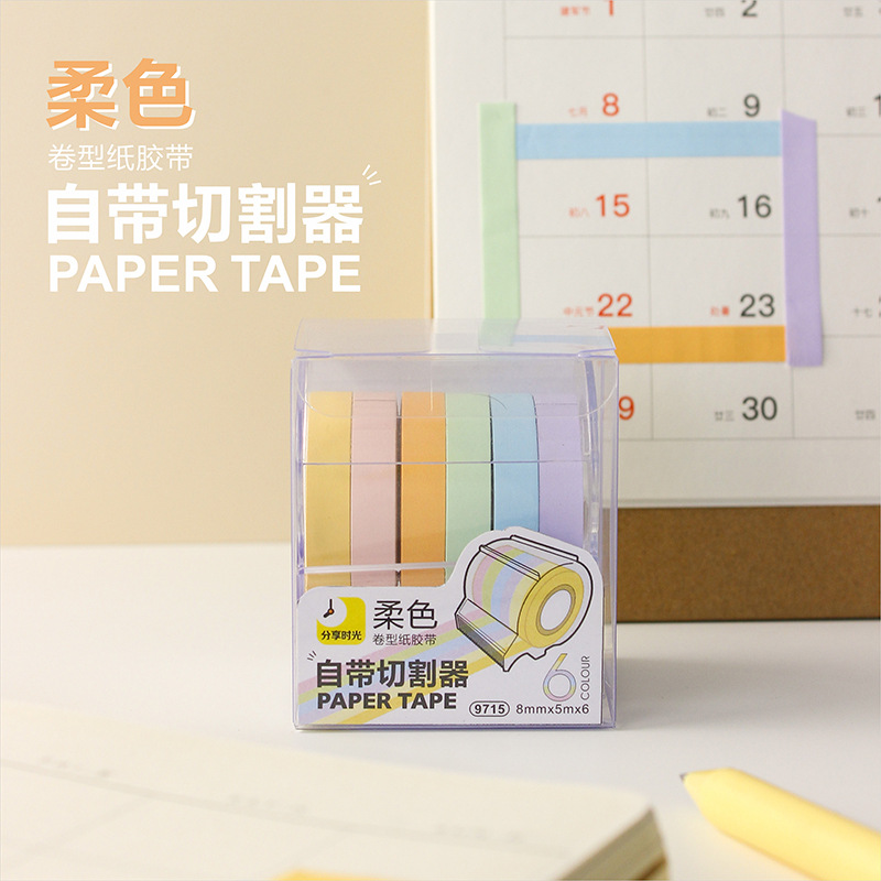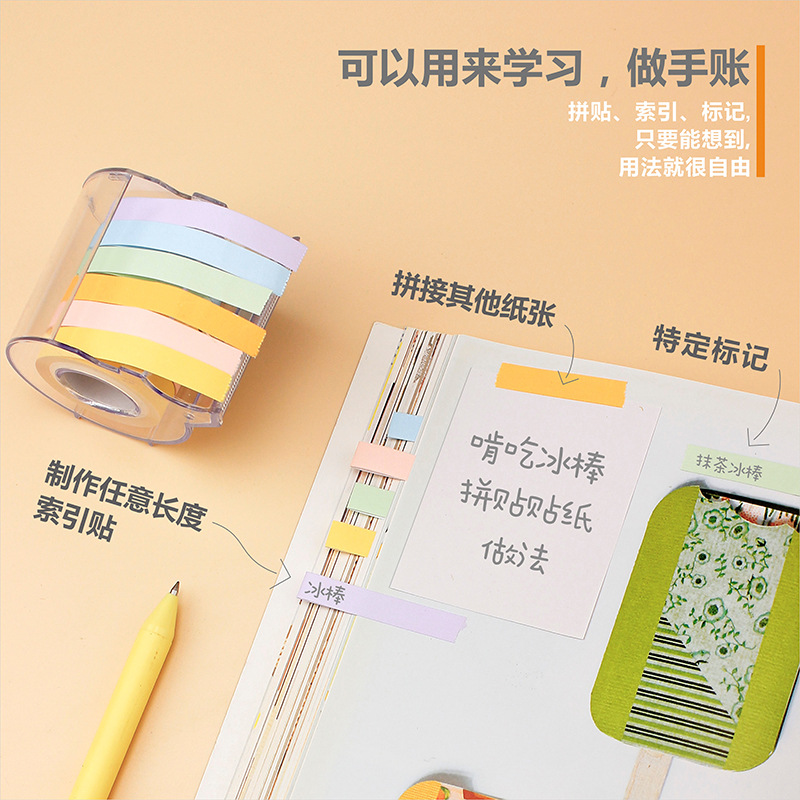 Cinta adhesiva de índice de color suave creativo, cinta tridimensional de papel de hojas sueltas de color, tipo de rollo de papel, viene con un cortador