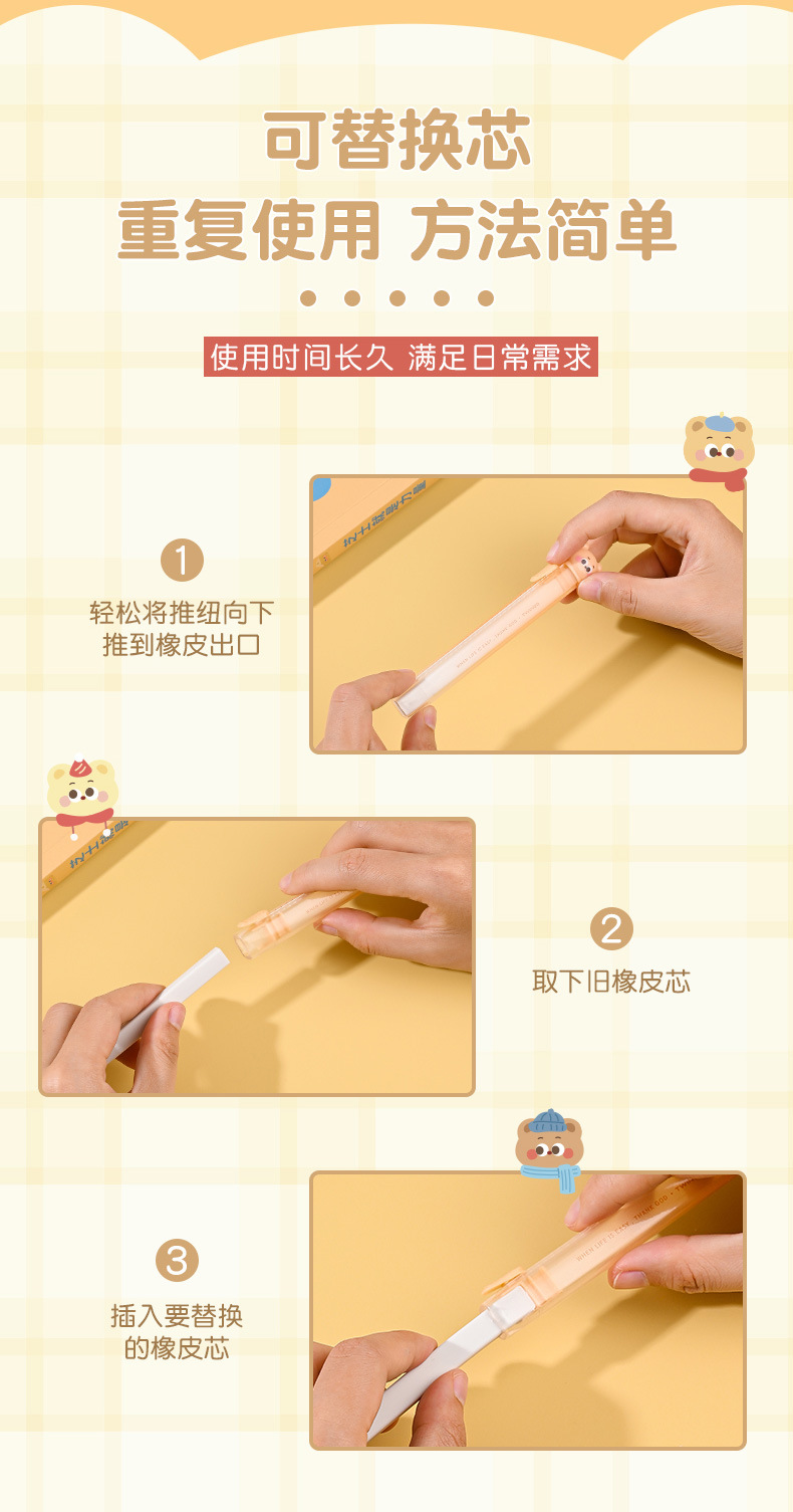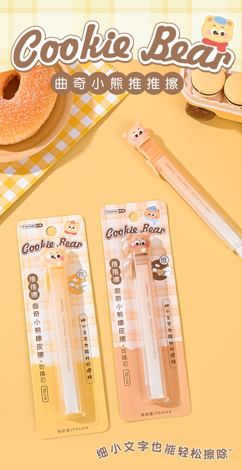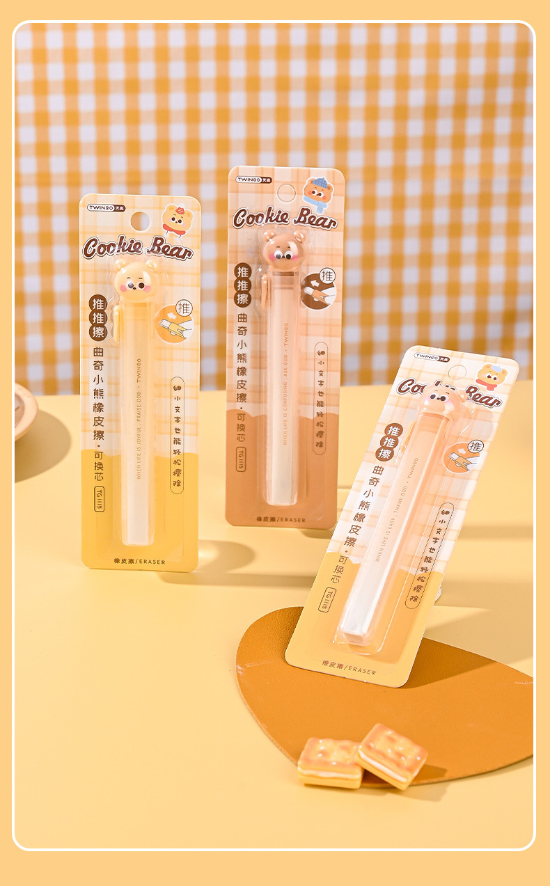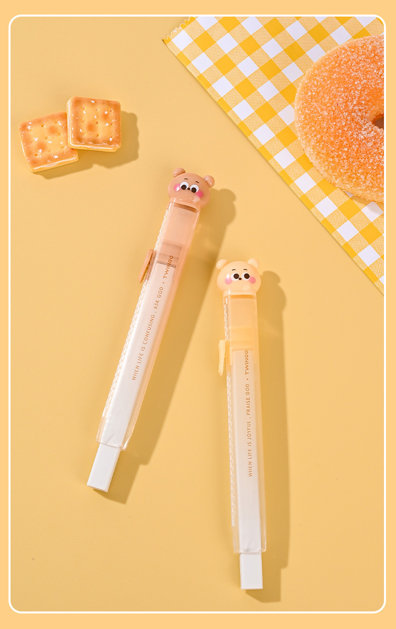 Cartoon Cookie Bear Eraser Pull Eraser Limpie limpio con poco residuos de núcleo intercambiable para materiales de estudio Eraser