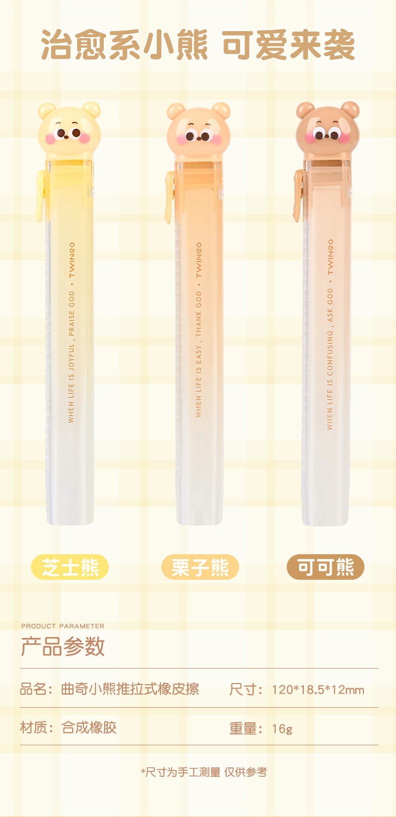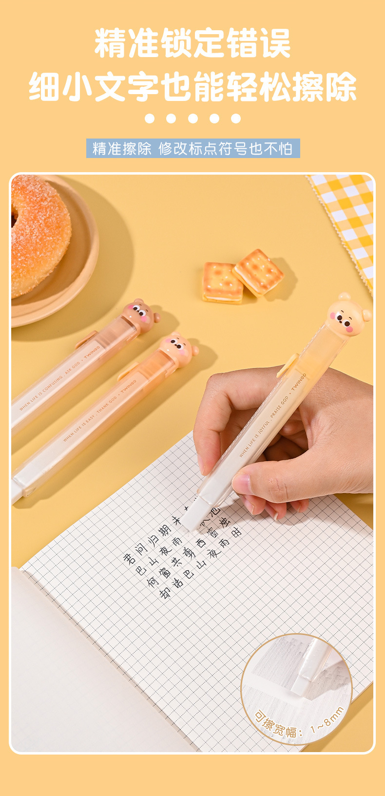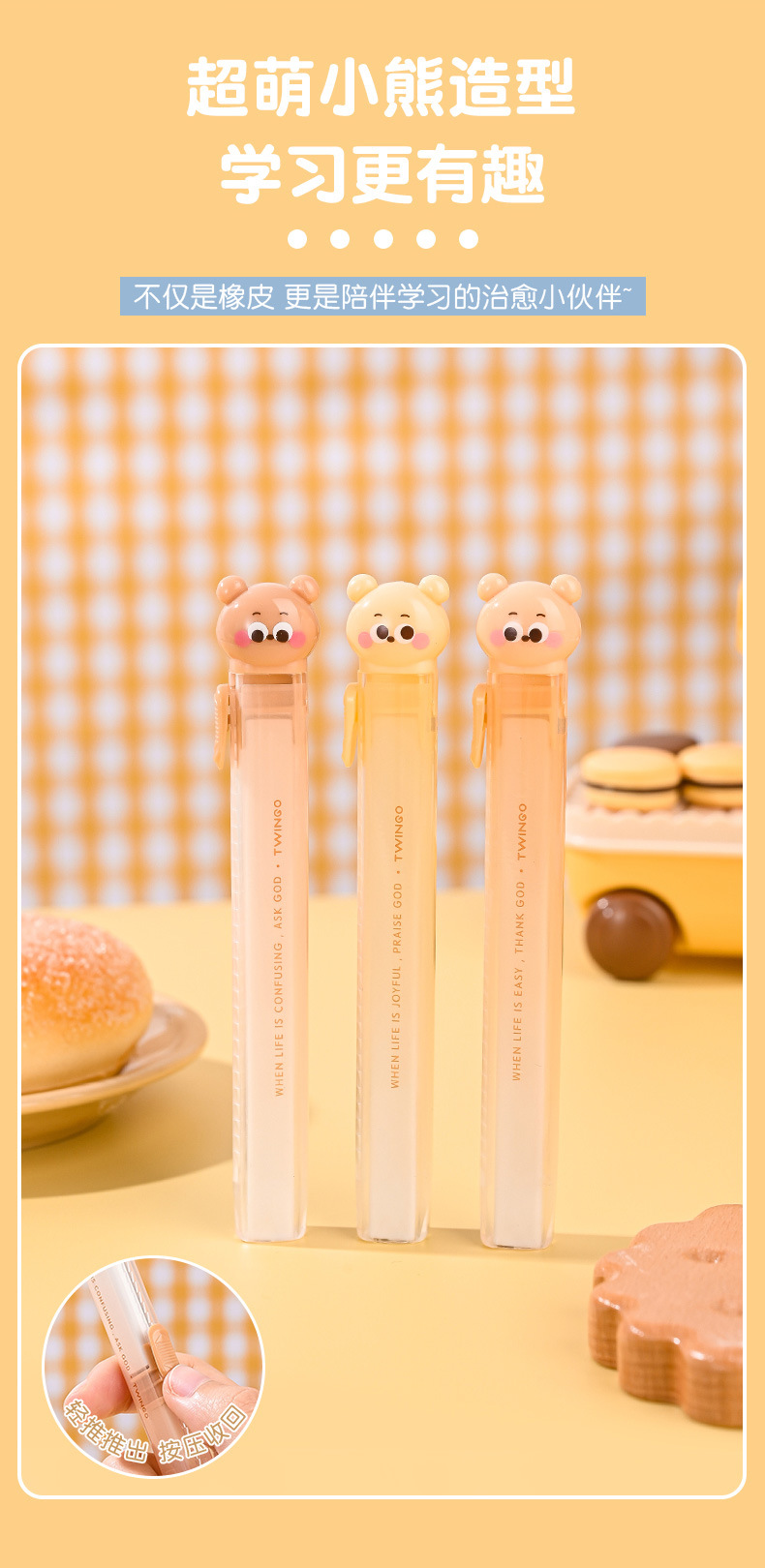 Cartoon Cookie Bear Eraser Pull Eraser Limpie limpio con poco residuos de núcleo intercambiable para materiales de estudio Eraser