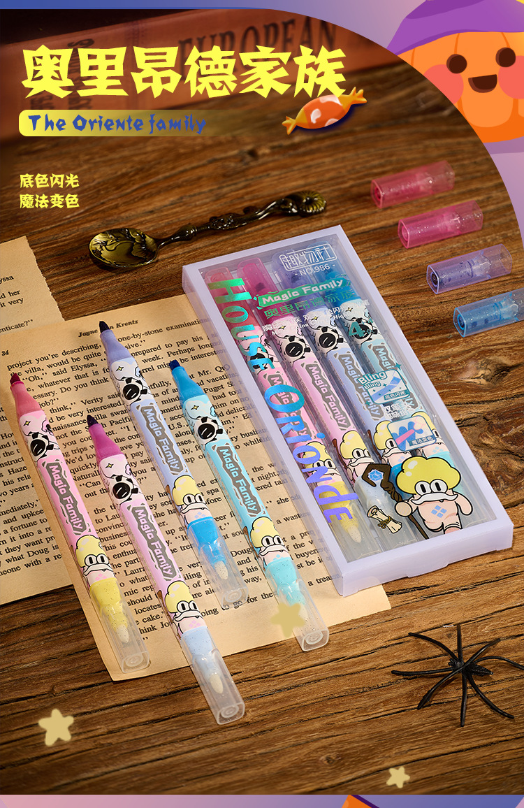 Resaltador de doble cabeza que cambia de color para estudiantes de primaria, marcador de dibujos animados para niños, resaltador nuevo, bolígrafo multicolor