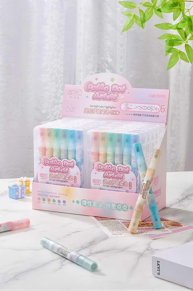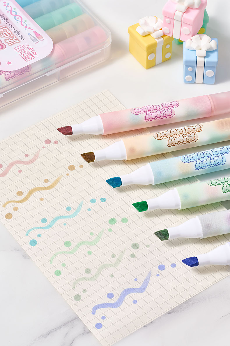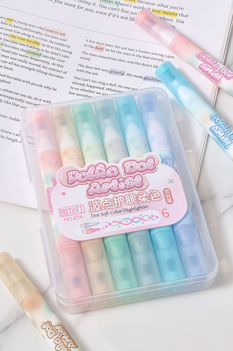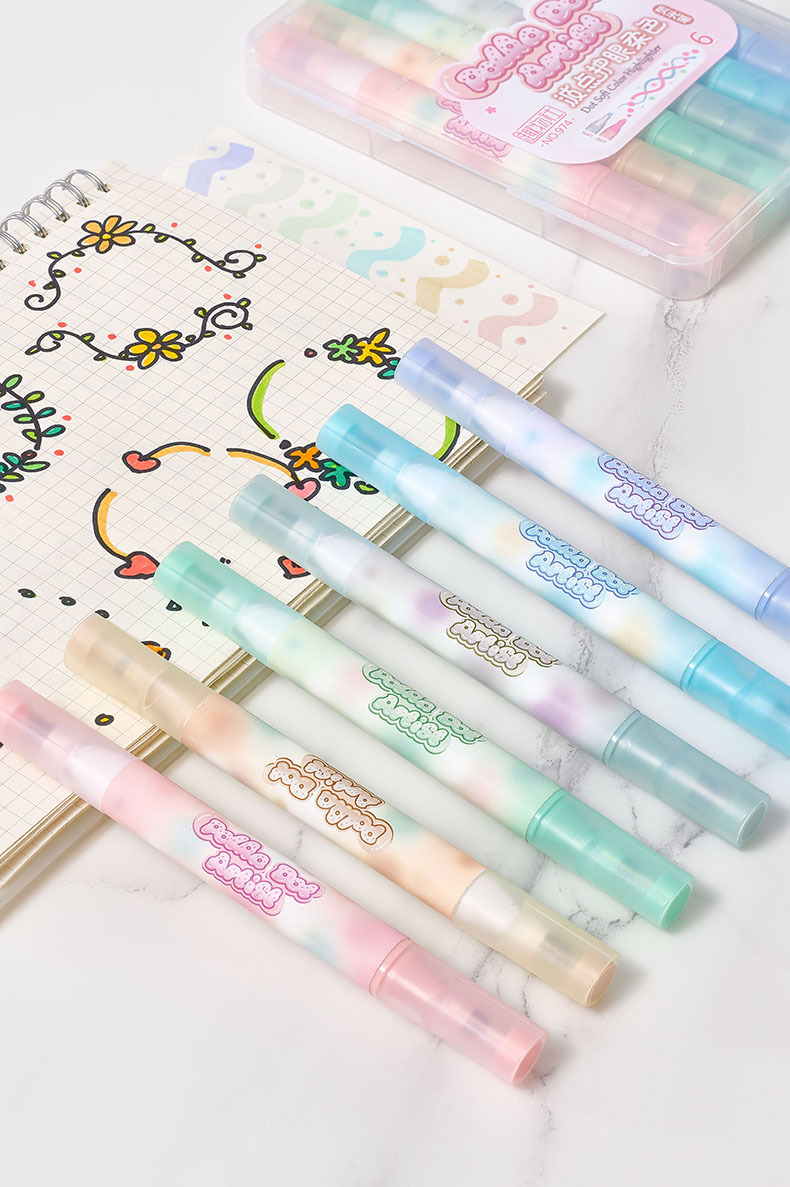 Protector de ojos de lunares, resaltador de doble cabeza de color suave, barra triangular, marcador de mano especial para oficina de estudiantes, pincel de gran capacidad