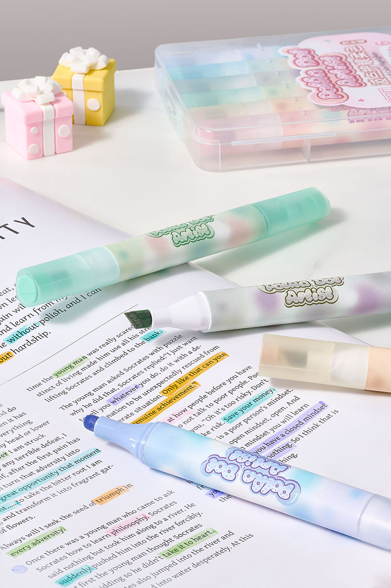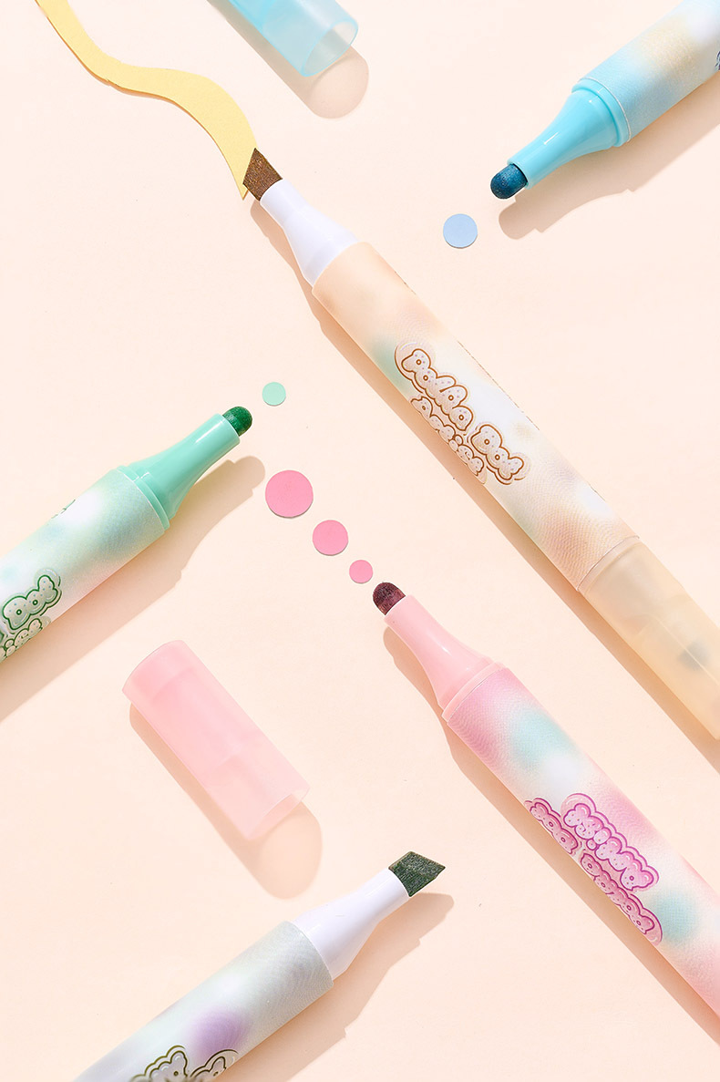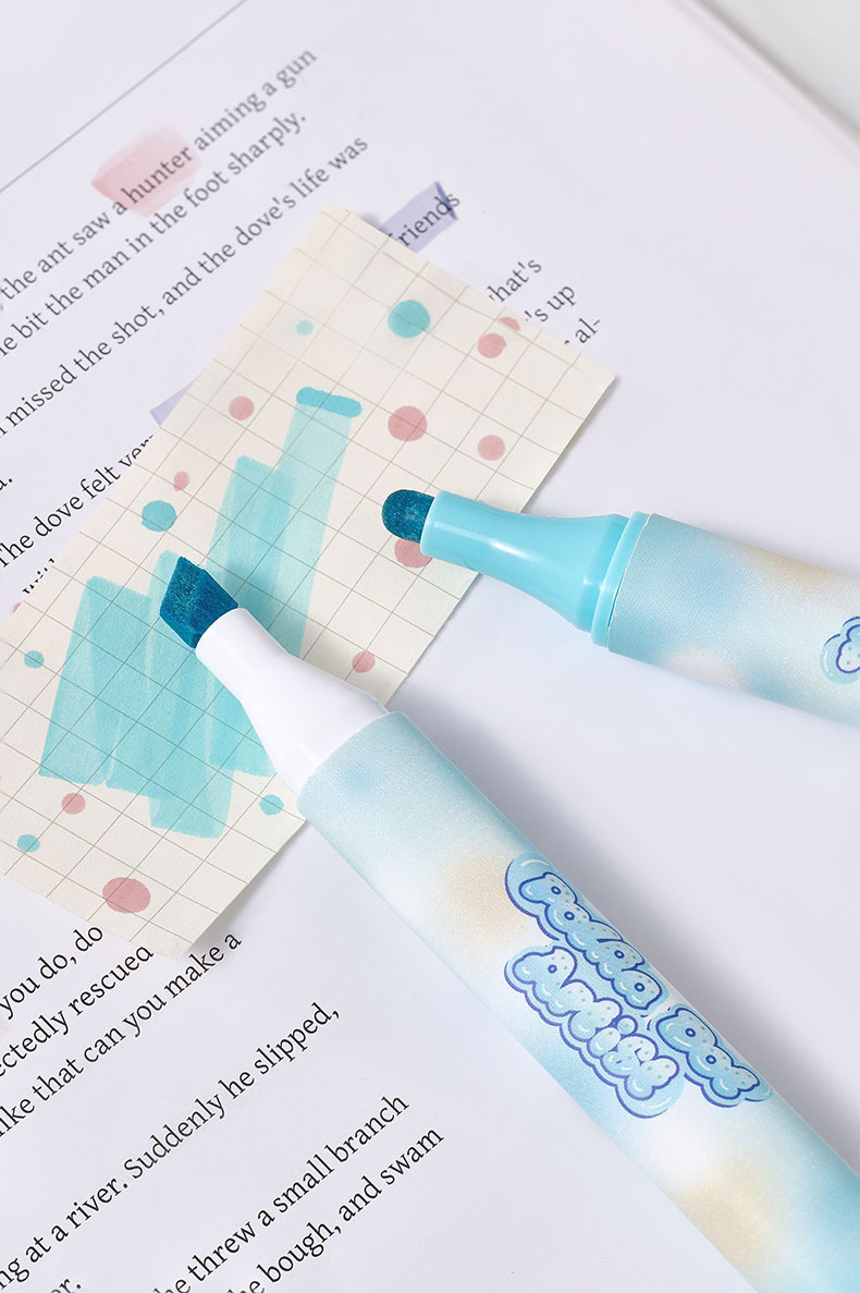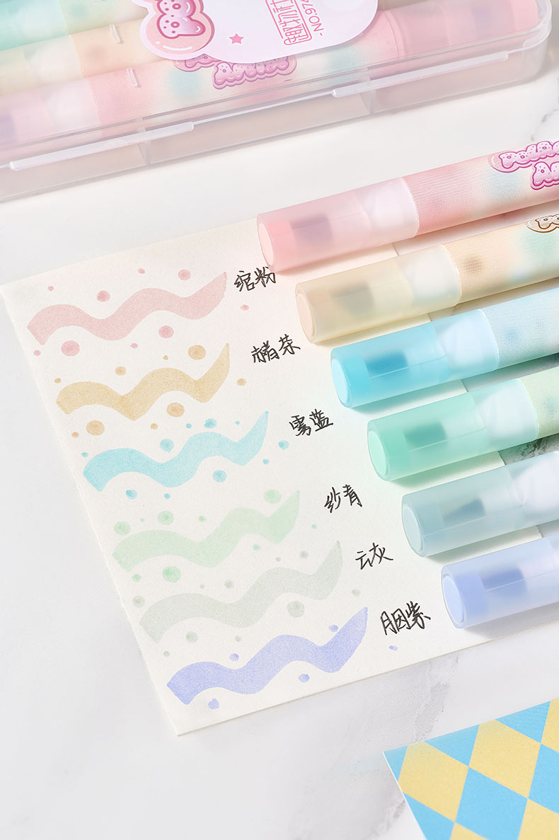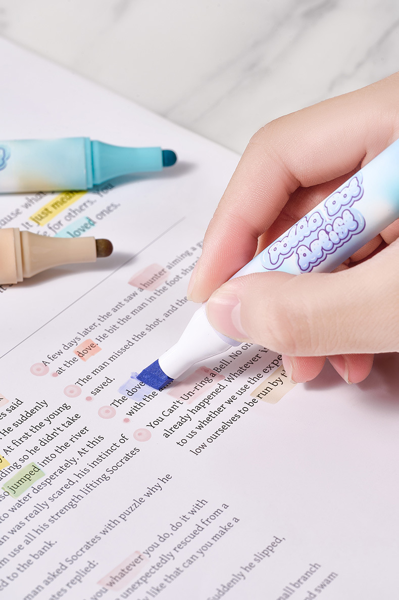 Protector de ojos de lunares, resaltador de doble cabeza de color suave, barra triangular, marcador de mano especial para oficina de estudiantes, pincel de gran capacidad