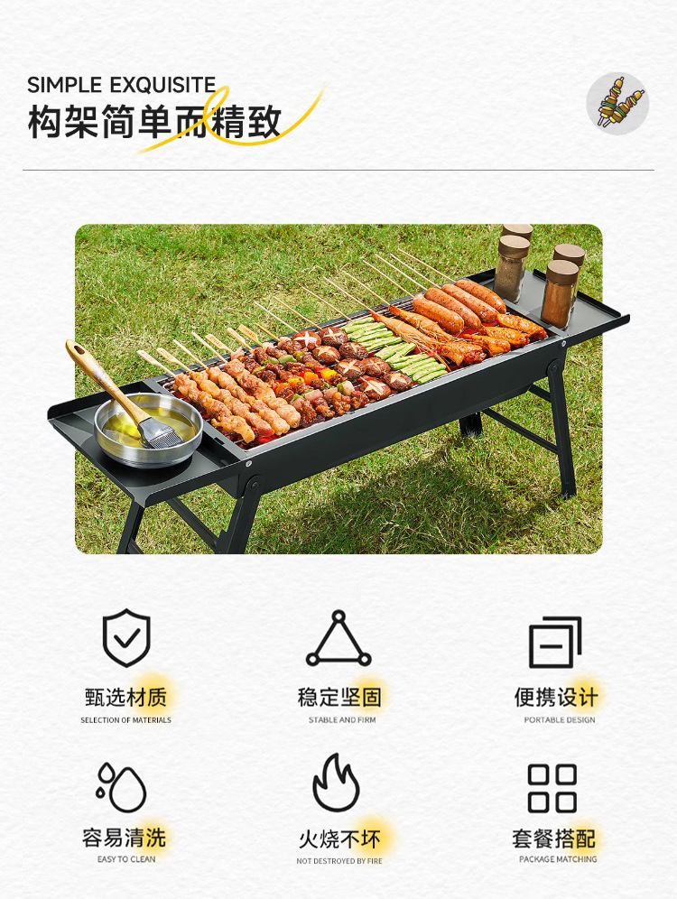 Barbacoa Barbacoa al aire libre Portable Ultra gruesa Acero inoxidable Red Familia Juego completo de herramientas Horno de barbacoa Barbacoa