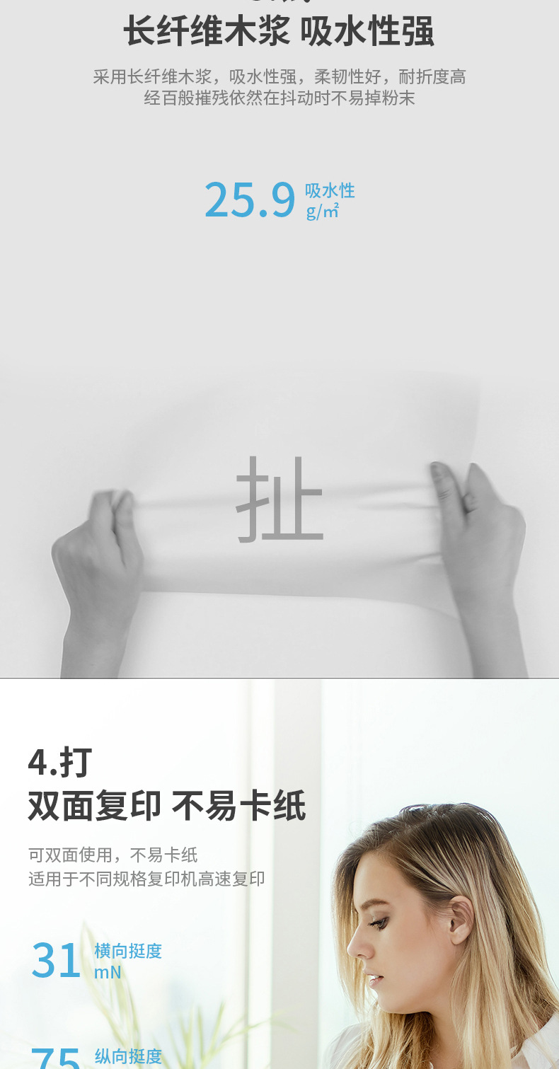 Papel A4 70g Jiaxuan papel de borrador de estudiantes 80g Kairui Jiaxuan Jia platino impresión de doble cara papel de copia de espesor