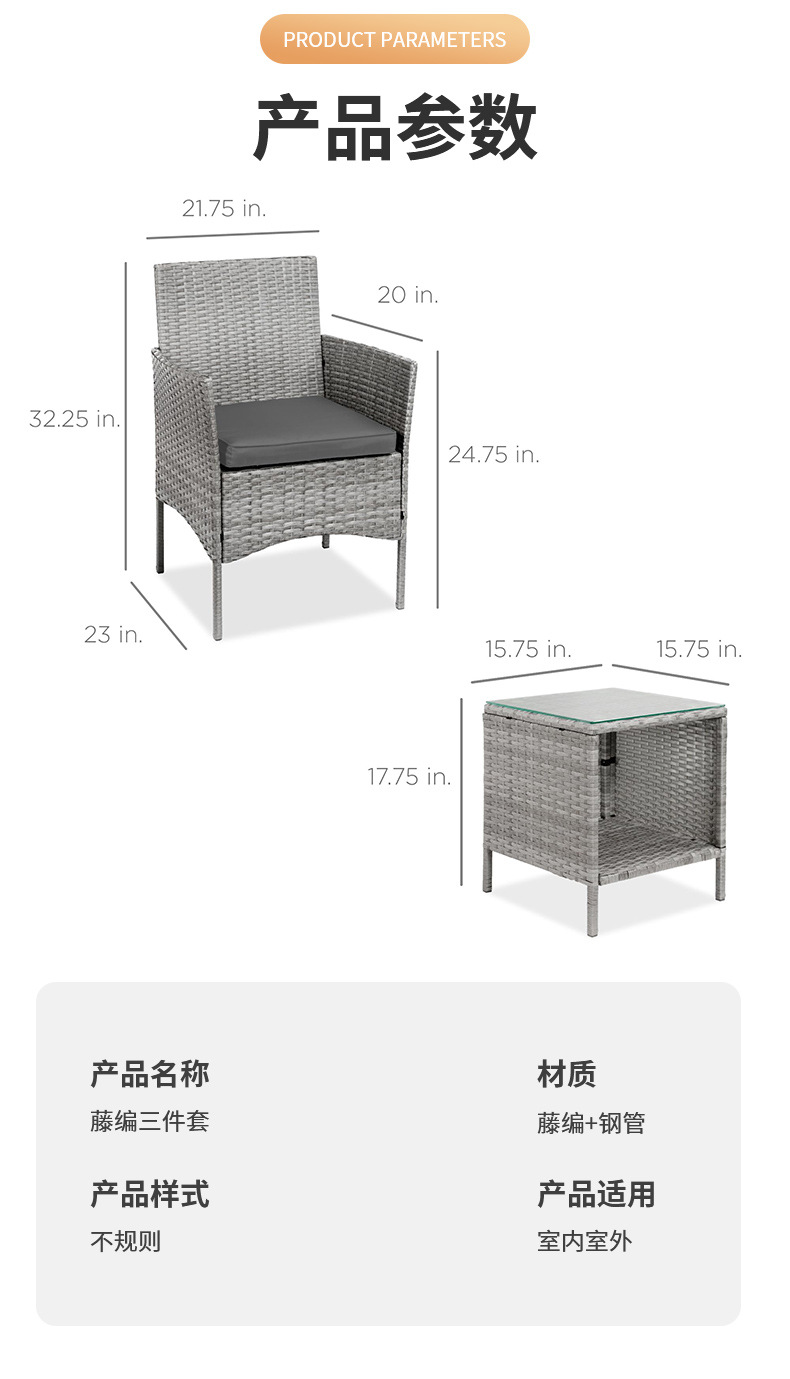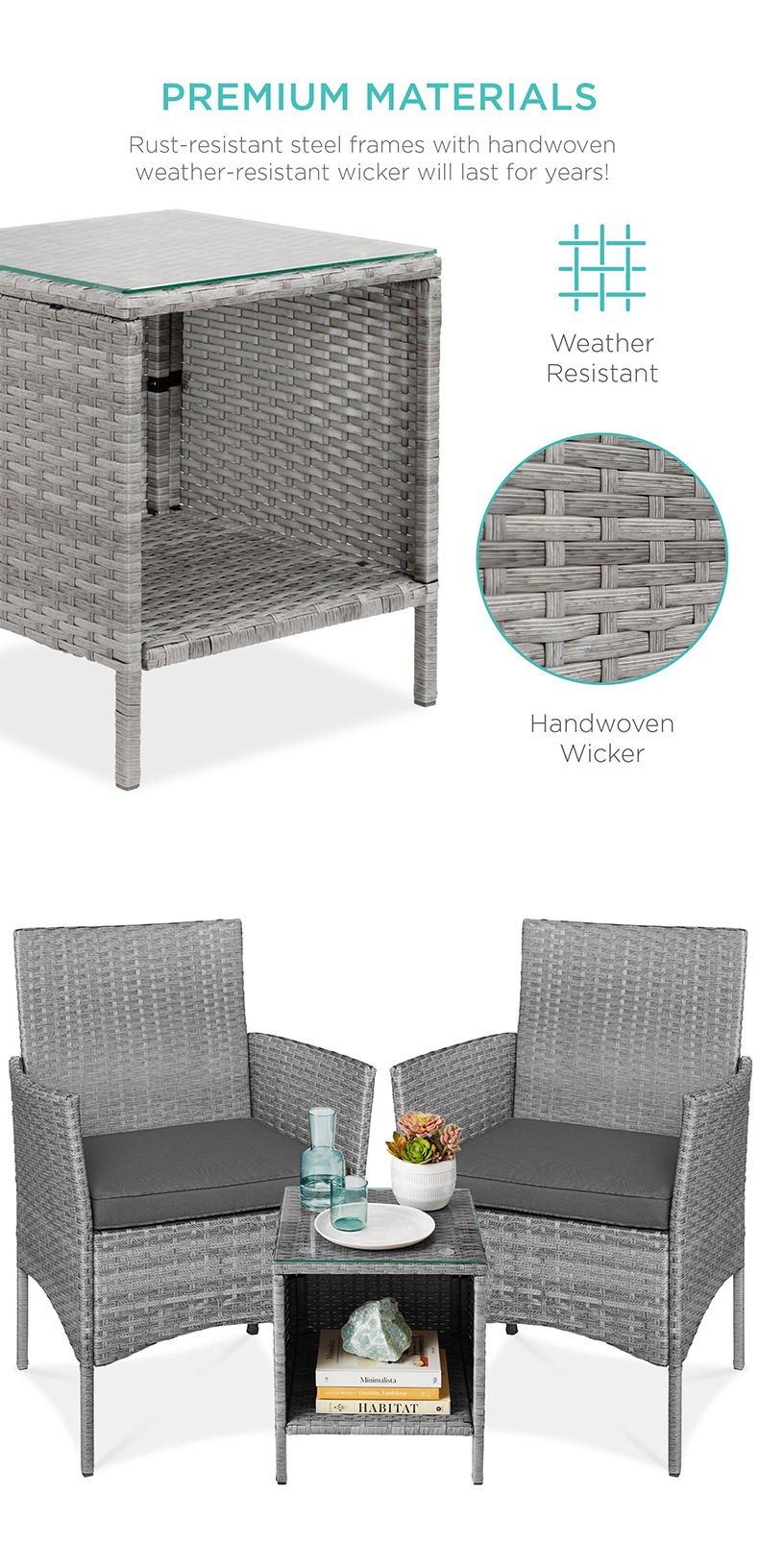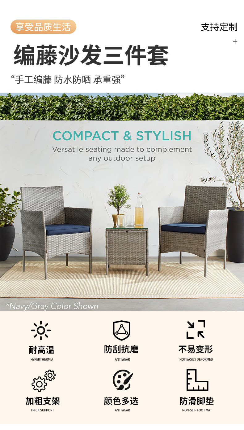 Muebles al por mayor al aire libre 630 tres piezas sofá de caña patio terraza balcón Amazon ventas calientes