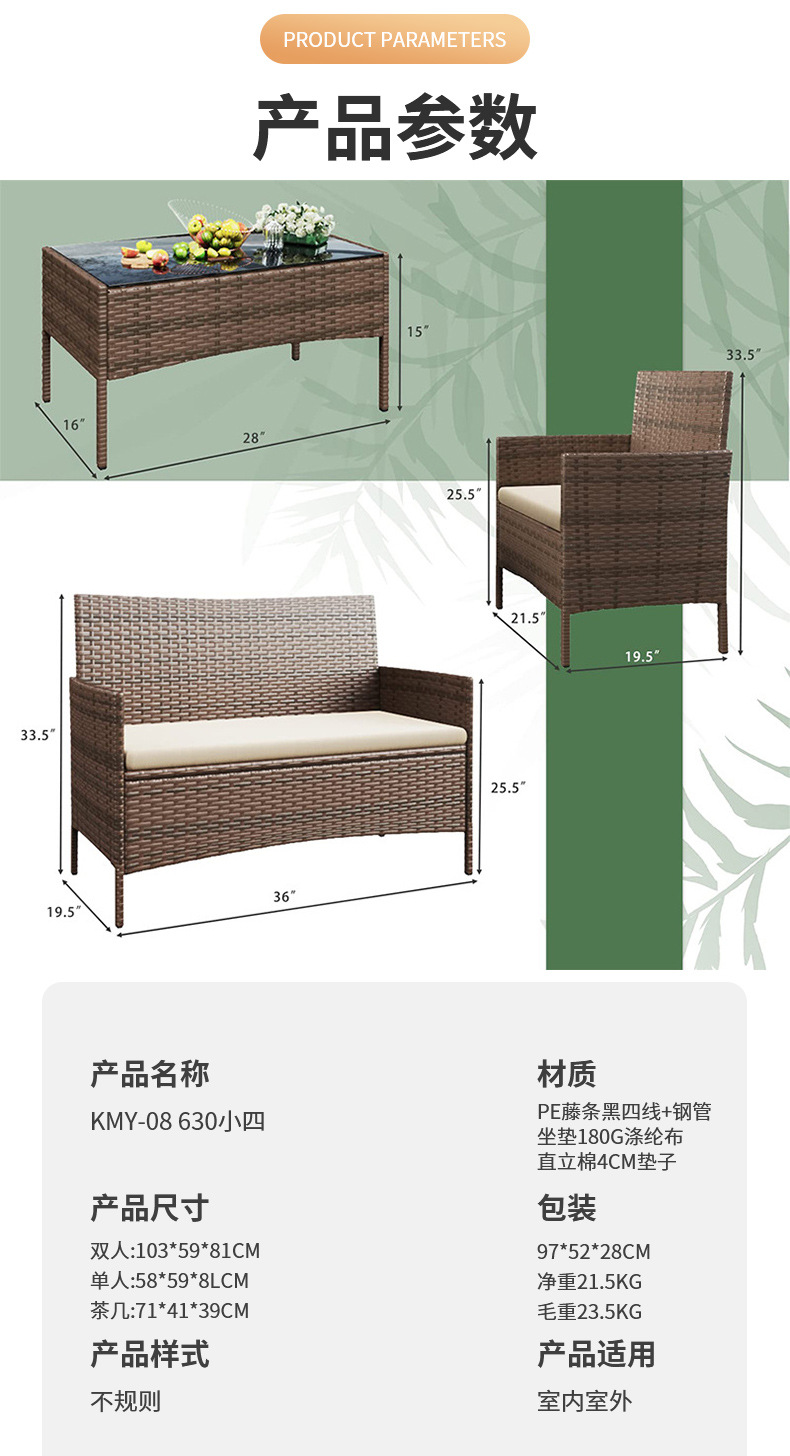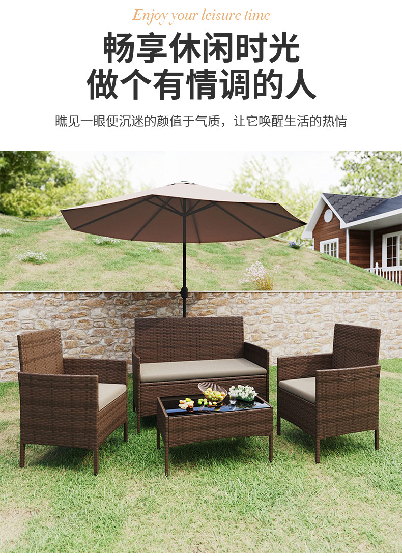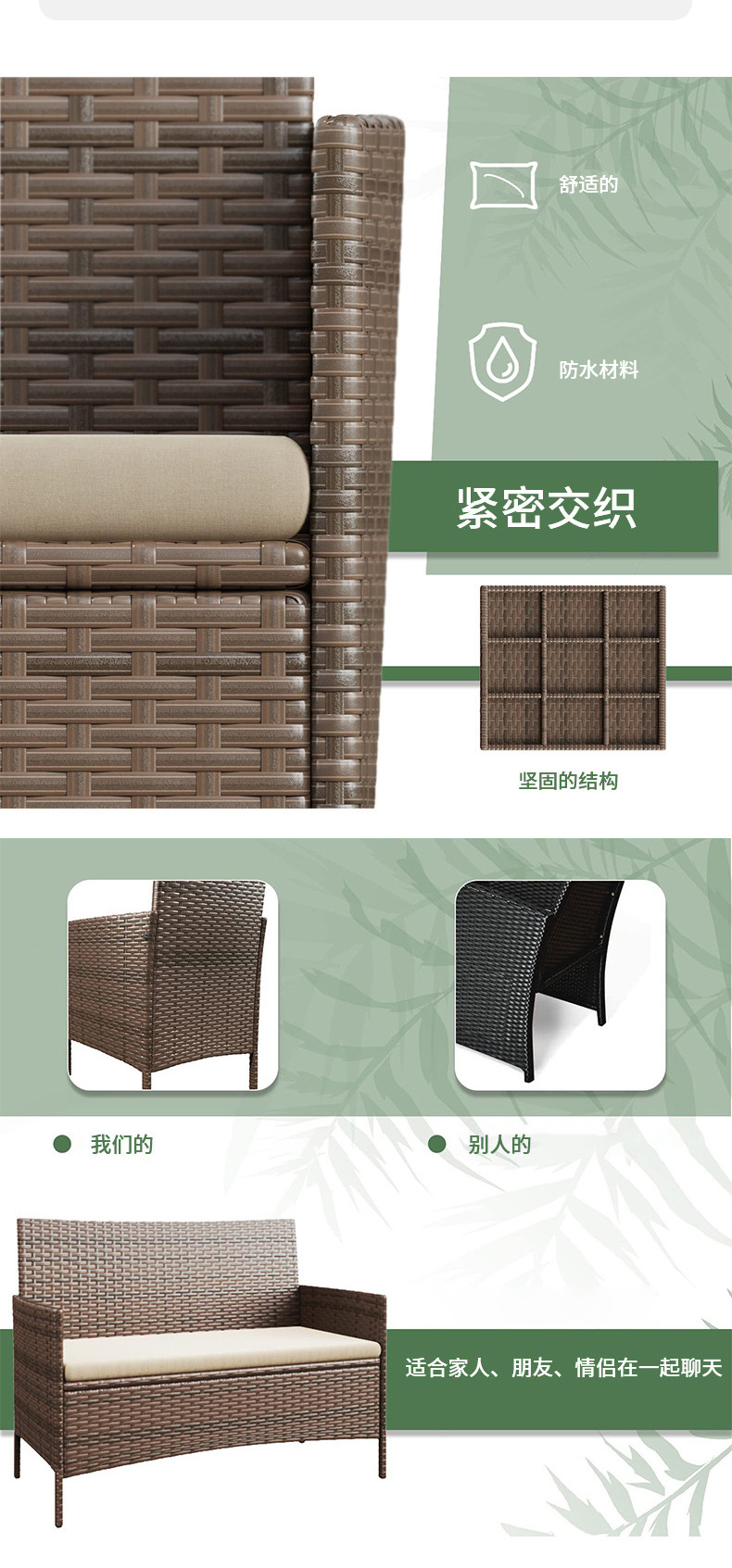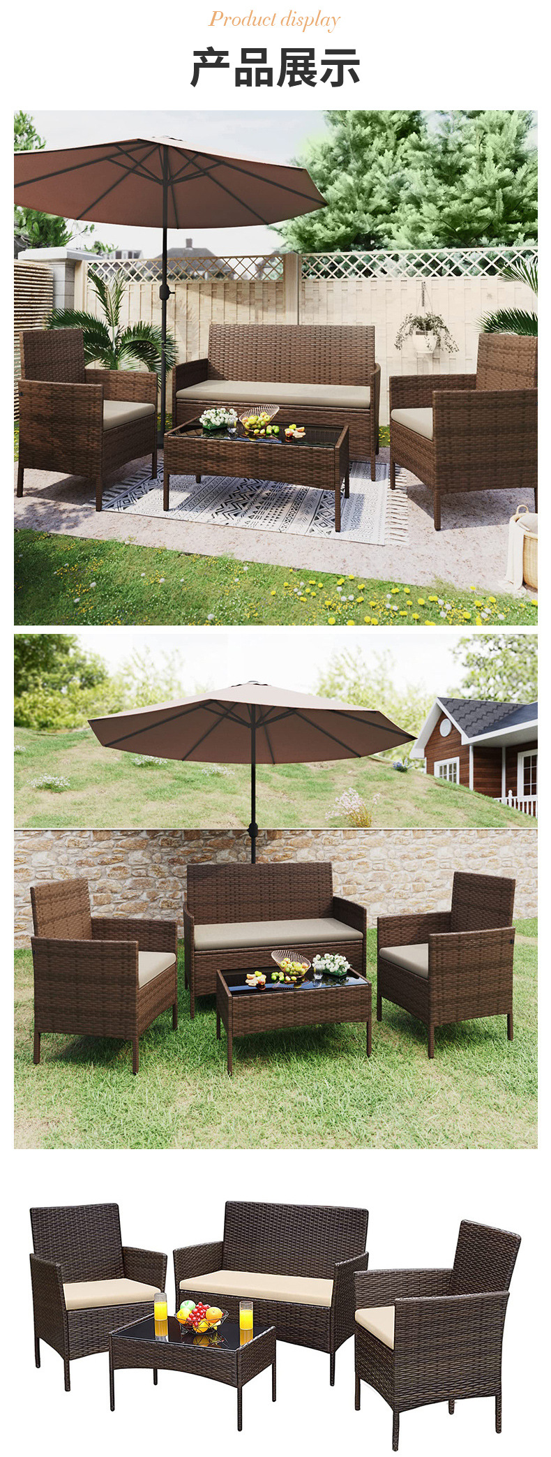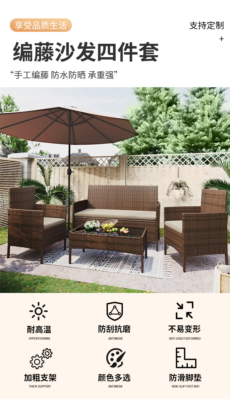 Mesa y silla de caña trenzada de balcón al aire libre de cuatro piezas Villa patio al aire libre de tela de caña mesa de té combinación patio