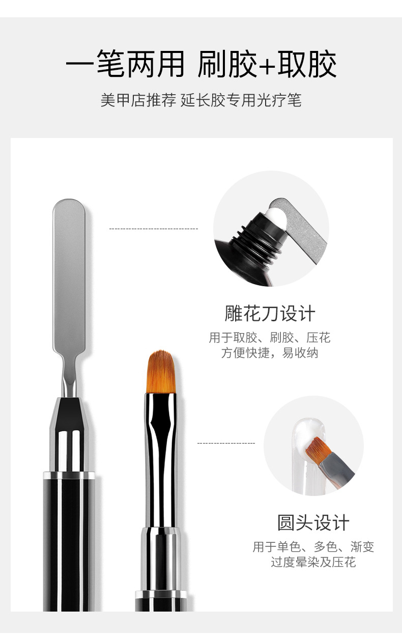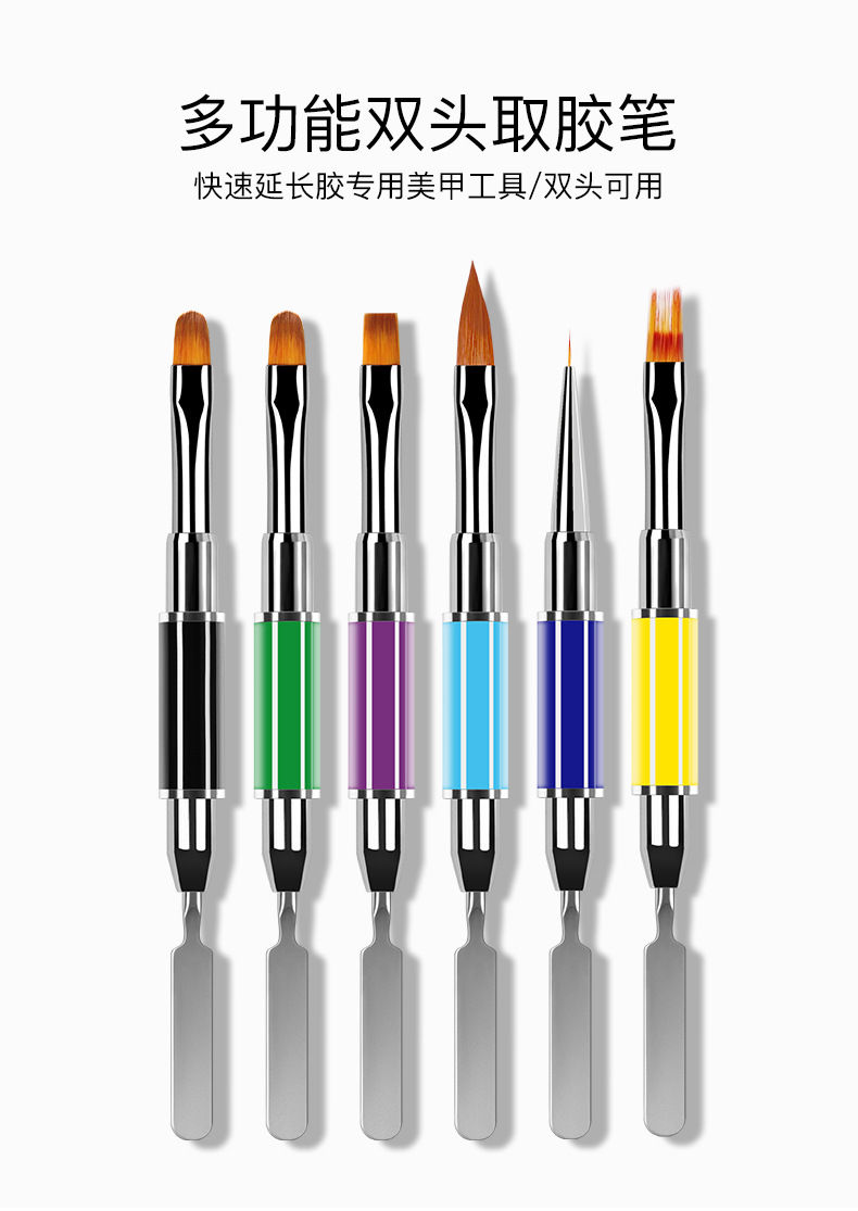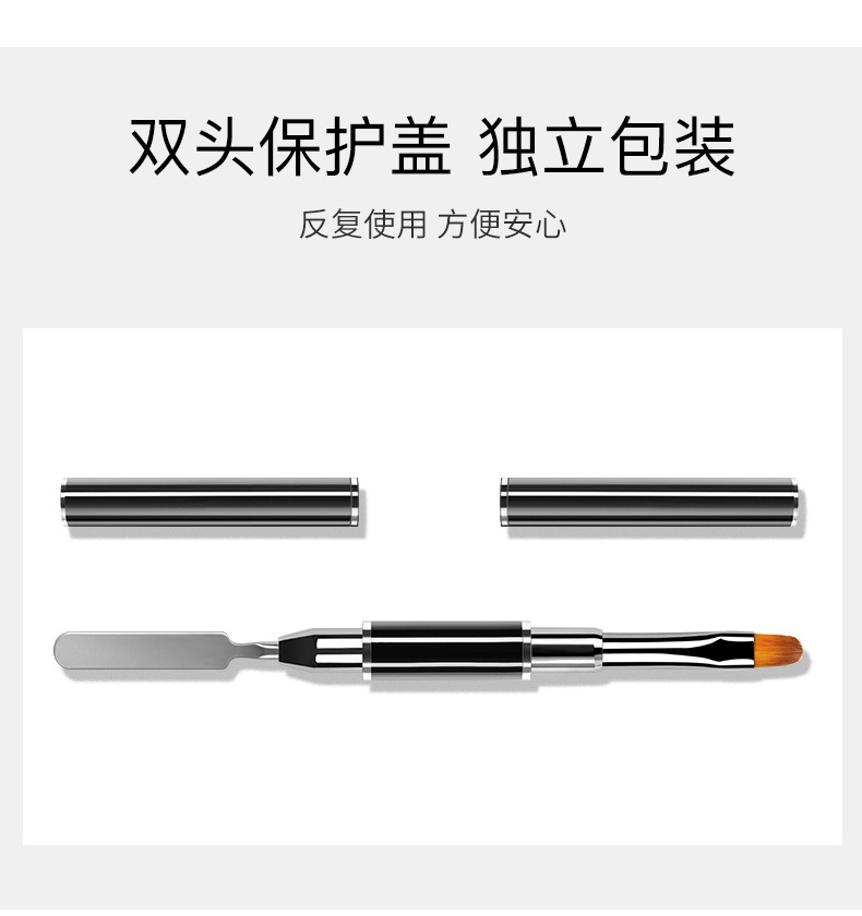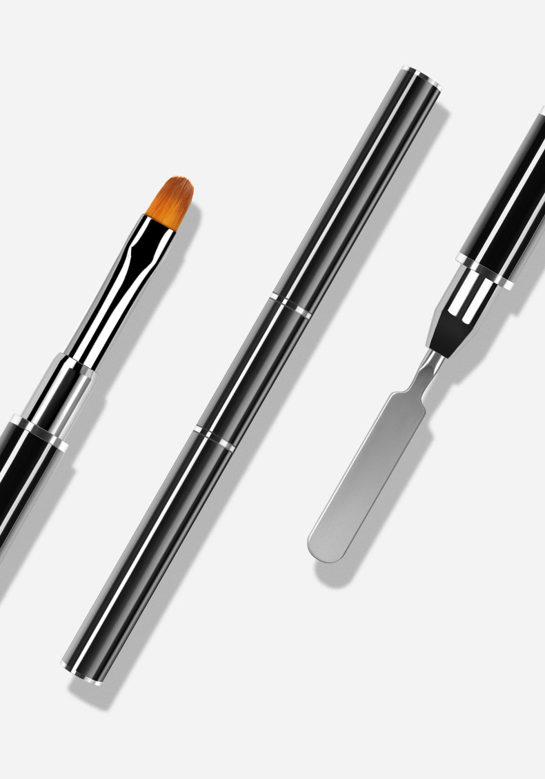 Lápiz de goma de doble cabeza, lápiz de uñas, varilla de mezcla de goma metálica, cepillo de fototerapia de cabeza plana con cubierta, herramienta de lápiz de uñas