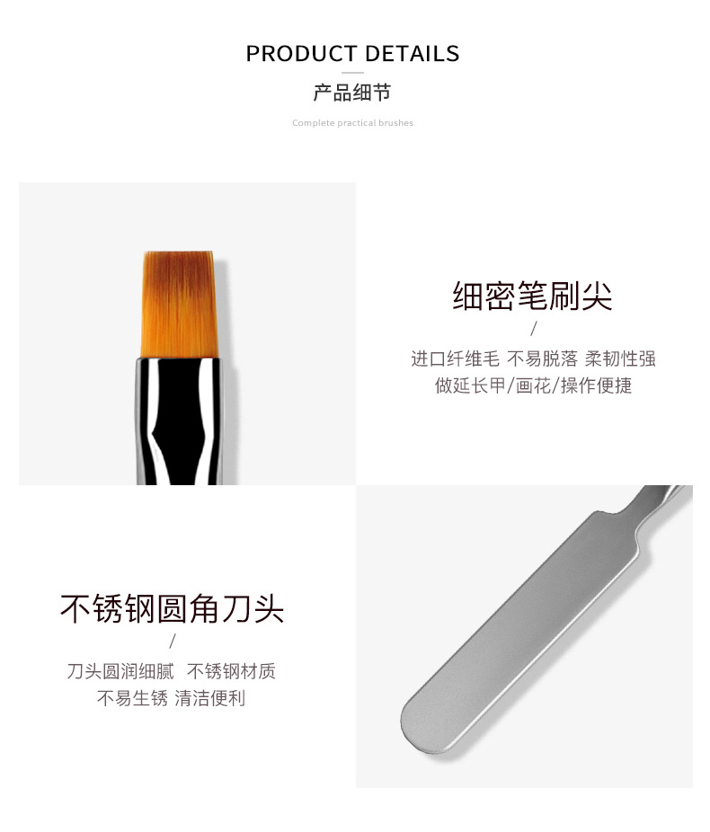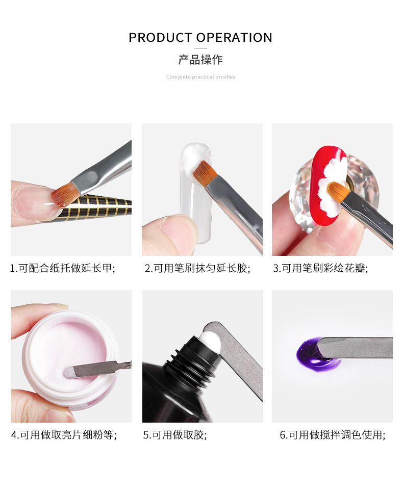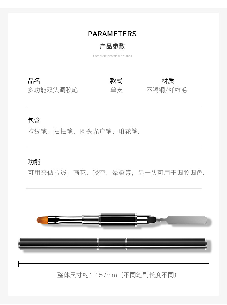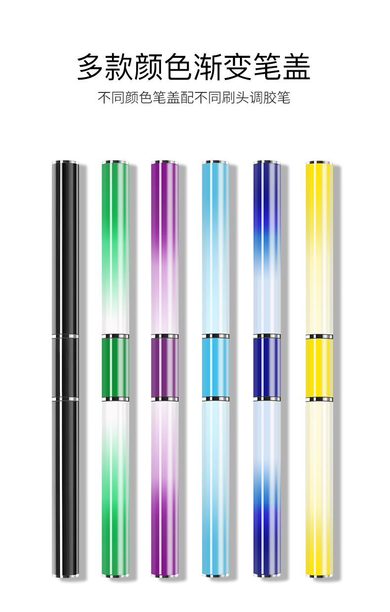Lápiz de goma de doble cabeza, lápiz de uñas, varilla de mezcla de goma metálica, cepillo de fototerapia de cabeza plana con cubierta, herramienta de lápiz de uñas