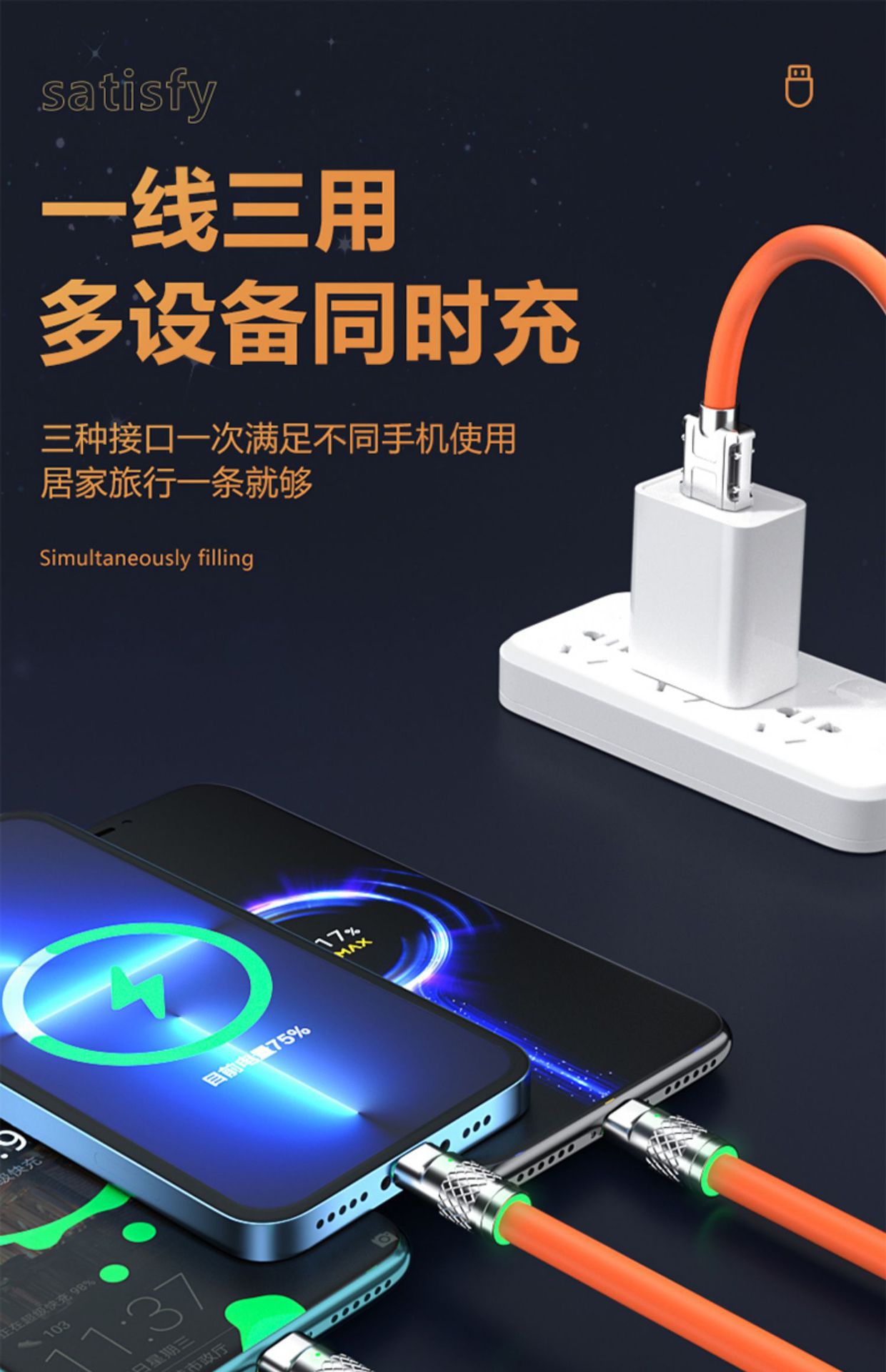 120w línea de carga súper rápida línea de pasajeros aleación de zinc un cable de datos líquido original cable de carga universal de teléfono móvil