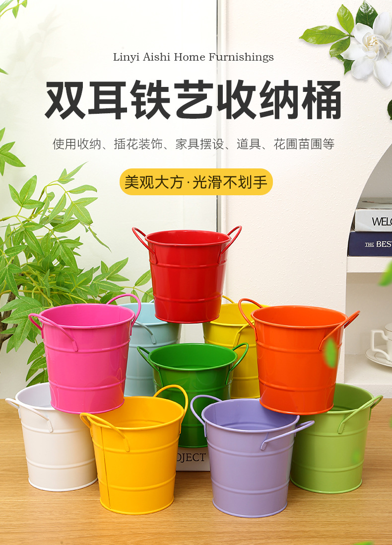 Transfronterizo de doble oreja barril de almacenamiento de hierro forjado artesanía doméstica mayorista barril de maceta se puede colgar contenedor creativo barril comercio exterior