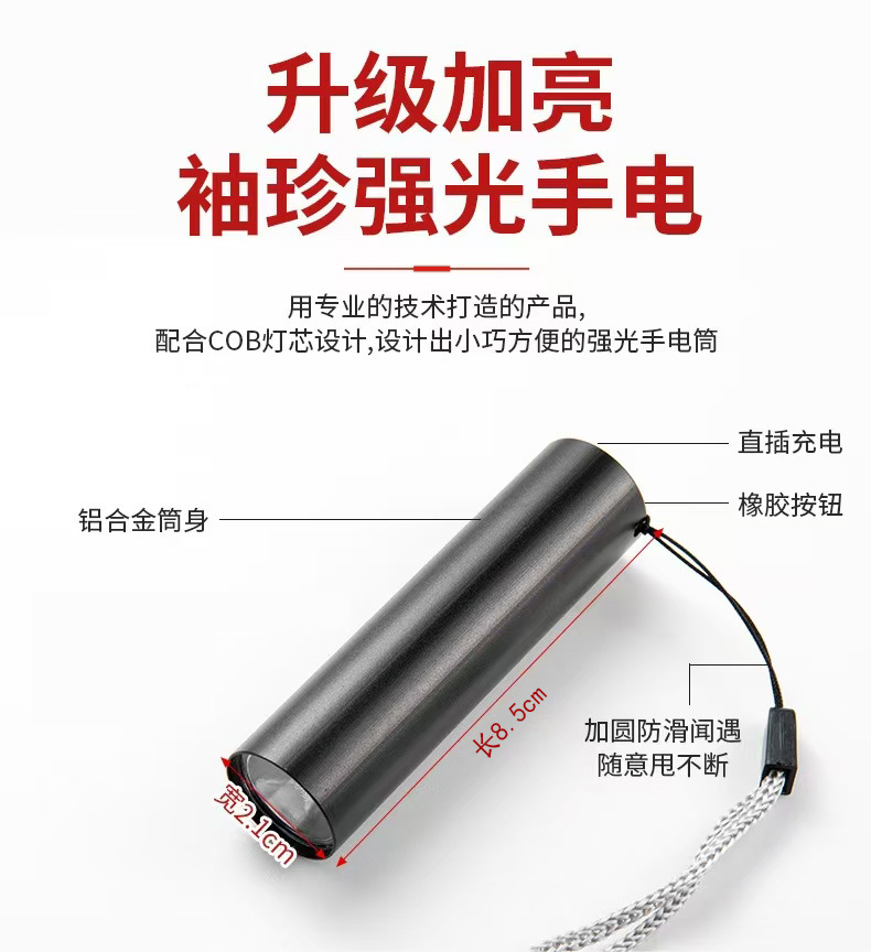 Jiangfenfa Pocket Genie portátil linterna al aire libre luz fuerte recargable pequeña linterna doméstica al aire libre