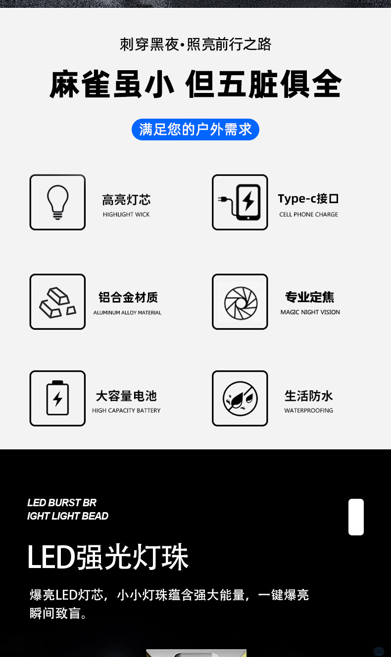 Mini linterna portátil portátil de luz brillante portátil de luz brillante al aire libre de largo alcance doméstico de larga duración linterna