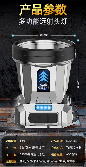 Luz fuerte y larga duración del faro LED nuevo tipo de cabeza al aire libre recargable lámpara de pesca nocturna luz de minería luz de emergencia ultra brillante