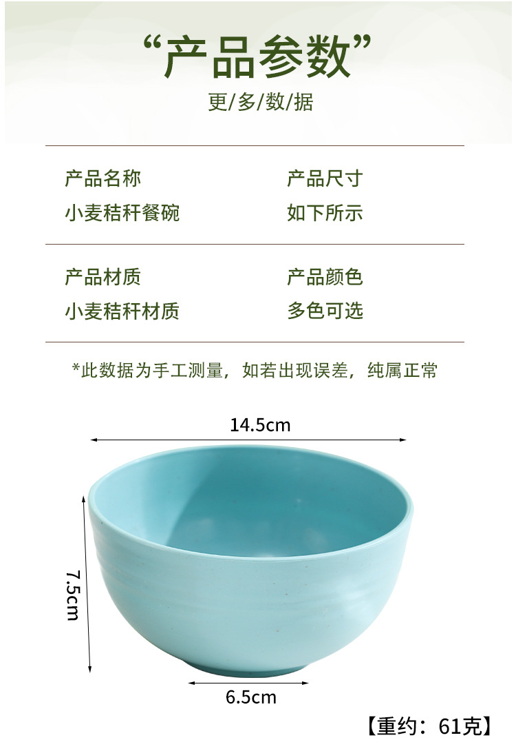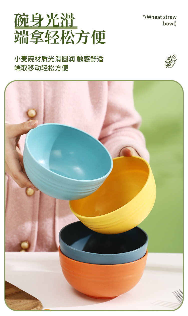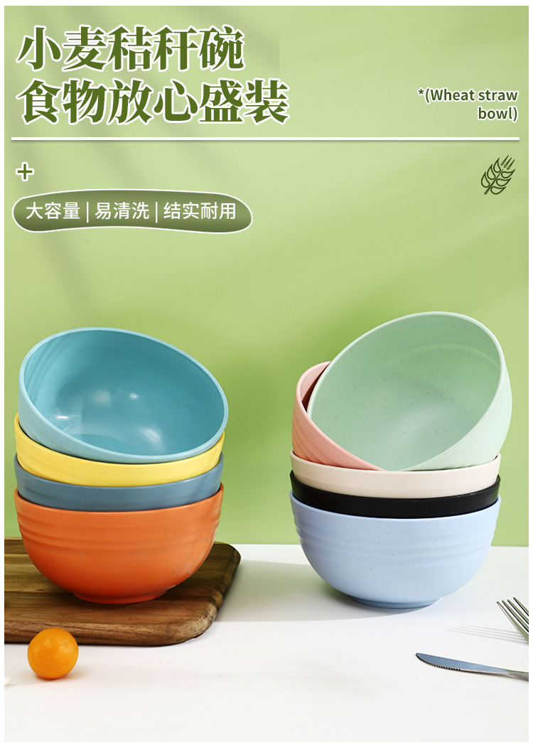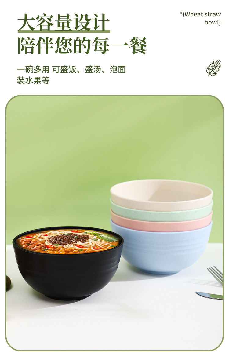 Tazón de arroz de paja de trigo 15cm simple gran tazón doméstico dormitorio de estudiantes tazón de fideos tazón de caída para niños