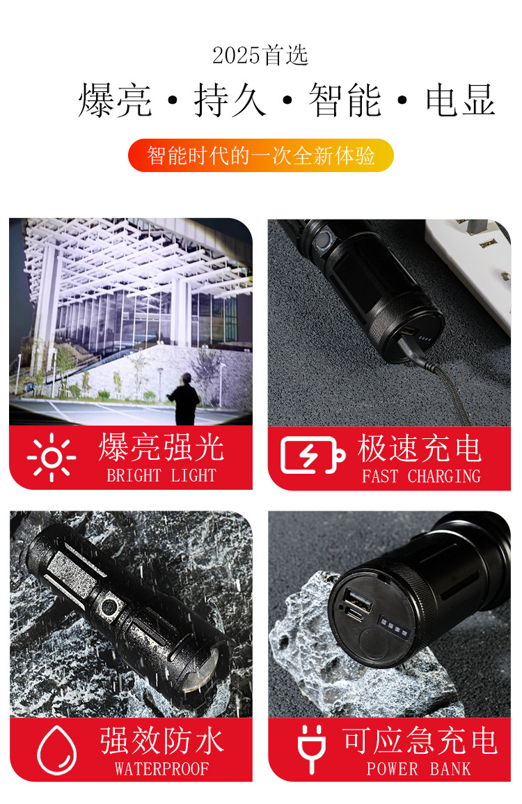 Jiangfenfa linterna de luz fuerte, linterna láser de zoom de largo alcance al aire libre, recargable, ultra brillante