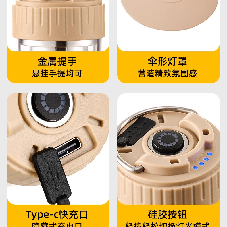 Nuevas luces de campamento transfronterizas Linterna de iluminación exterior para puestos Lámpara de tienda portátil Carga multifuncional Lámpara de ambiente de campamento