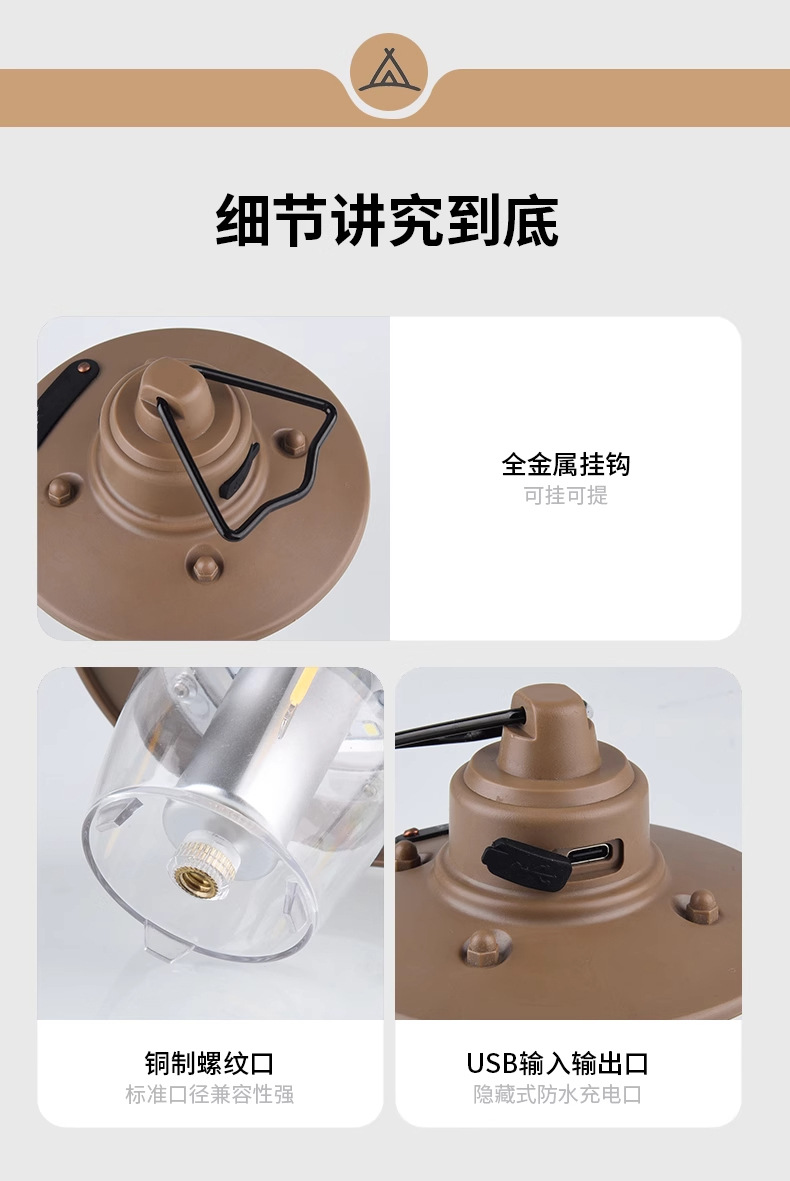 Lámpara de campamento al aire libre Jiang Fenfa Lámpara de pinina retro Lámpara de tienda exquisita Lámpara de LED de batería de larga duración