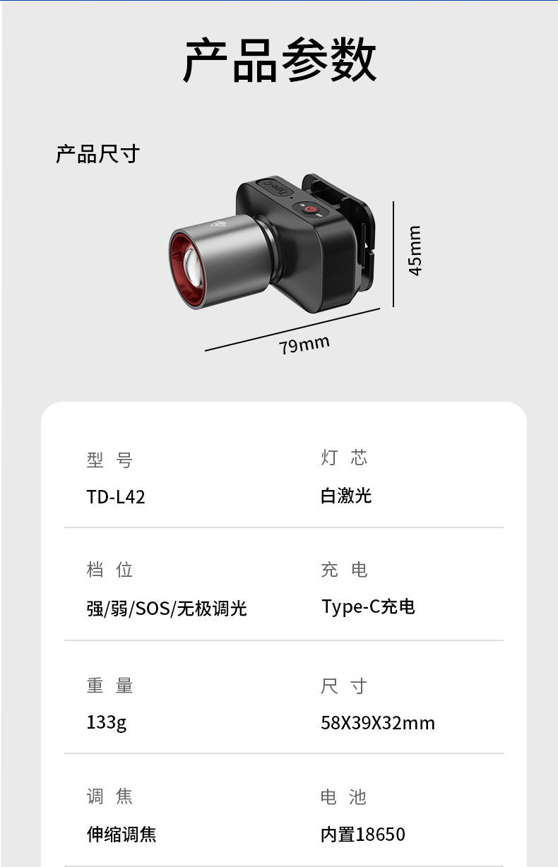 Transfronterizo nuevo láser blanco zoom faro multifuncional de larga duración luz de pesca nocturna de emergencia hogar recargable lámpara montada en la cabeza