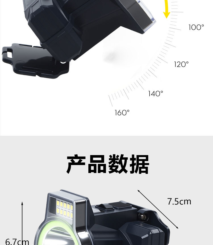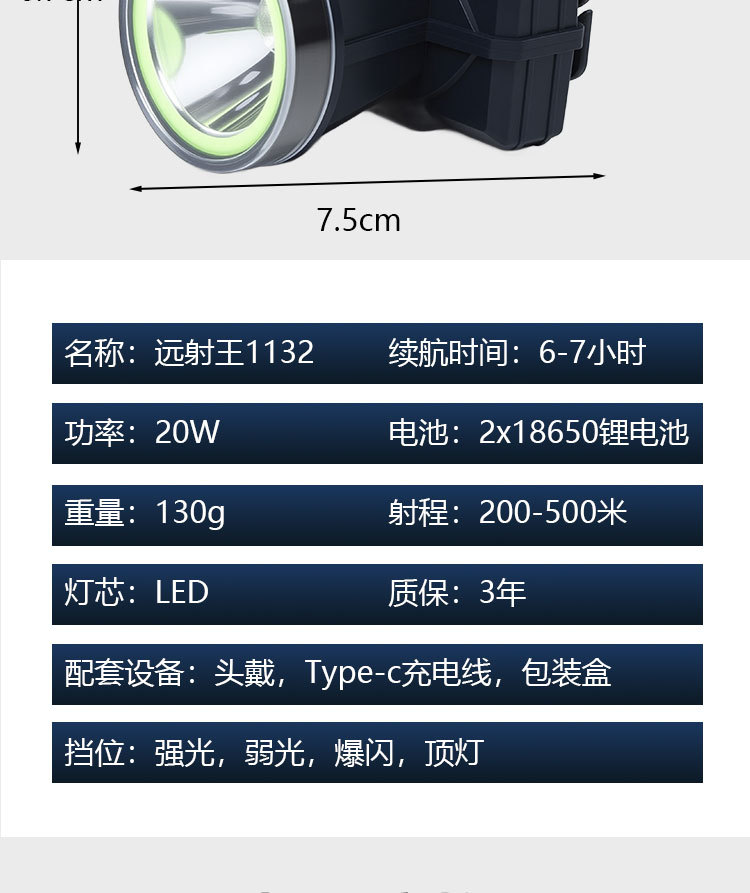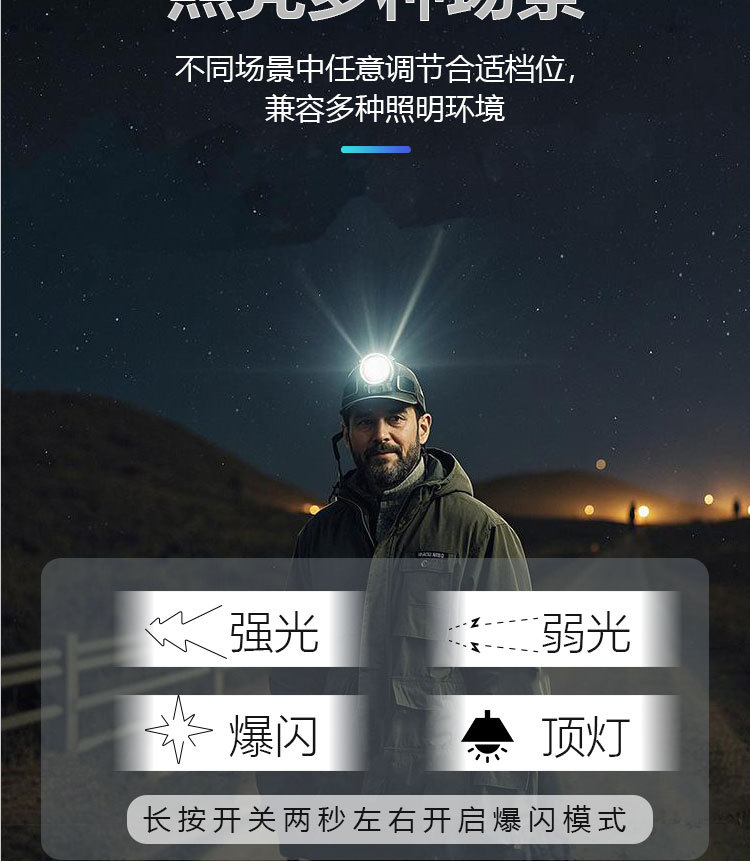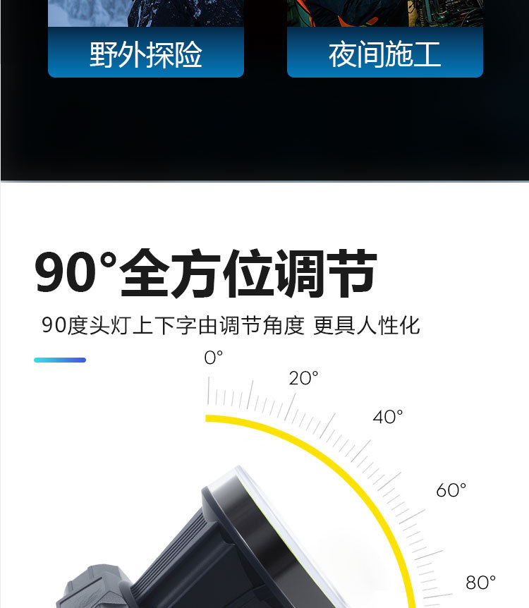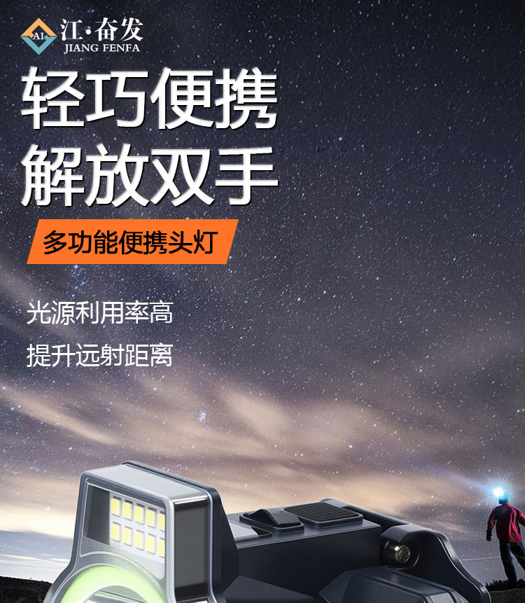 Jiang Fenfa led faro de luz fuerte batería de litio doble batería de larga duración faro montado en la cabeza luz led de alto brillo luz de pesca nocturna impermeable