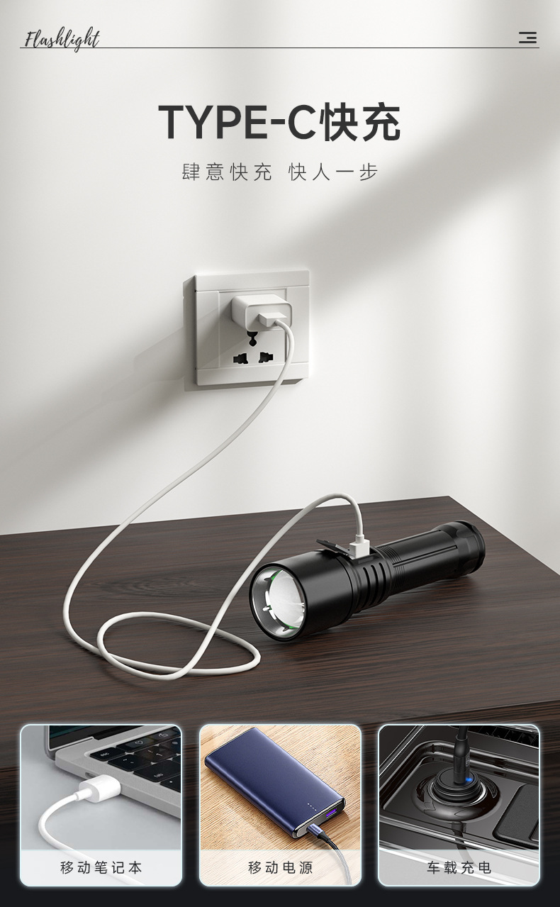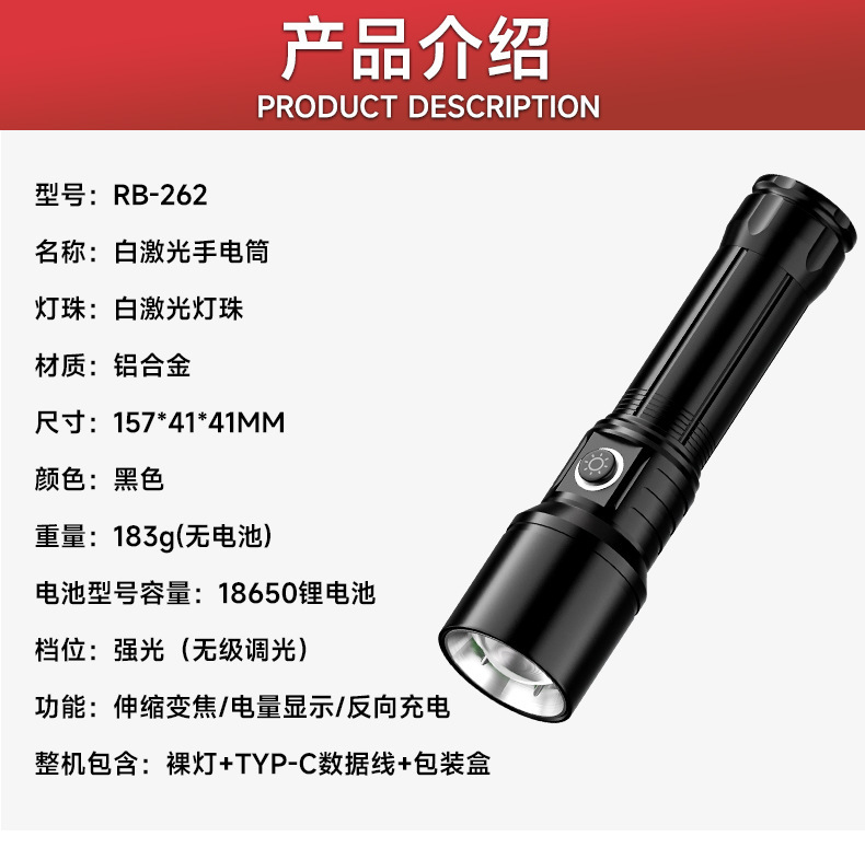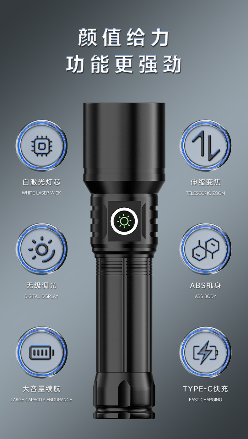 Nueva linterna láser blanca transfronteriza 20W linterna de luz fuerte láser blanca larga carga USB linterna láser blanca