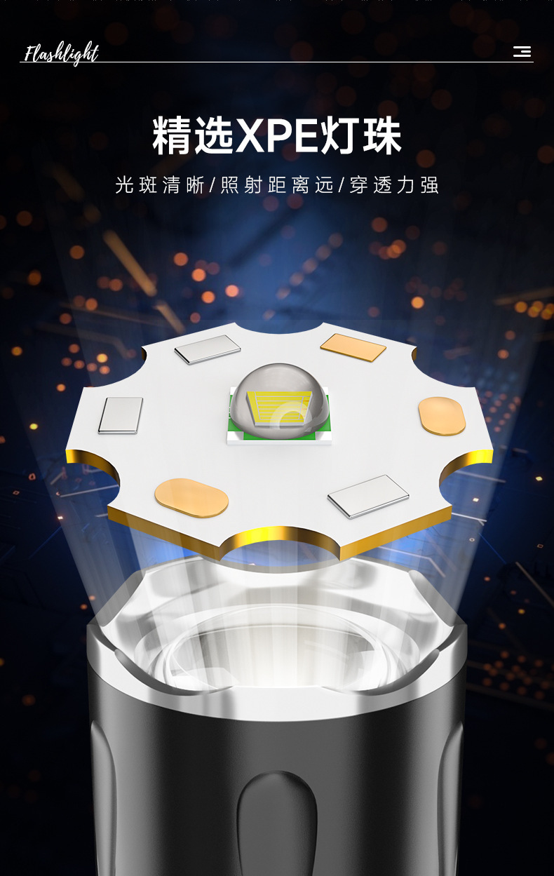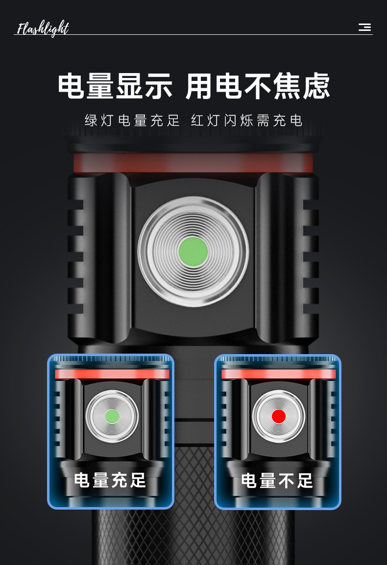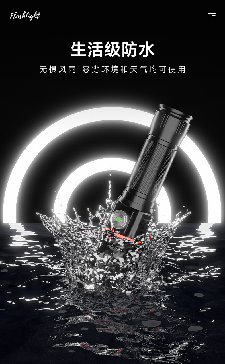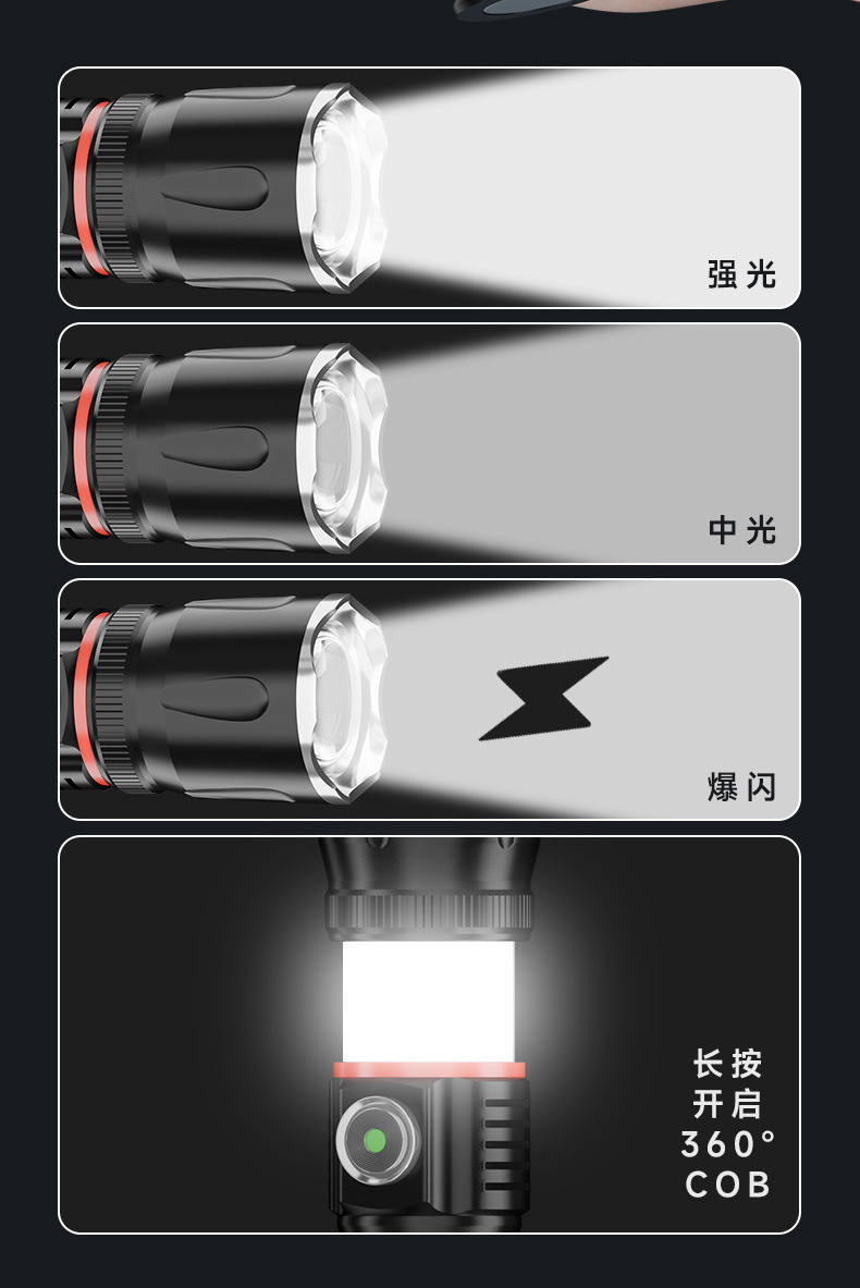 Linterna LED de luz fuerte de fuente de luz dual transfronteriza, carga USB de aleación de aluminio, iluminación exterior multifuncional, linterna portátil