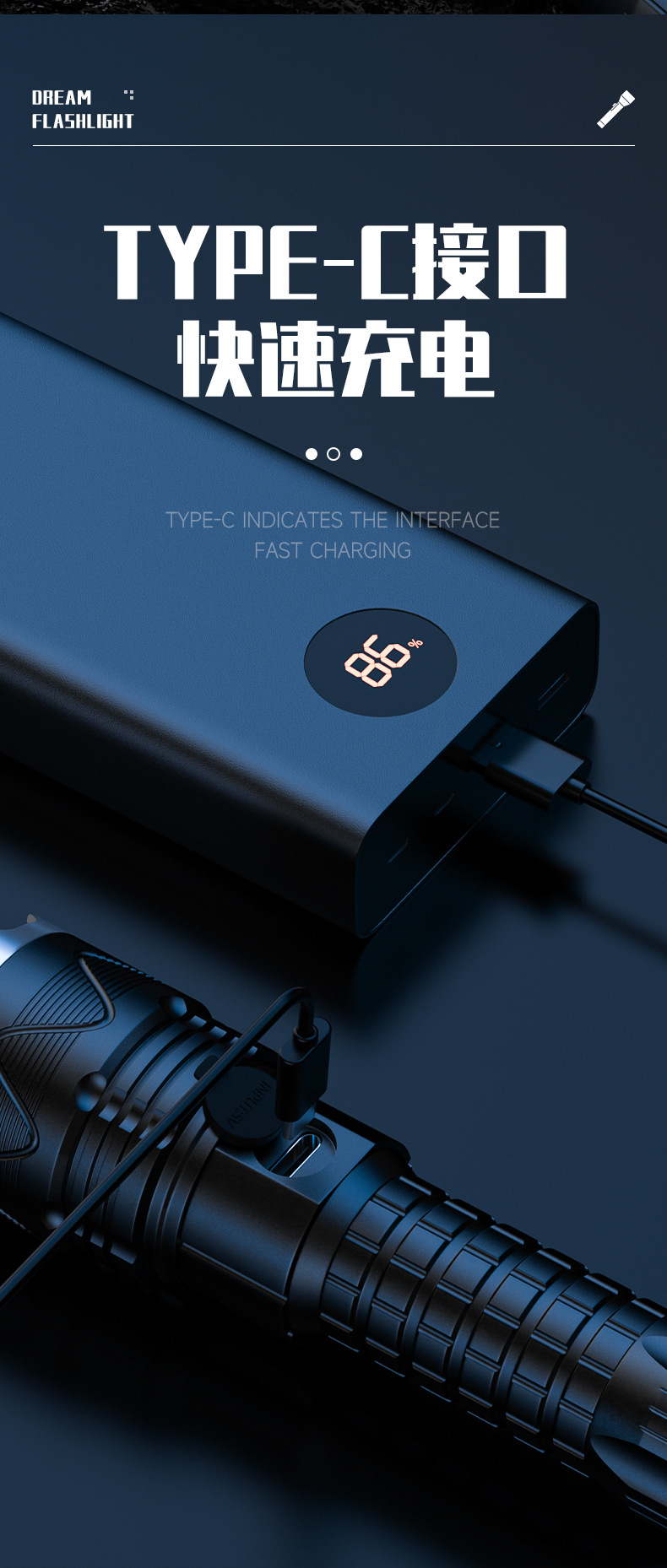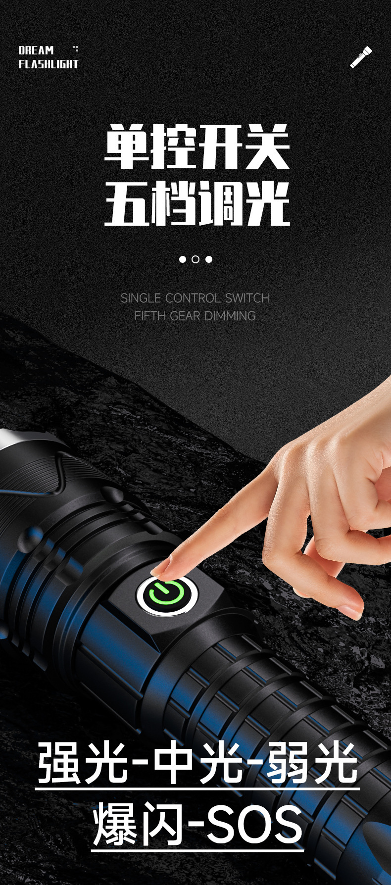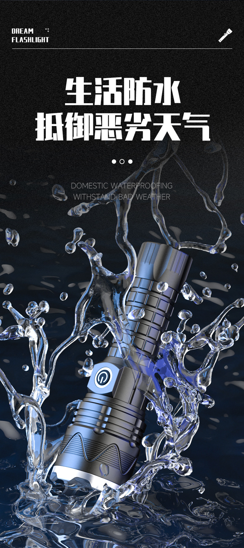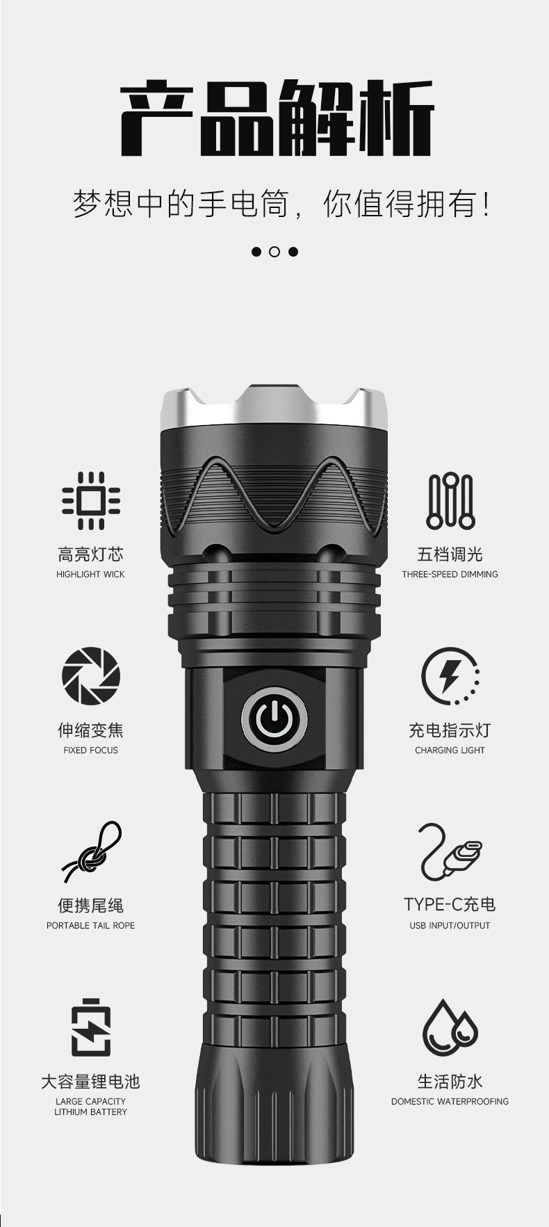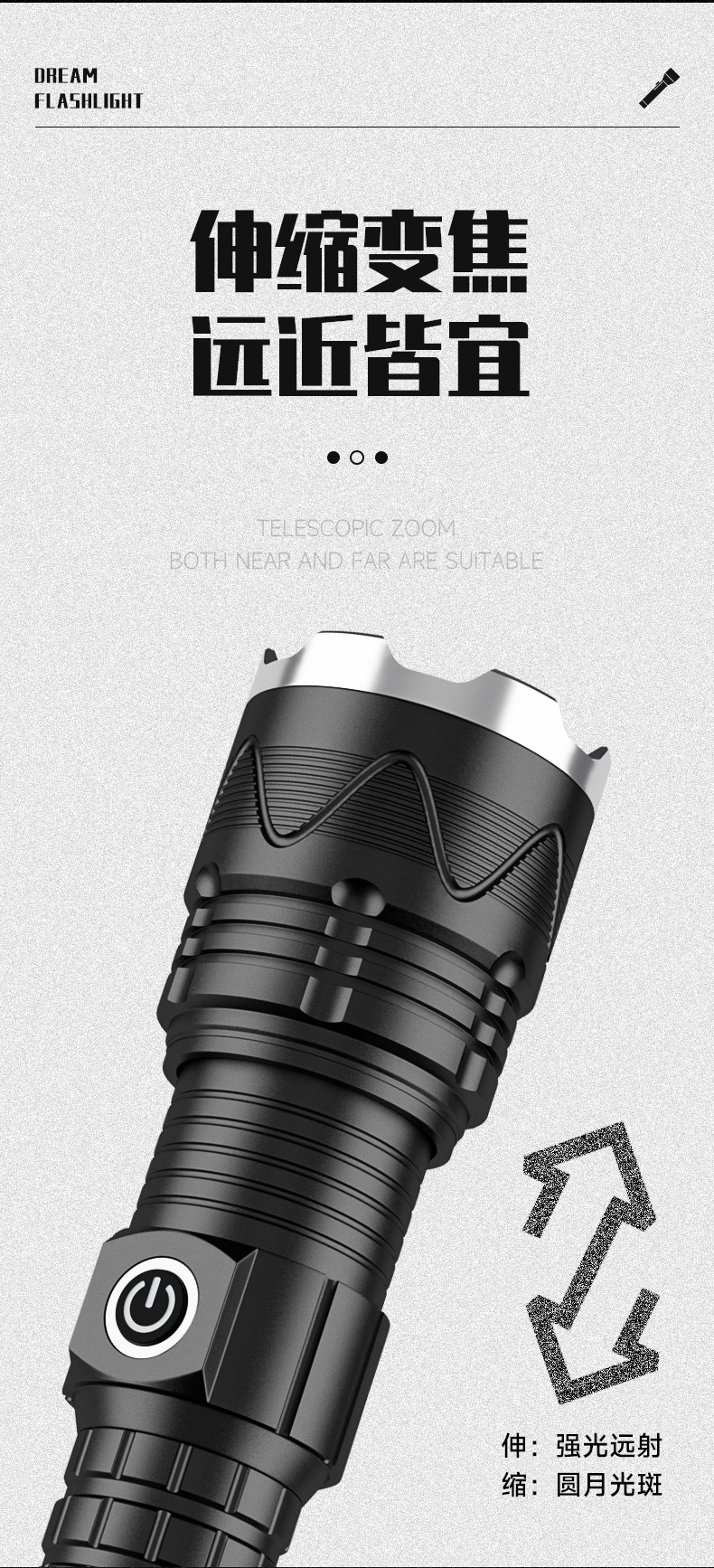 Linterna de luz fuerte telescópica P90 Linterna P70 Zoom de luz fuerte Luz lateral COB Luz de luz exterior multifuncional de largo alcance