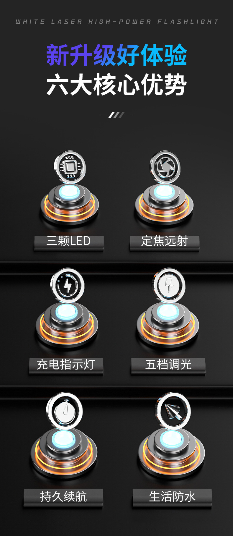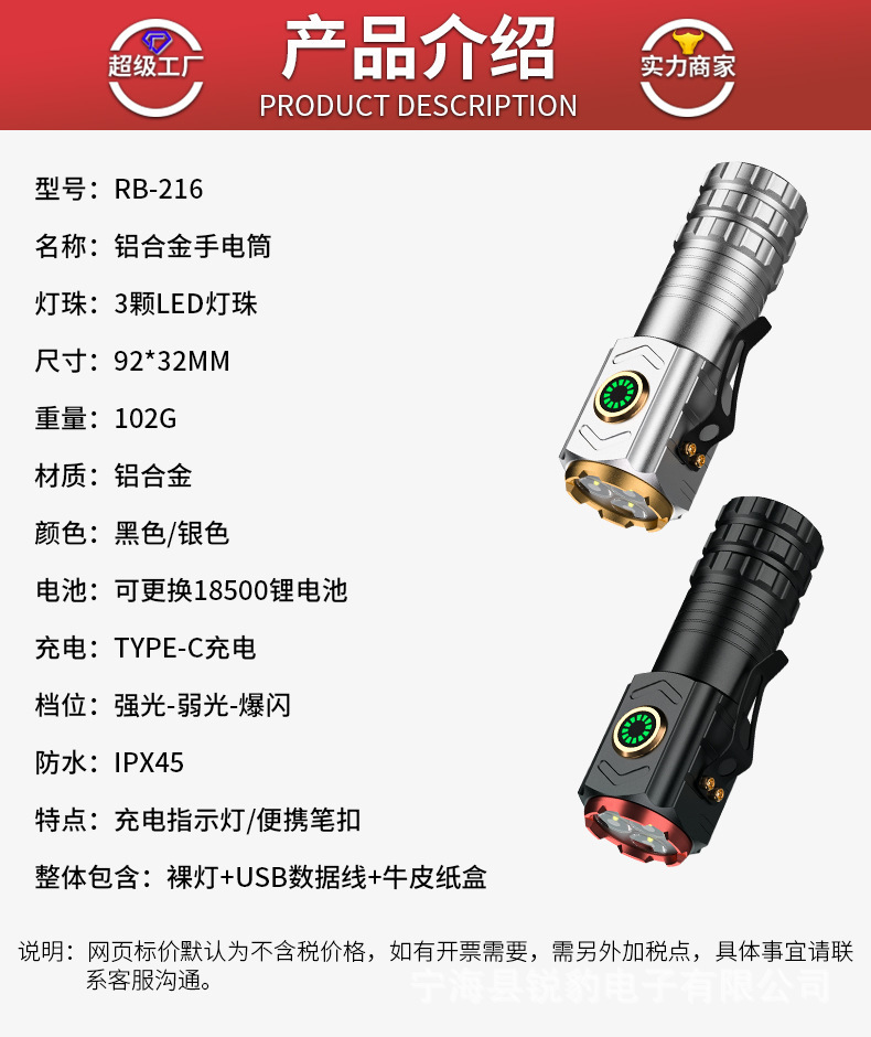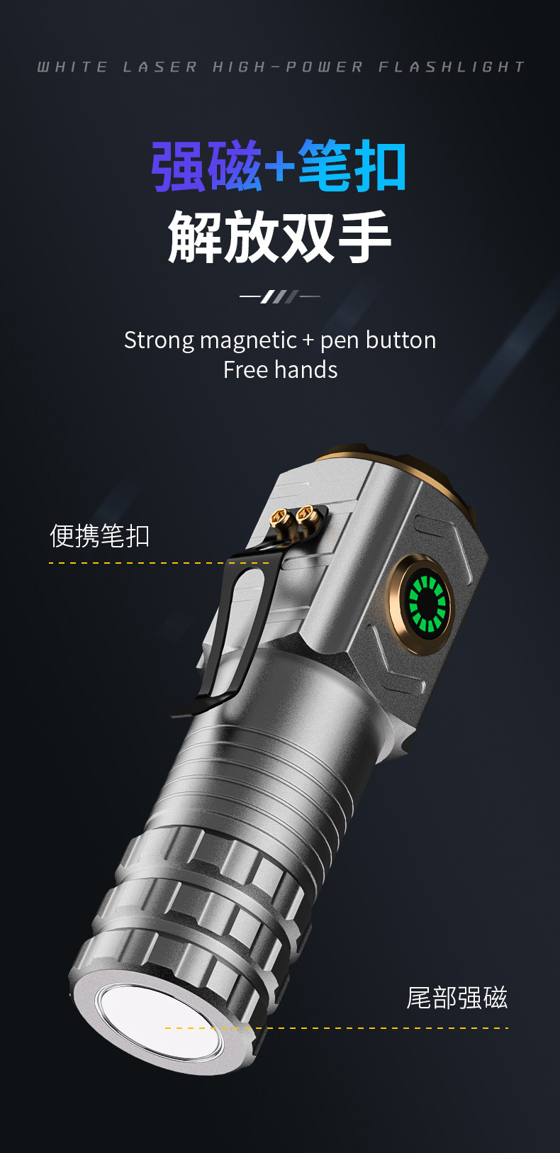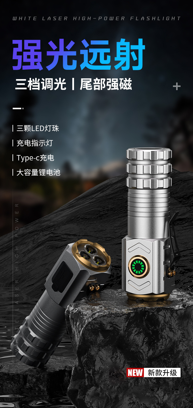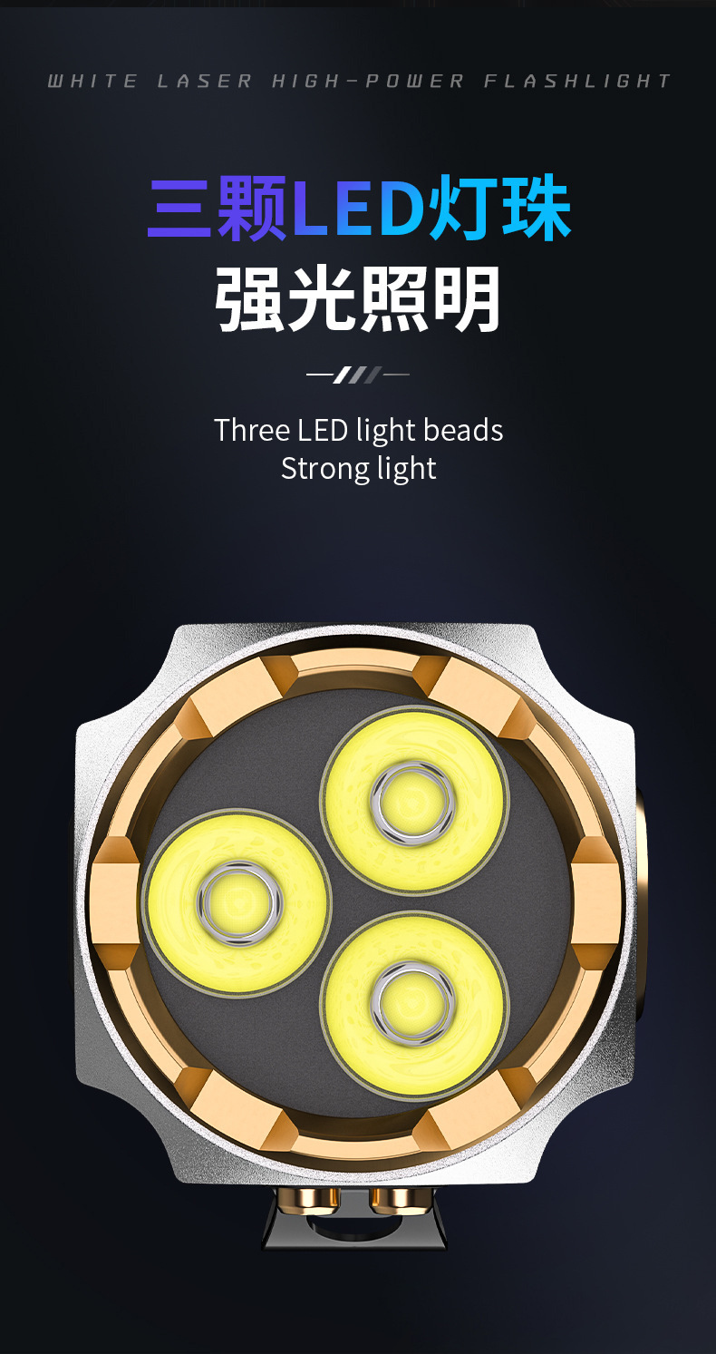 Trabajo de reparación de mano al aire libre súper brillante de tres ojos, pequeña linterna magnética explosiva, luz de aleación de aluminio para el hogar, linterna, luz fuerte