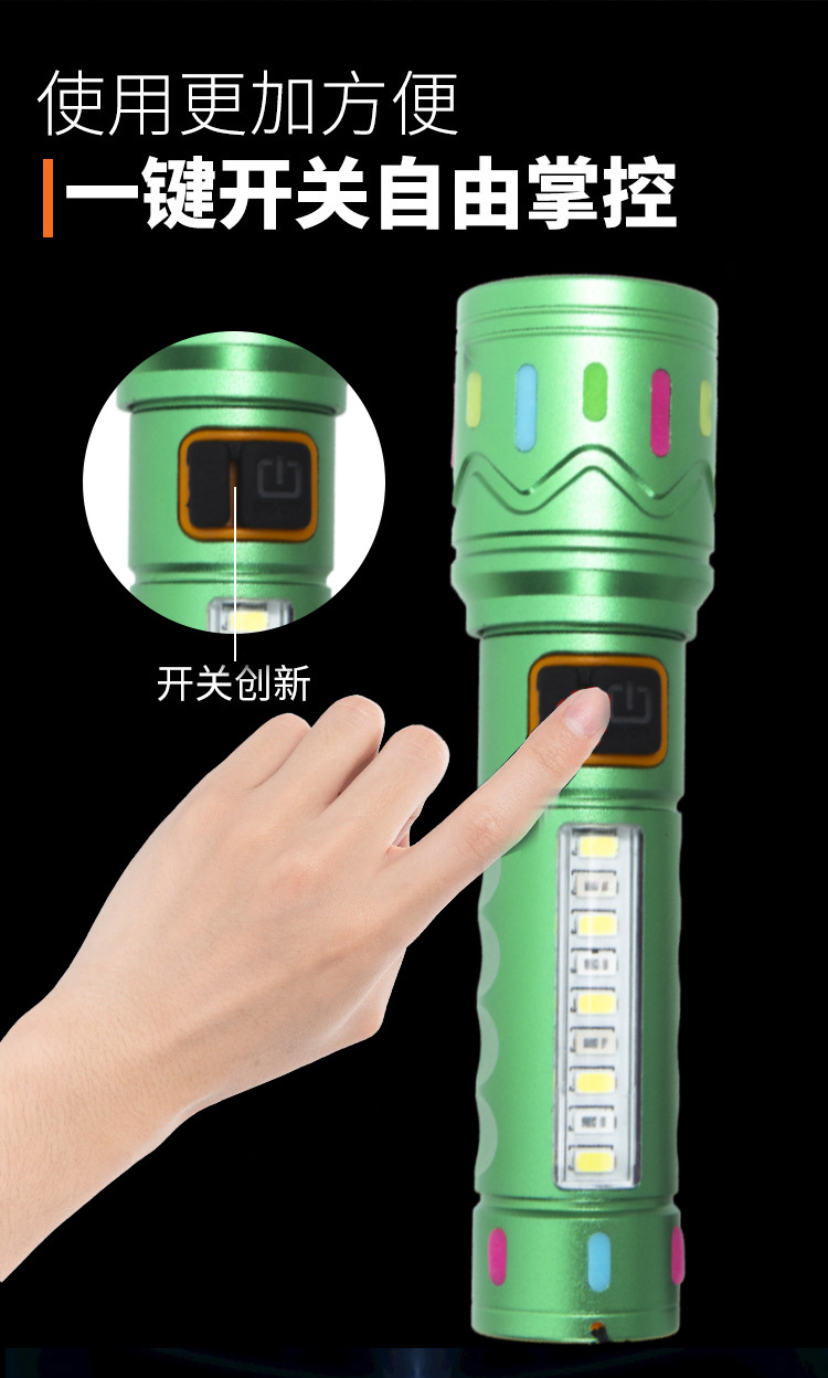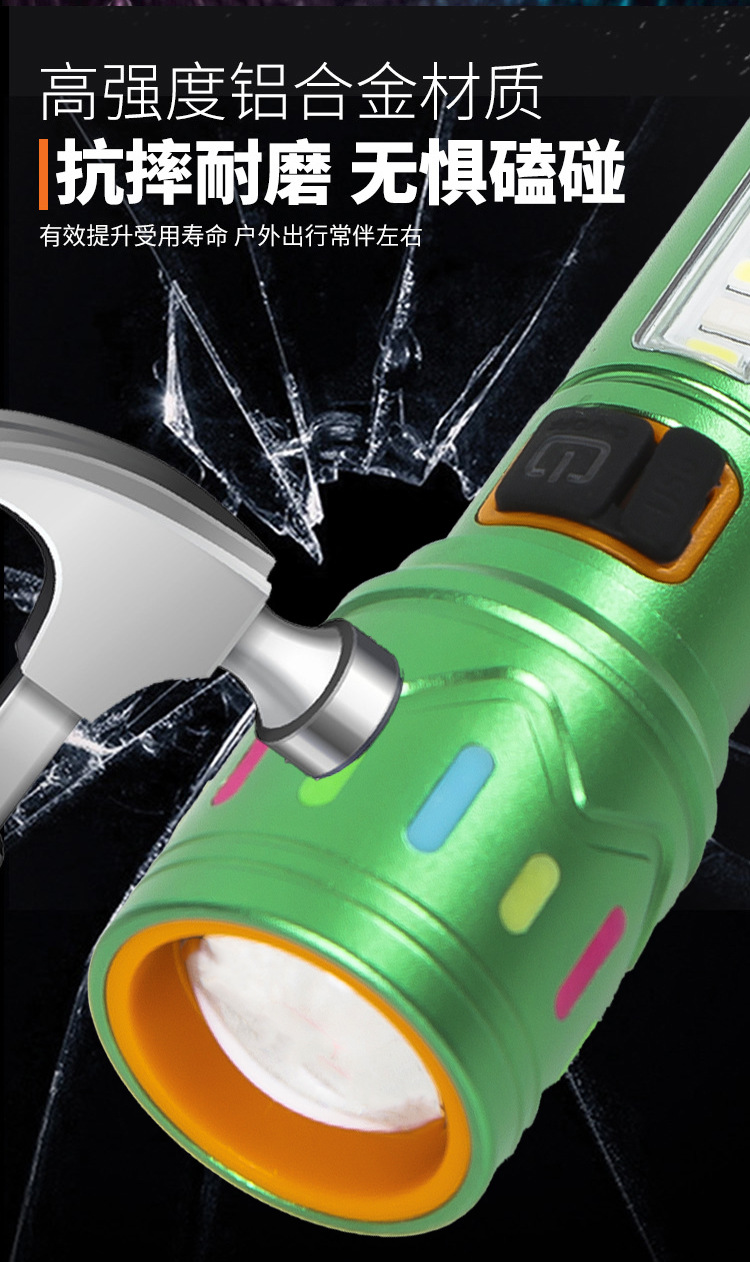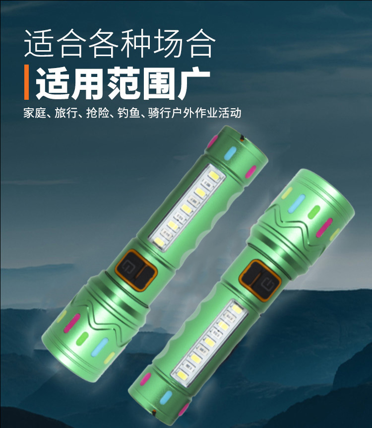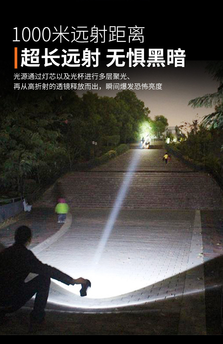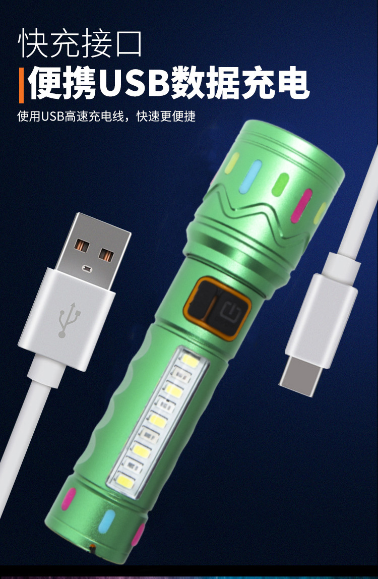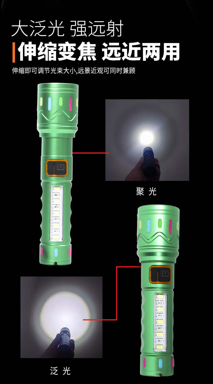 Linterna de luz fuerte transfronteriza, carga portátil multifuncional para exteriores, batería de larga duración, linterna con zoom súper brillante