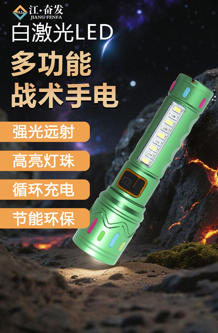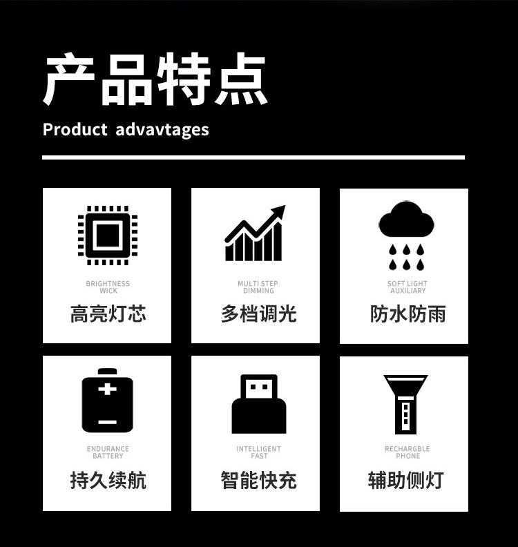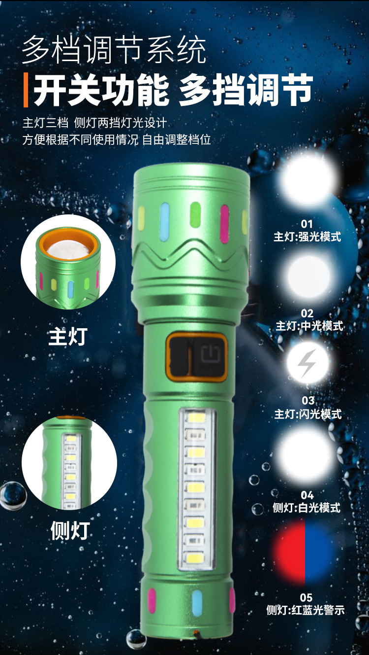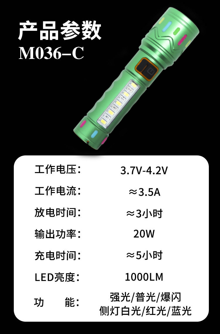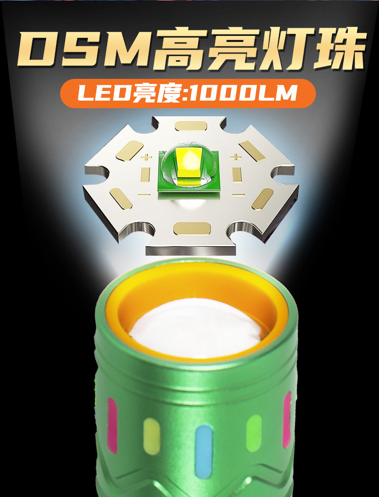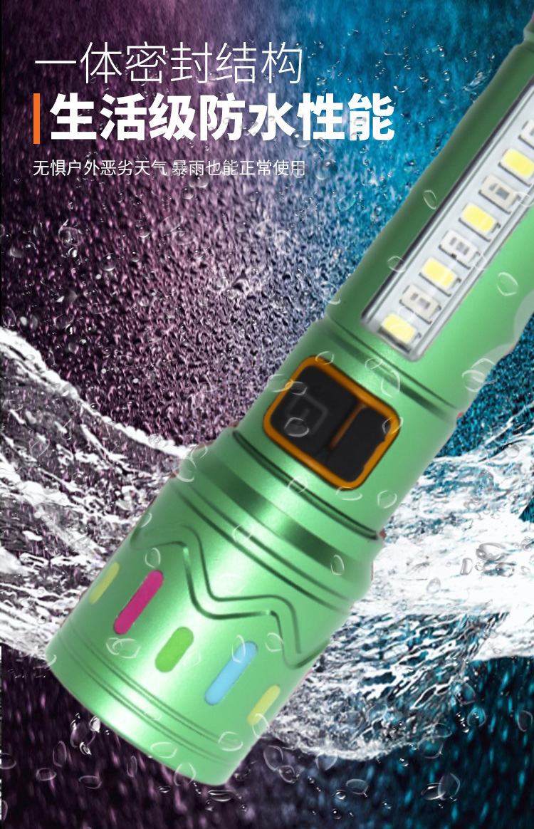 Linterna de luz fuerte transfronteriza, carga portátil multifuncional para exteriores, batería de larga duración, linterna con zoom súper brillante