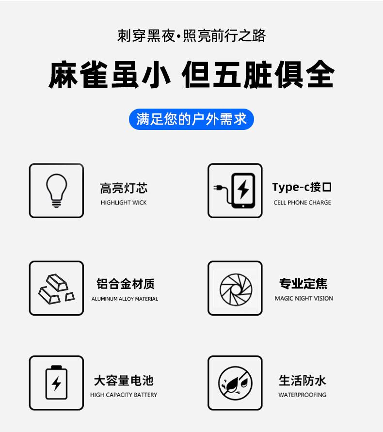 Mini linterna de luz super brillante tipo-c recargable con batería integrada con larga duración LED perlas para uso doméstico al aire libre