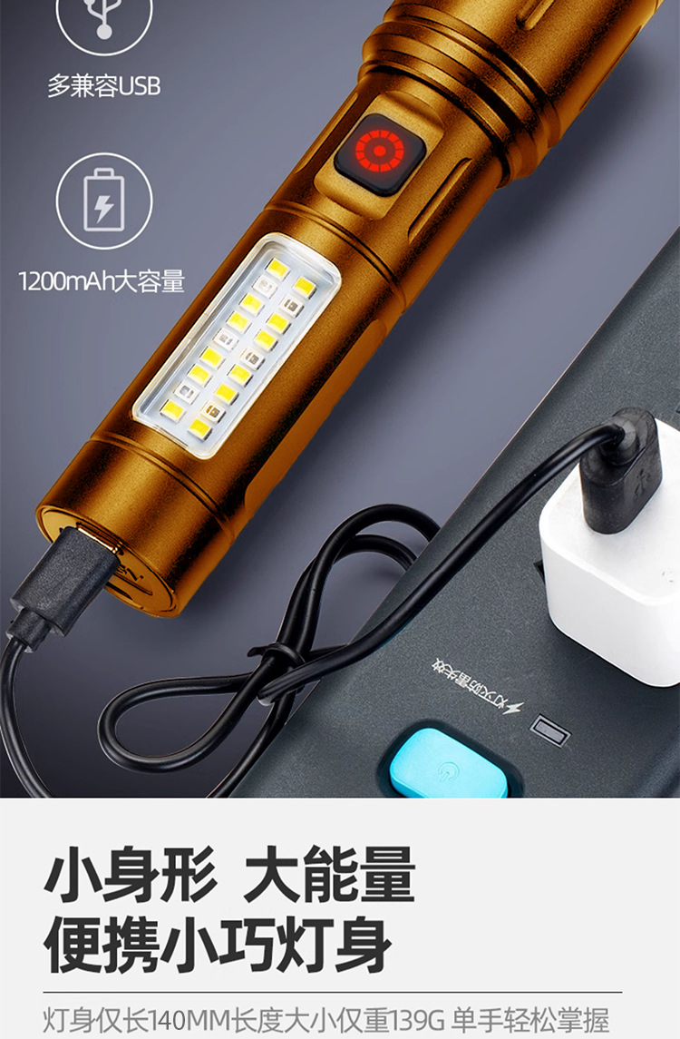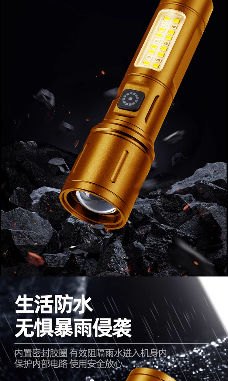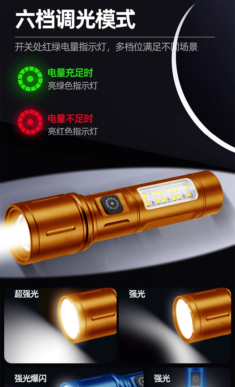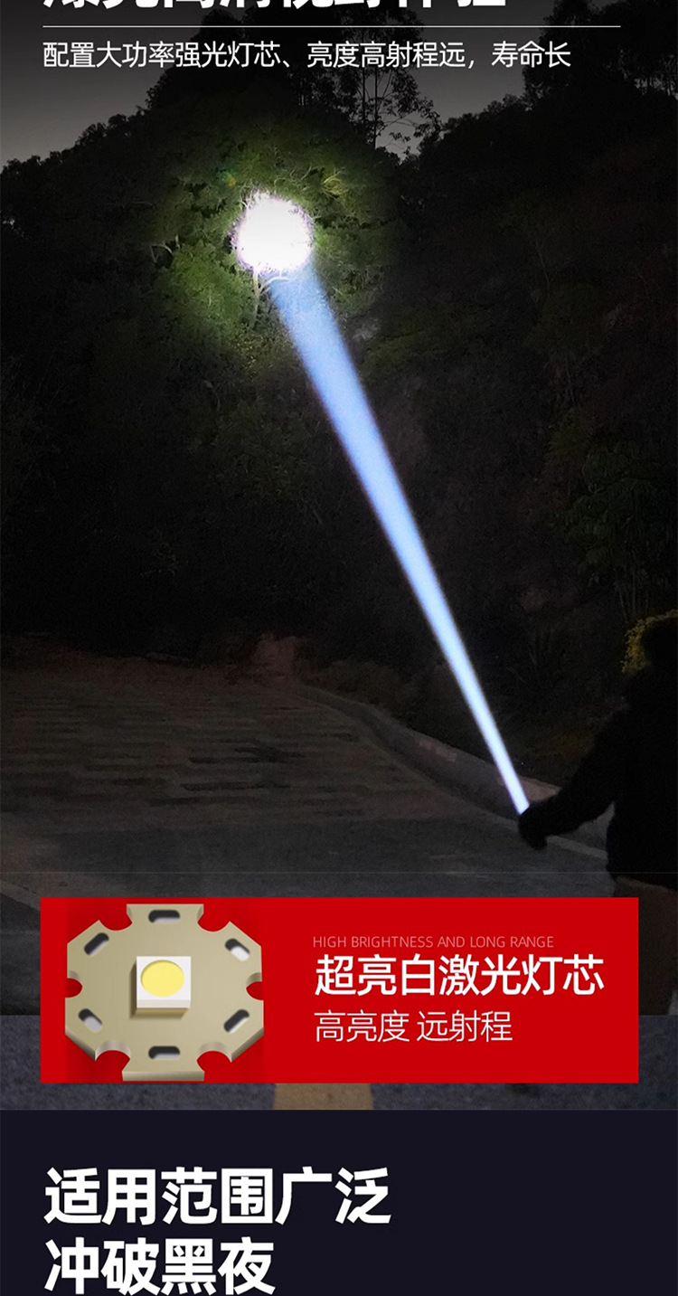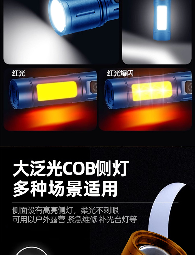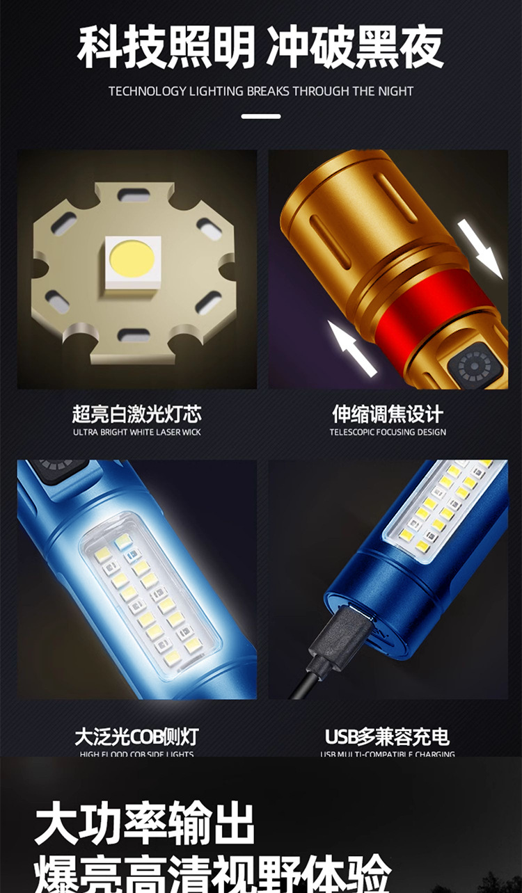 Nuevas luces laterales transfronterizas COB advertencia de luz dual patrulla exterior cueva telescópica enfoque de disparo remoto linterna láser blanca