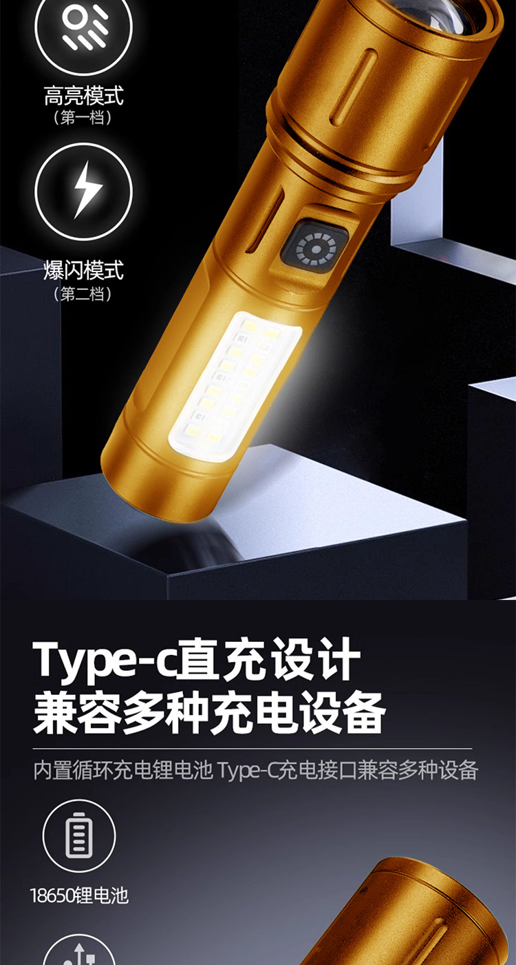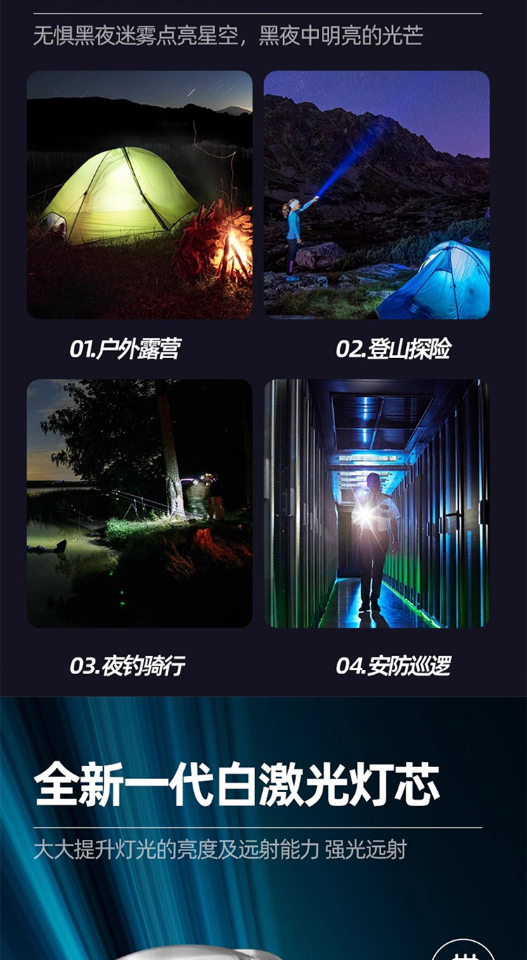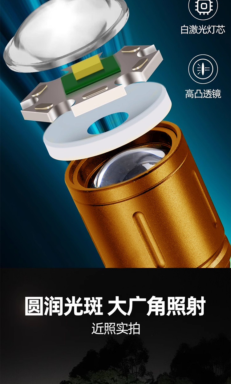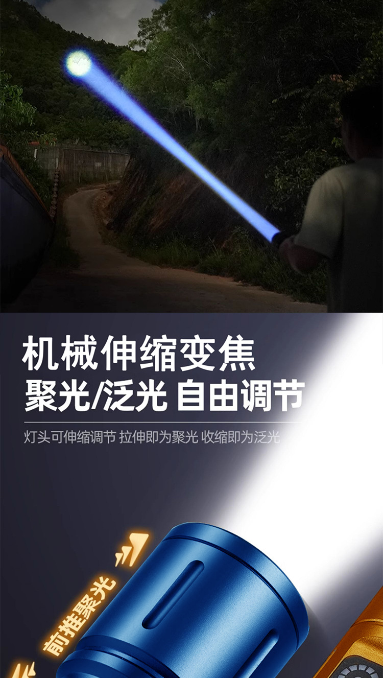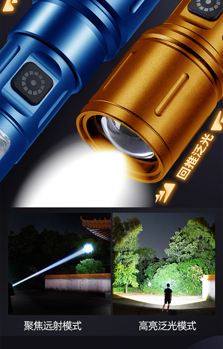 Nuevas luces laterales transfronterizas COB advertencia de luz dual patrulla exterior cueva telescópica enfoque de disparo remoto linterna láser blanca