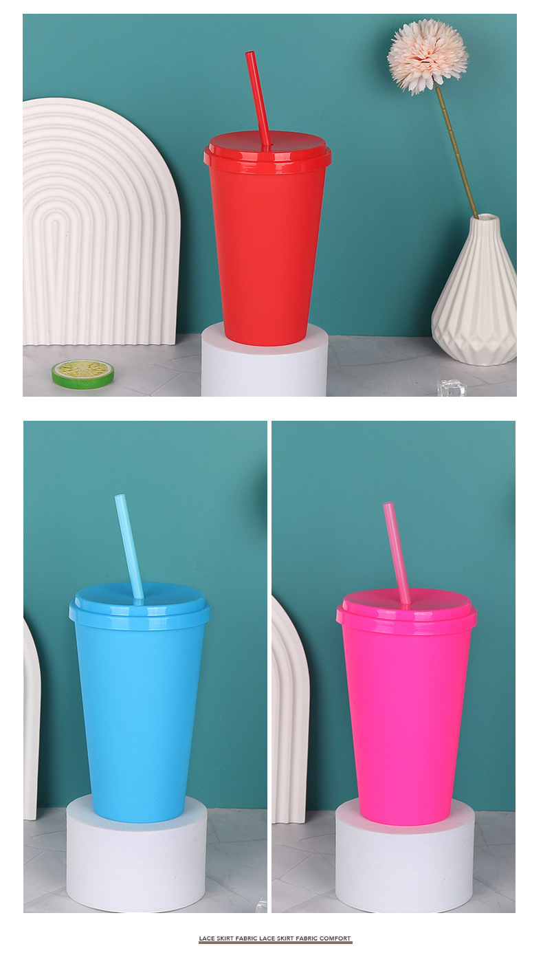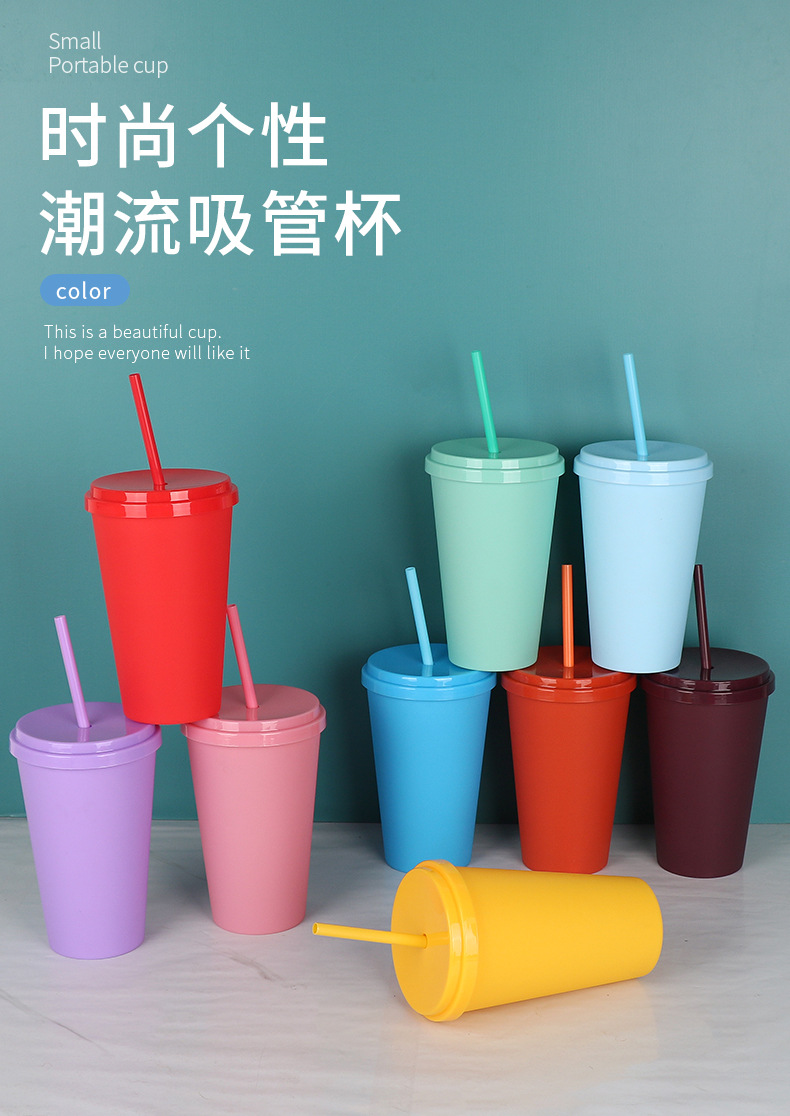 Caramelo transfronterizo red de color rojo ventas calientes sin borde taza de paja de plástico americano con tapa taza de paja taza de agua mayorista