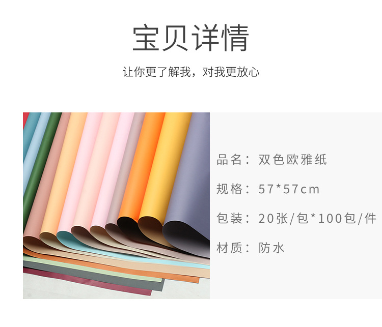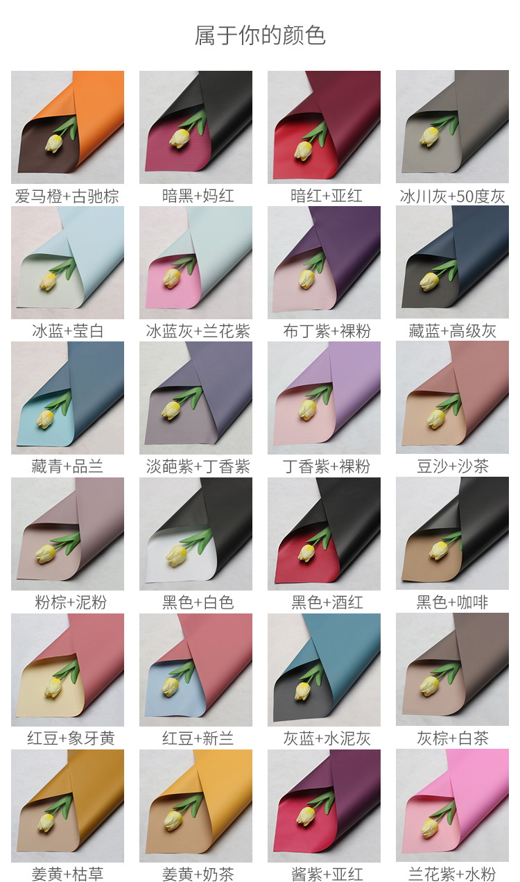 Venta directa de fábrica de papel de embalaje de flores impermeable bicolor Ouya papel ramo floristería floristería material de embalaje floral al por mayor