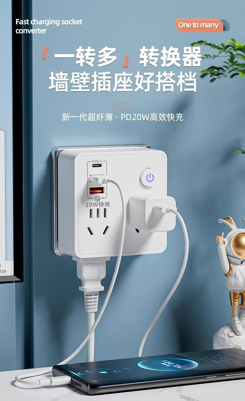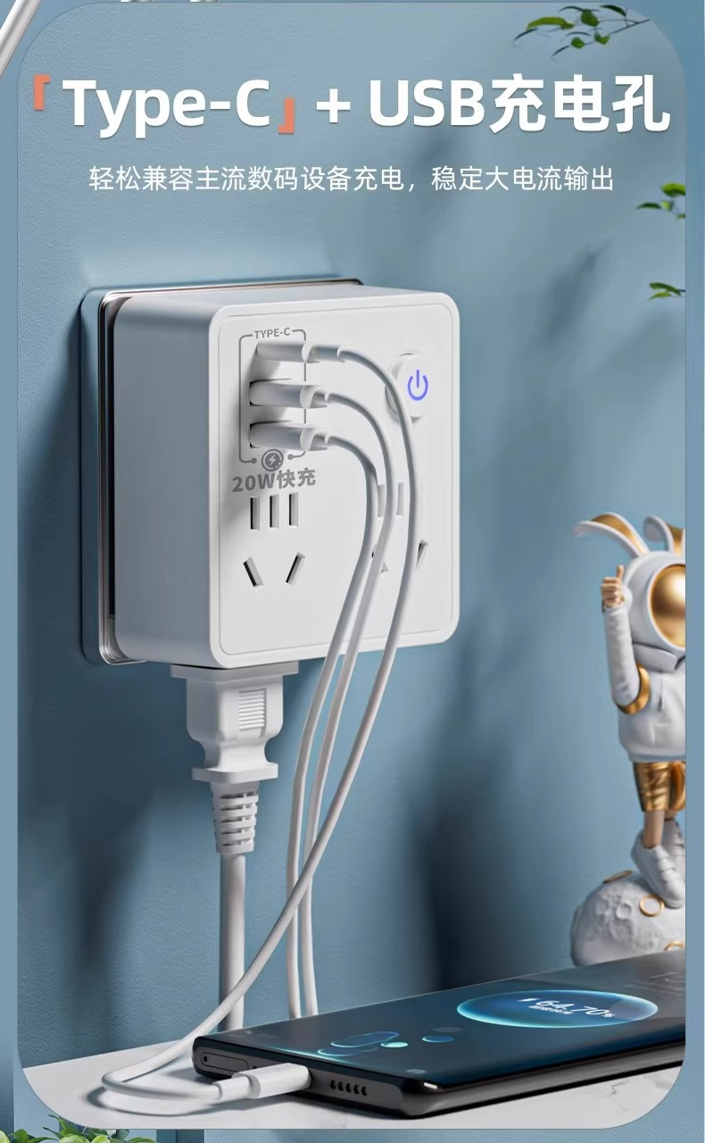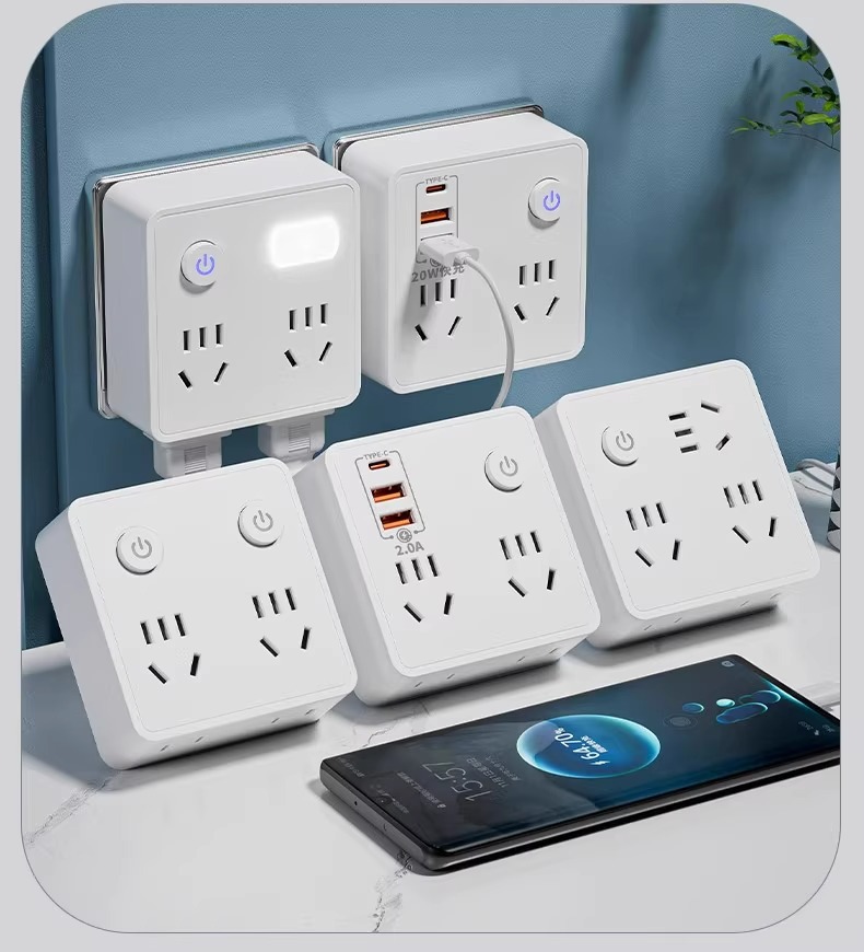 Convertidor tipo 86 toma multifunción para el hogar con luz nocturna carga usb toma de pared de una vuelta con múltiples enchufes cabezal de conversión