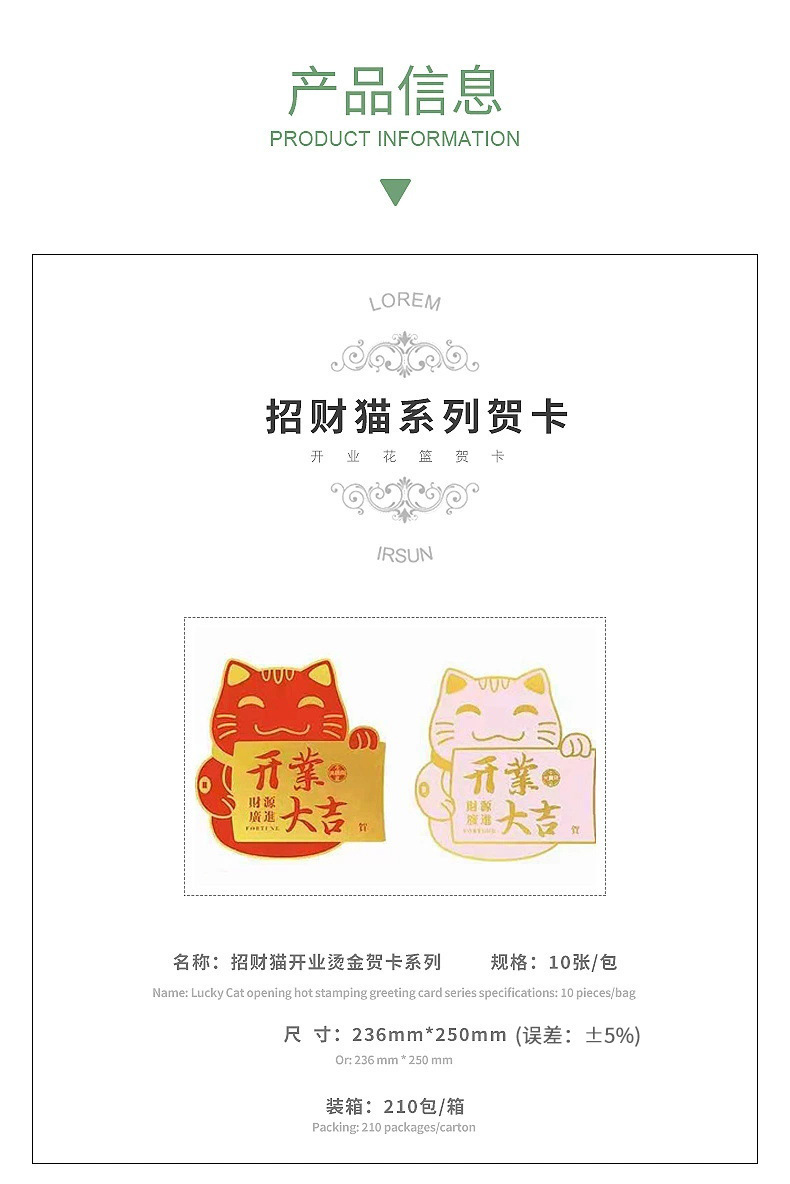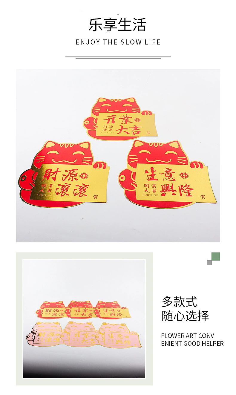 Nuevo gato de reclutamiento de dinero abierto tarjeta de estampado de oro Daji flores flores