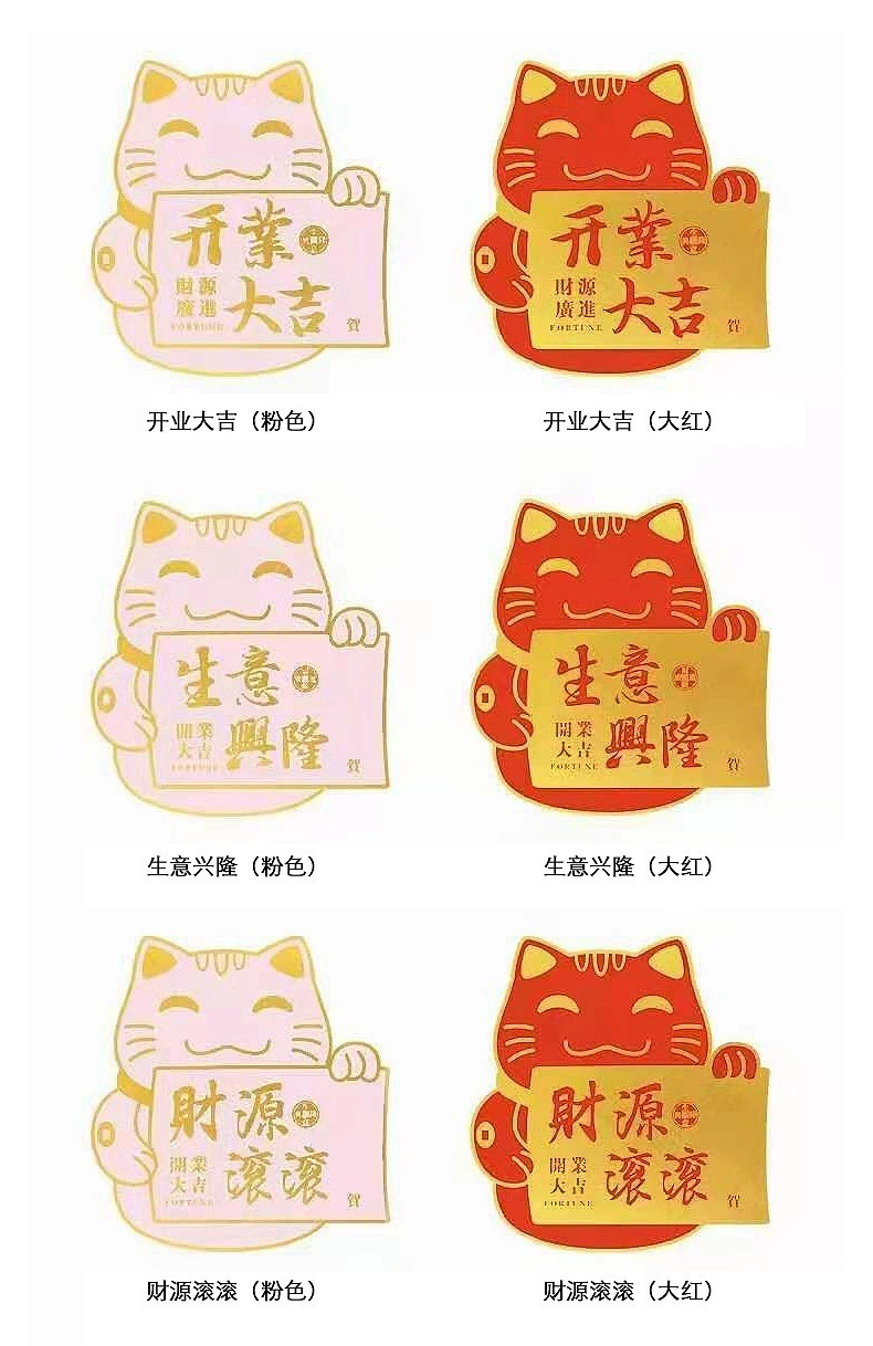 | Tamaño | Kai-kai Daji (rosa), Kai-kai Daji (grande rojo), Business Prosperity (rosa), Business Prosperity (grande rojo), Caiyuan Rolling (rosa), Caiyuan Rolling (grande rojo) |