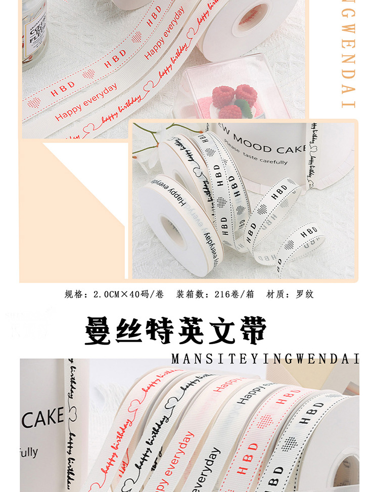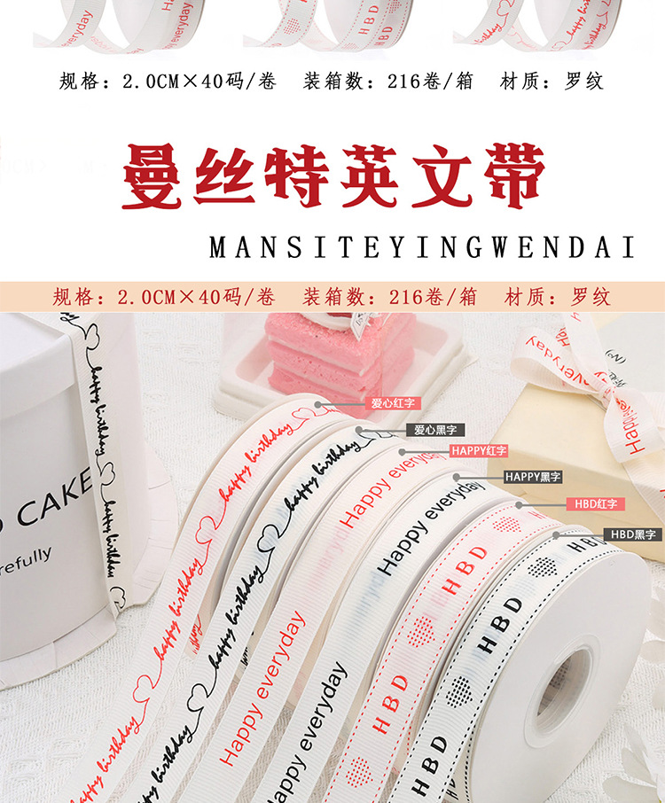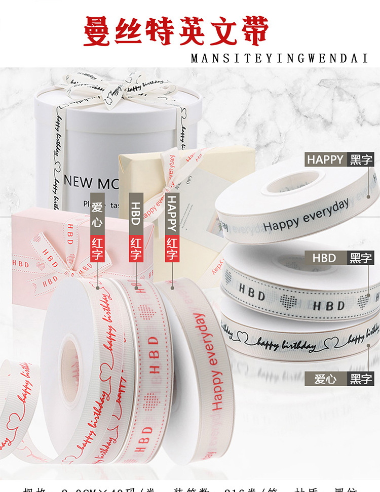 | Especificaciones y modelos | [Happy] caracter rojo * 2cm * 40 yardas, [Happy] caracter negro * 2cm * 40 yardas, [HBD] caracter rojo * 2cm * 40 yardas, [HBD] caracter negro * 2cm * 40 yardas, [Amor] caracter rojo * 2cm * 40 yardas, [Amor] caracter negro * 2cm * 40 yardas |
