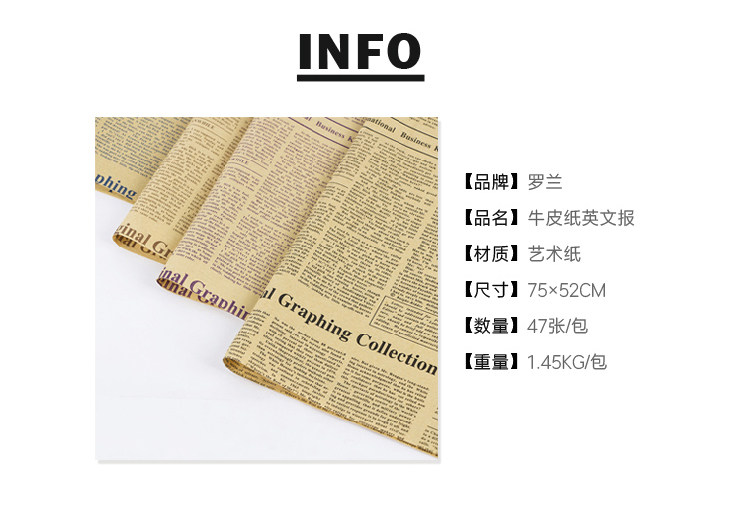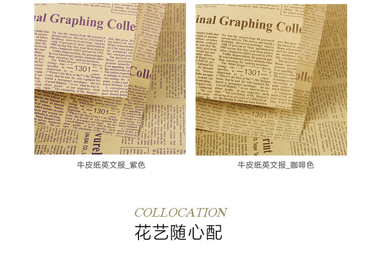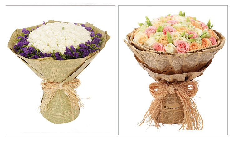 Papel de embalaje de periódico inglés material de embalaje de flores Xinshang amor flor material papel al por mayor floristería suministros ramo de papel