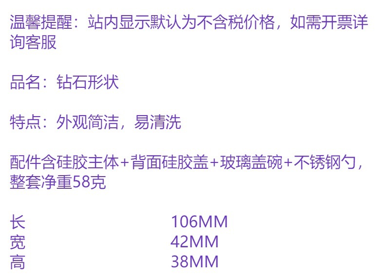 Amazon explosión de material de silicona en forma de diamante que contiene tazón de vidrio fácil de limpiar y fábrica de fuente de cuchara de acero inoxidable