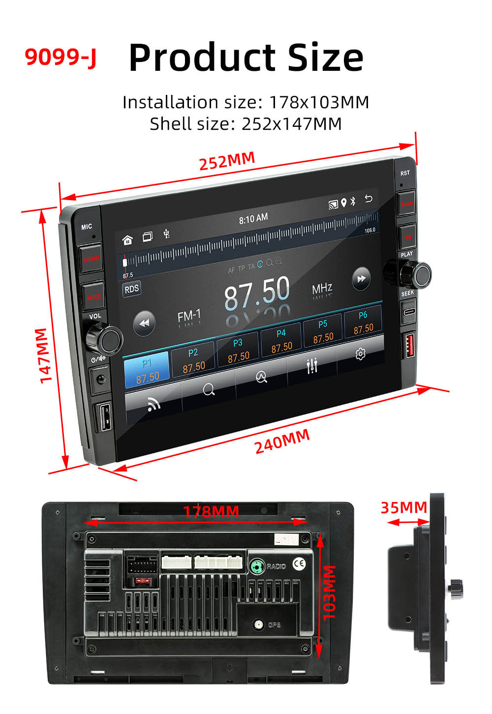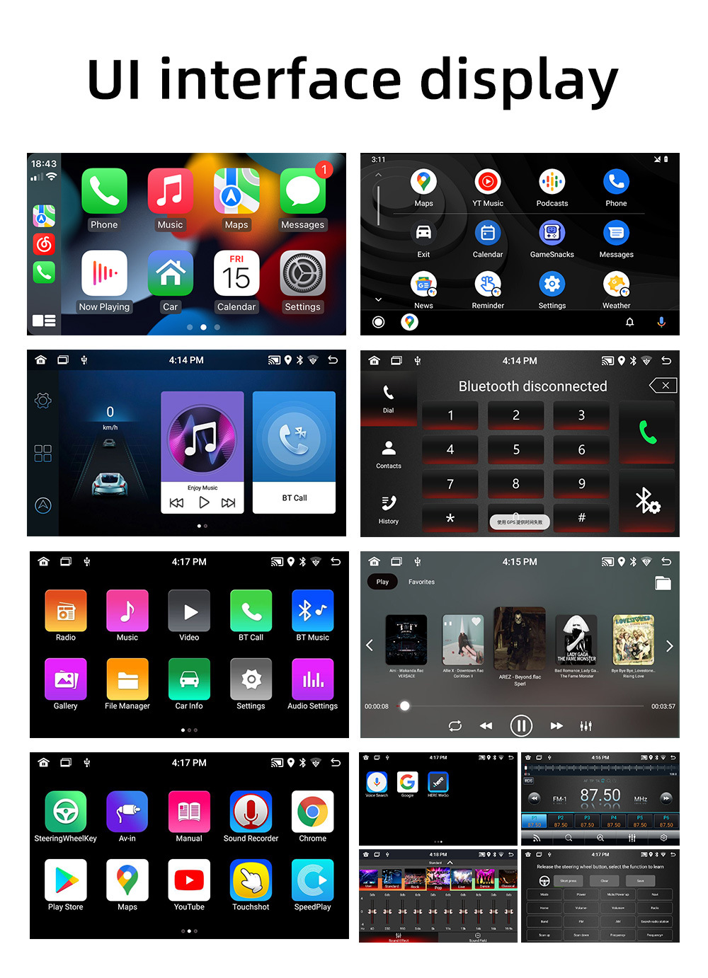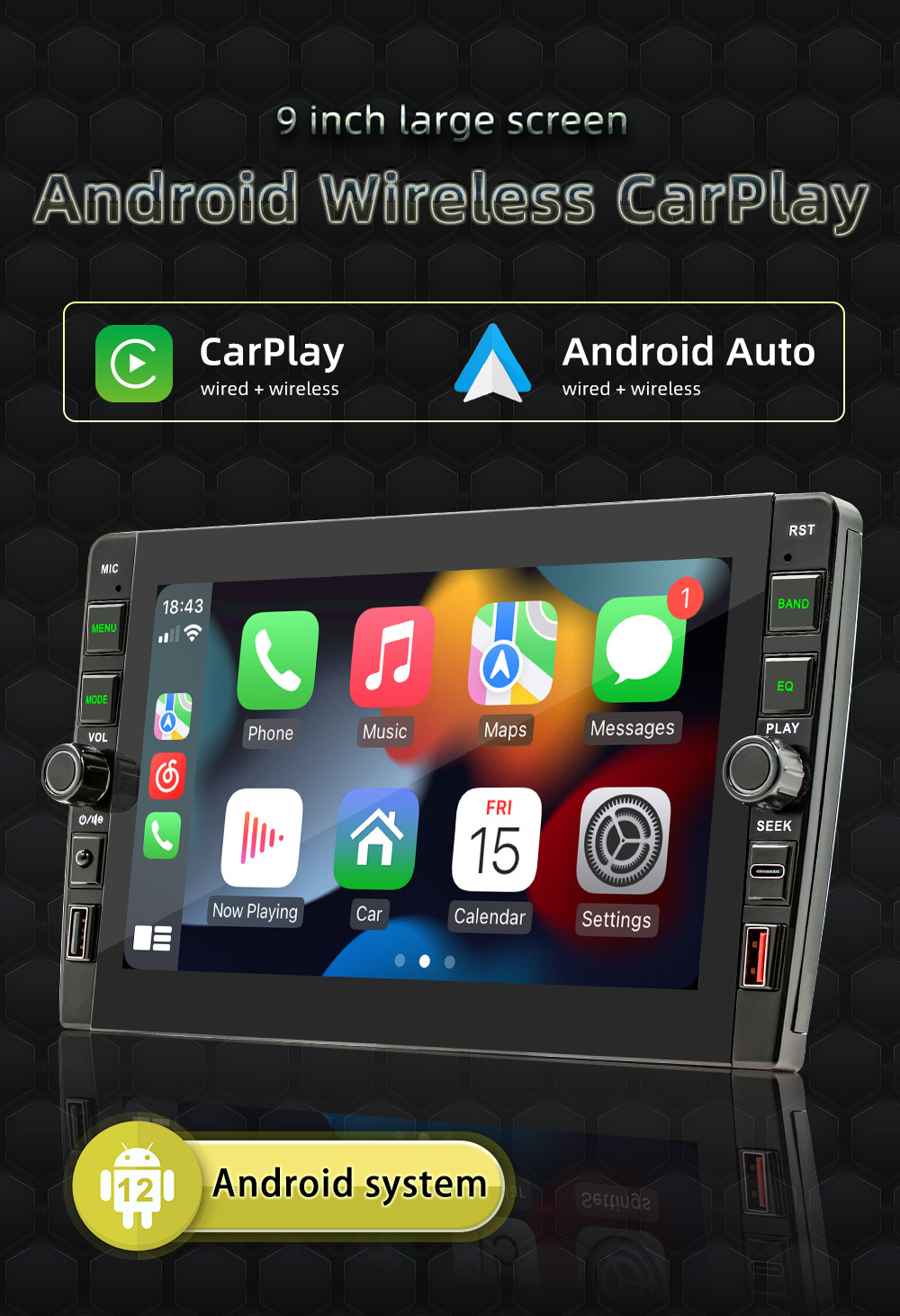 Carplay inalámbrico de 9 pulgadas HD pantalla grande imagen de marcha atrás coche Android navegación GPS reproductor Bluetooth